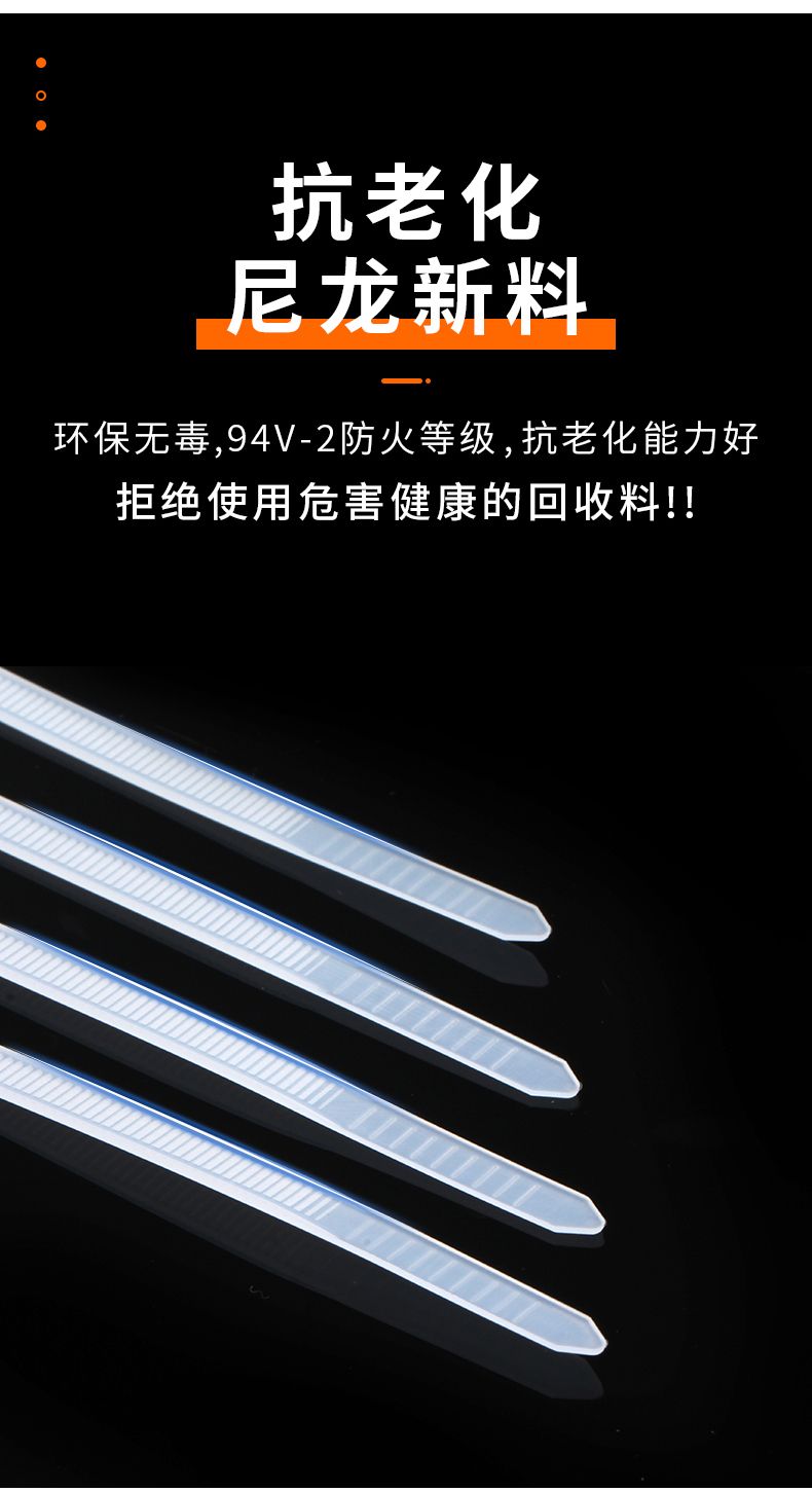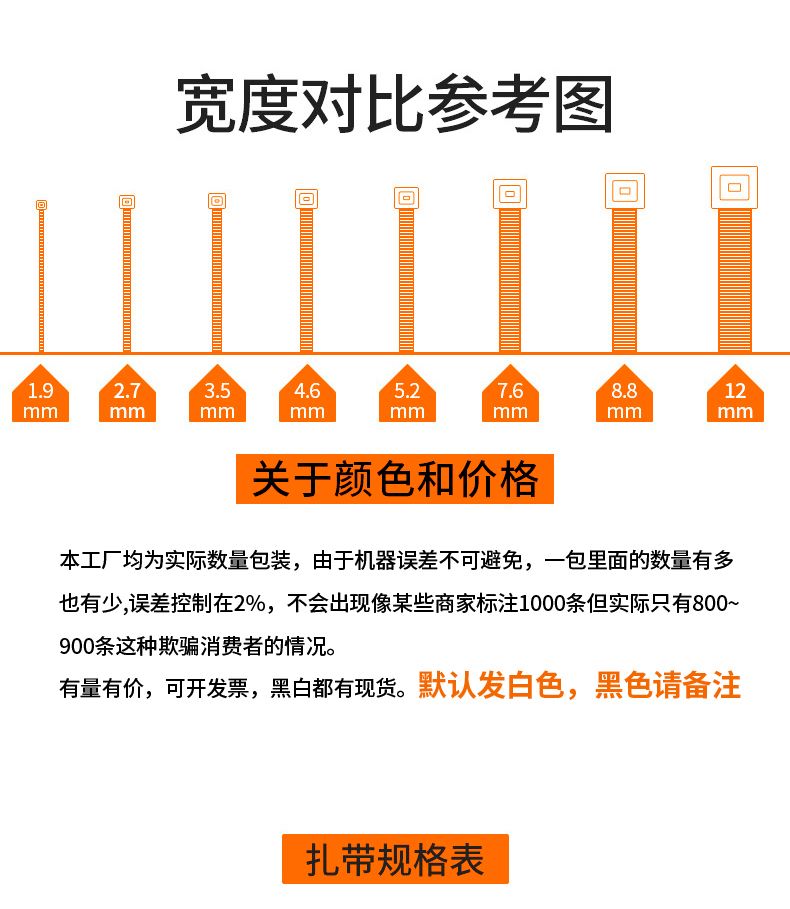 尼龙扎带自锁式扎带卡扣 一拉得塑料捆扎带大小号绑带黑白扎带条
