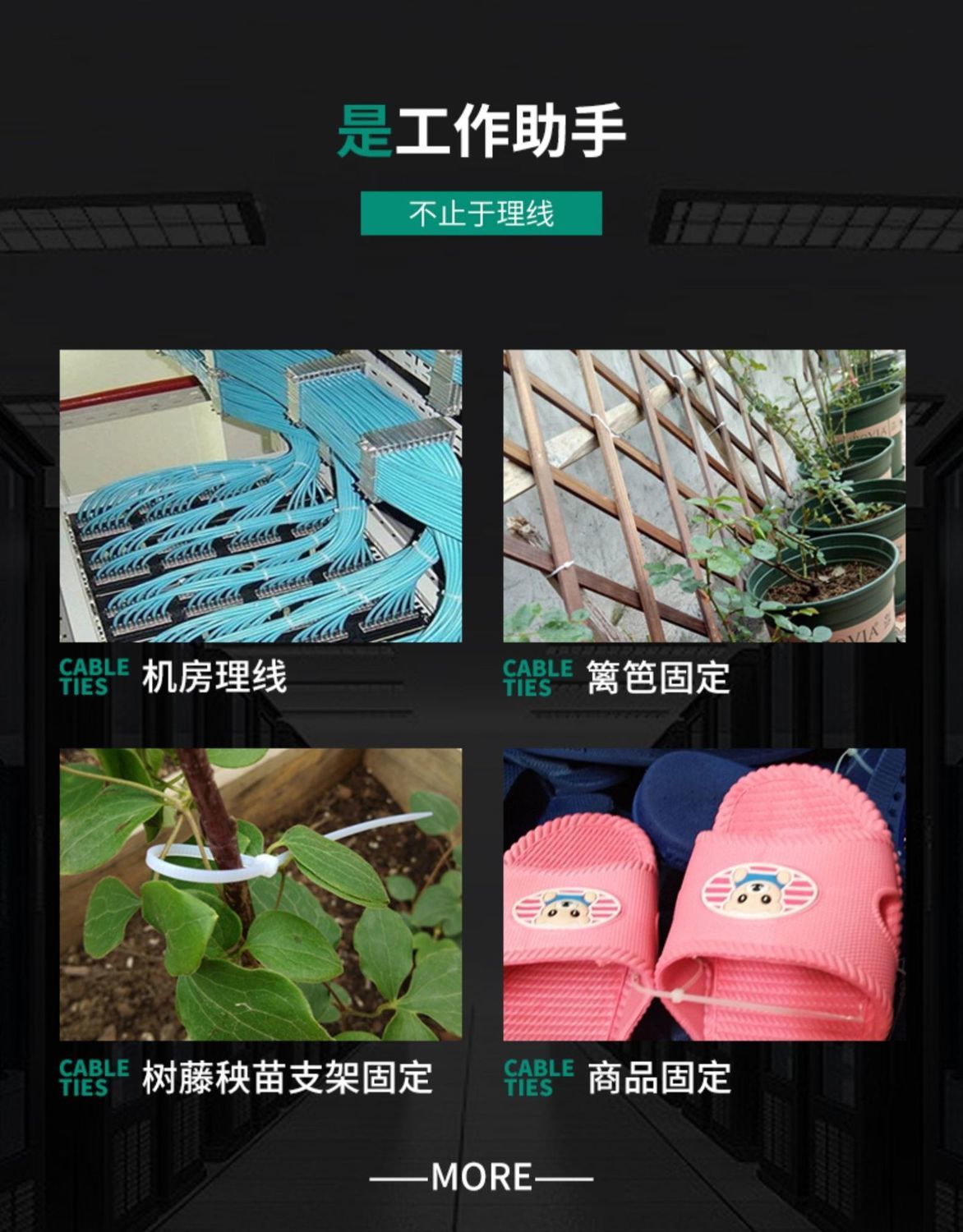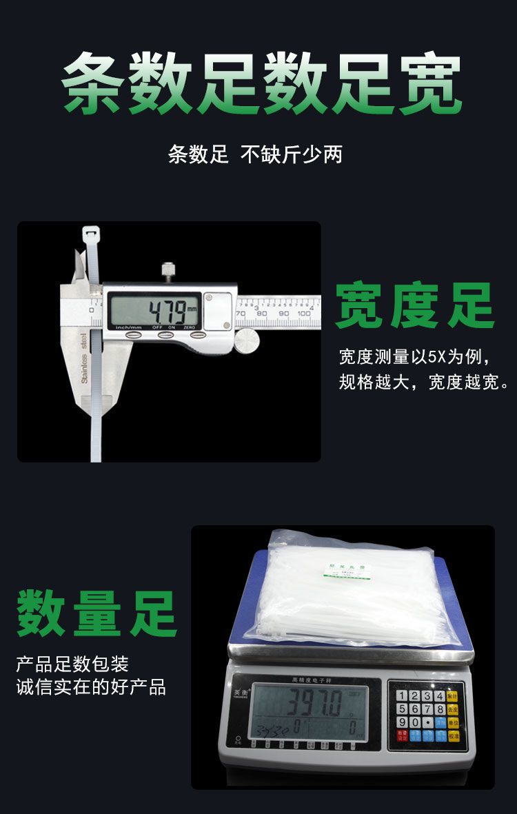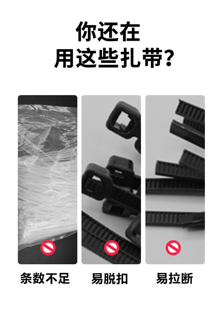 尼龙扎带自锁式固定器塑料卡扣黑白色足量扎线带捆扎带轧绑束线带