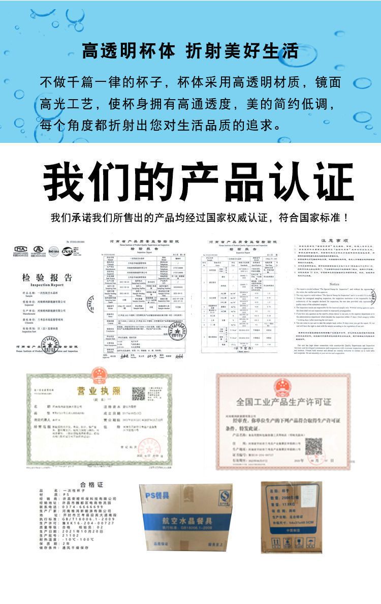 一次性杯子航空杯硬塑茶杯饮杯家用加厚定制批发硬质塑料透明水杯