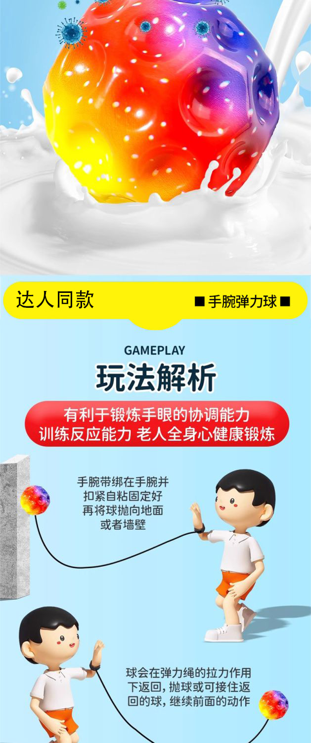 【提升专注力】手腕月球石弹力球解压回弹带绳儿童高弹力甩甩球