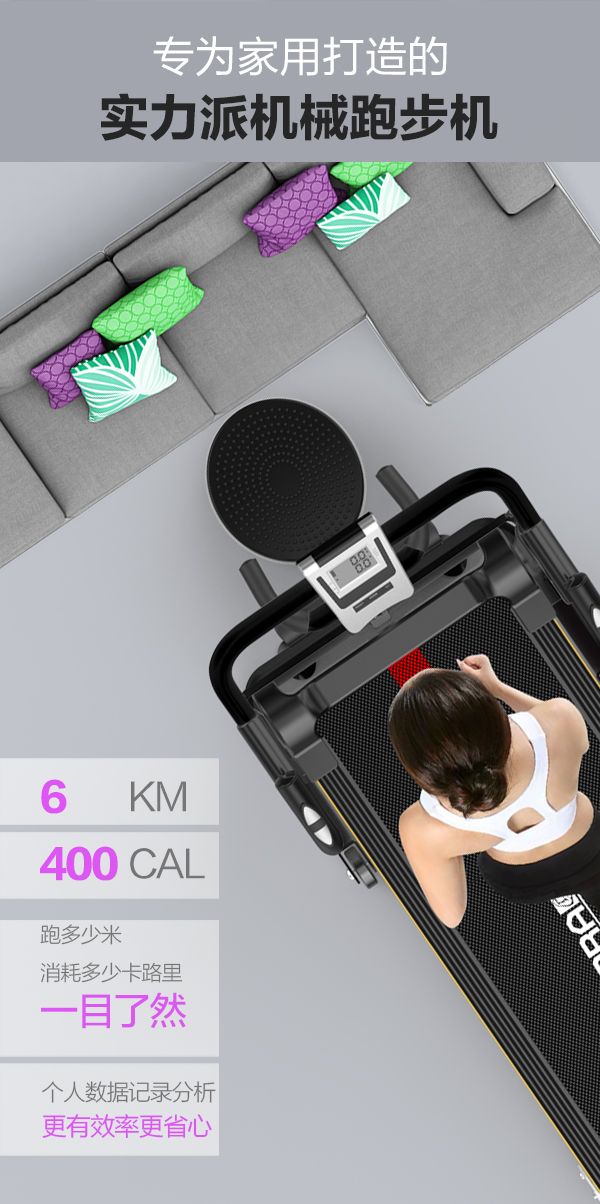 【看直播/聊天/3D场景】跑步机家用机械走步机超静音折叠减震小型