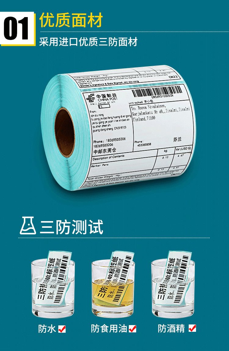 三防热敏标签纸100x80x60x40x30物流奶茶标签贴超市电子秤打印纸
