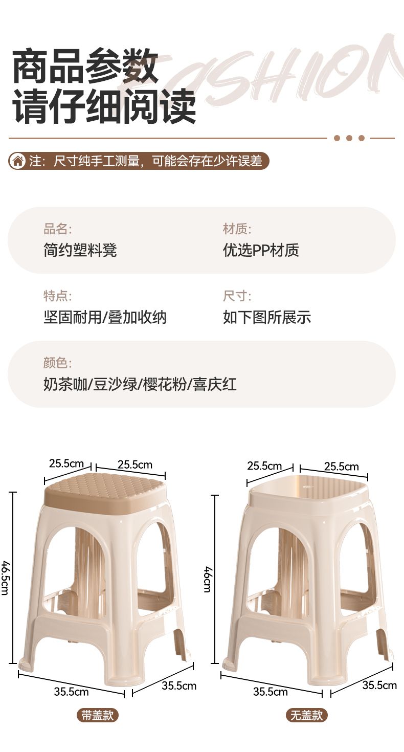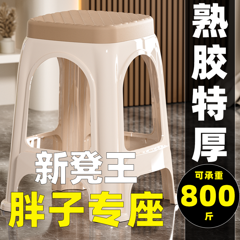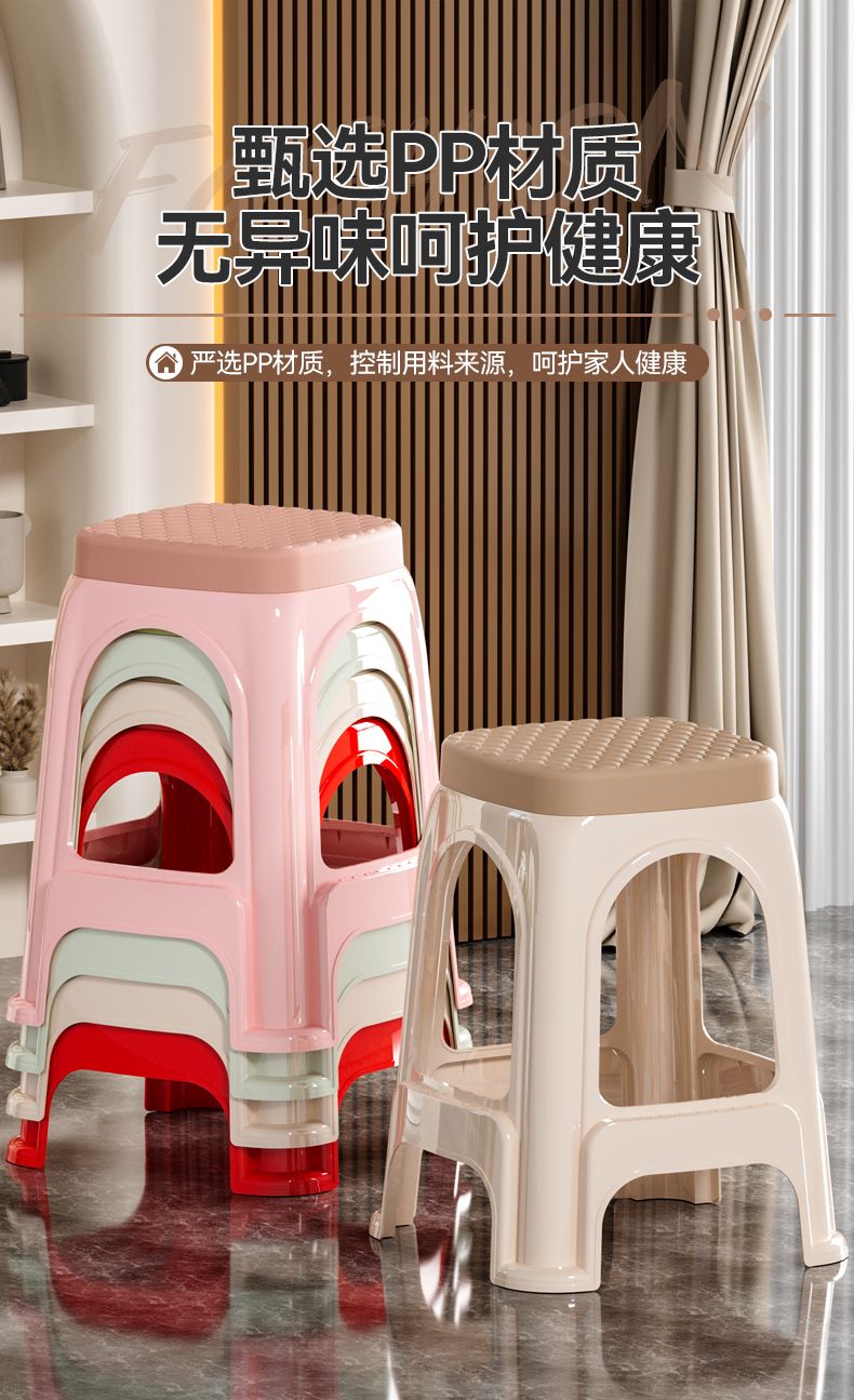 加厚塑料凳子家用成人客厅餐桌茶几椅子高凳防滑熟胶板凳特厚方凳