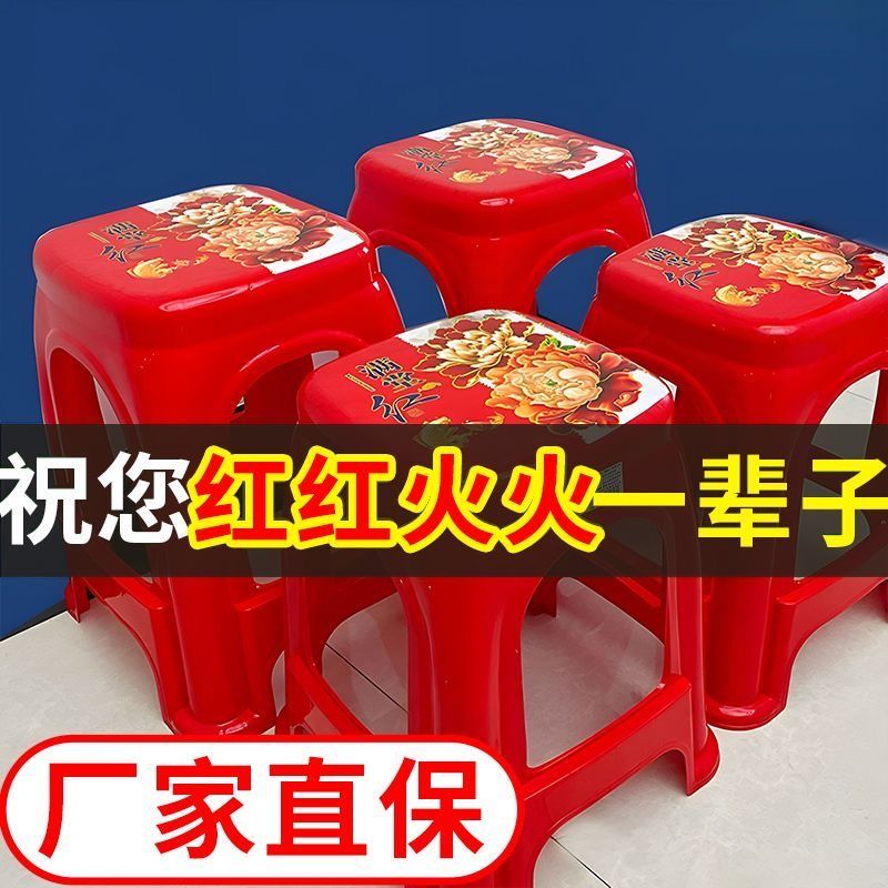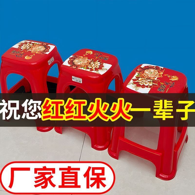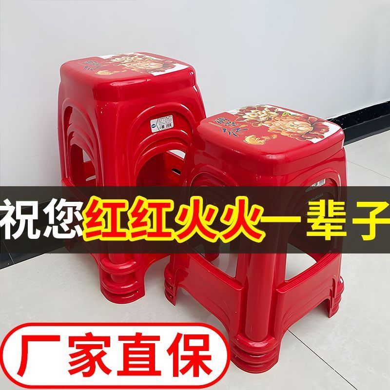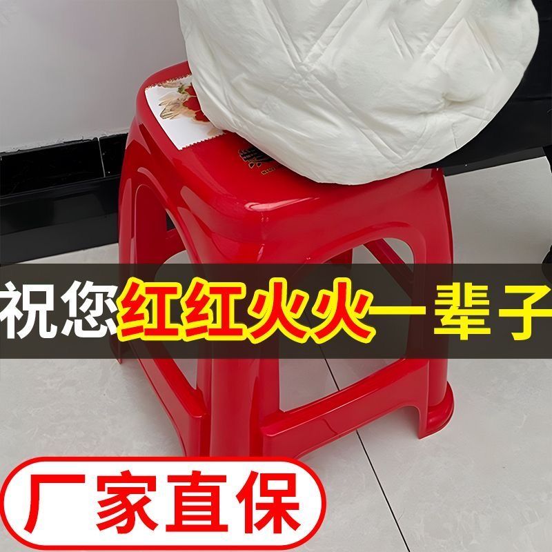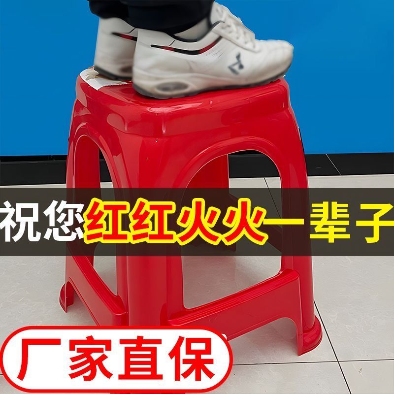 【拍10送2】塑料红色方凳子家用耐用结实加厚特厚出租屋客厅宿舍