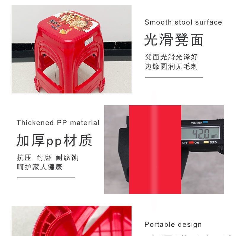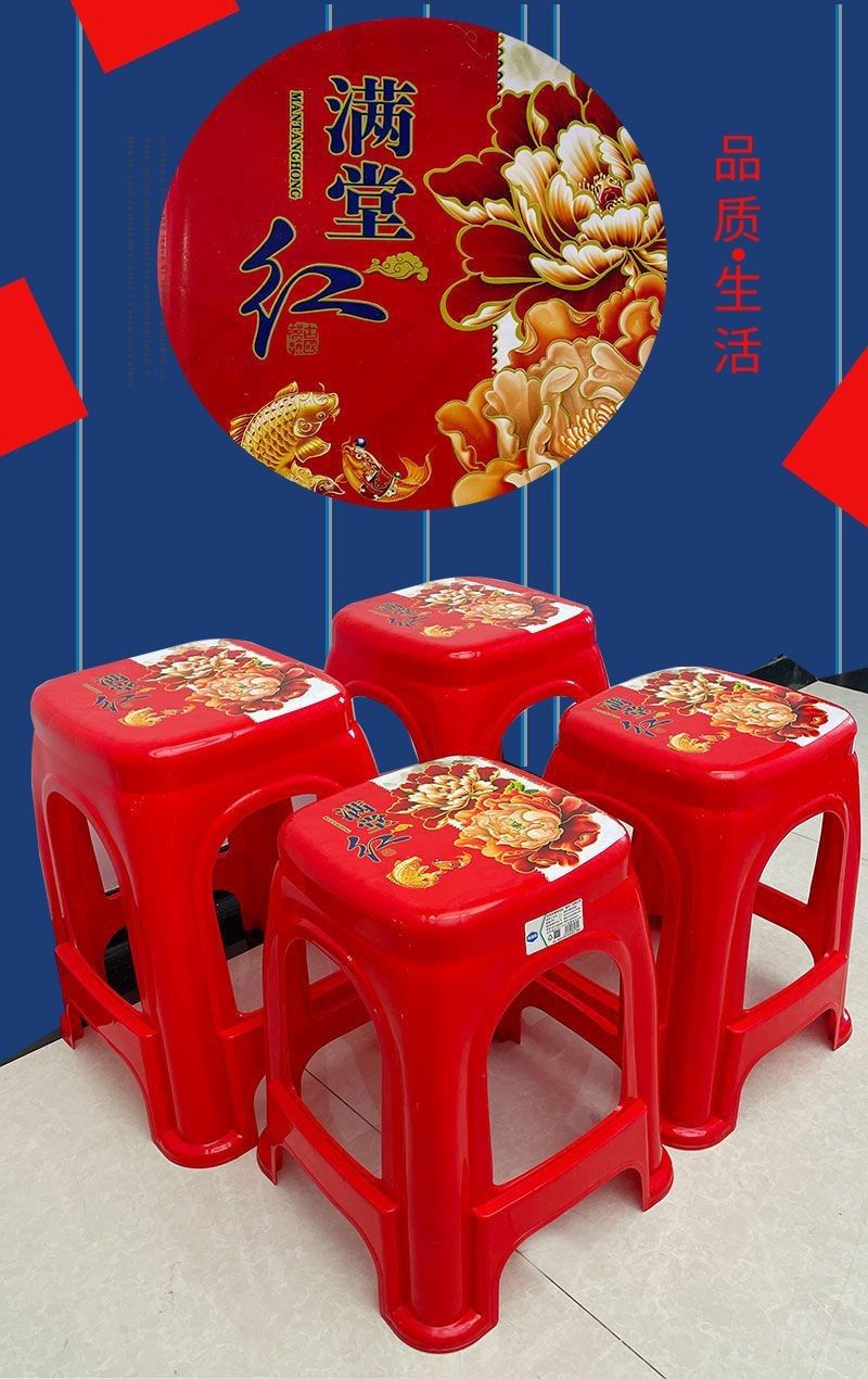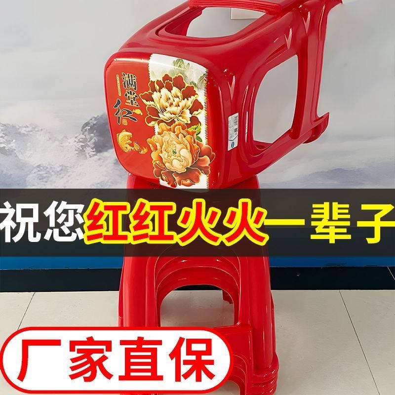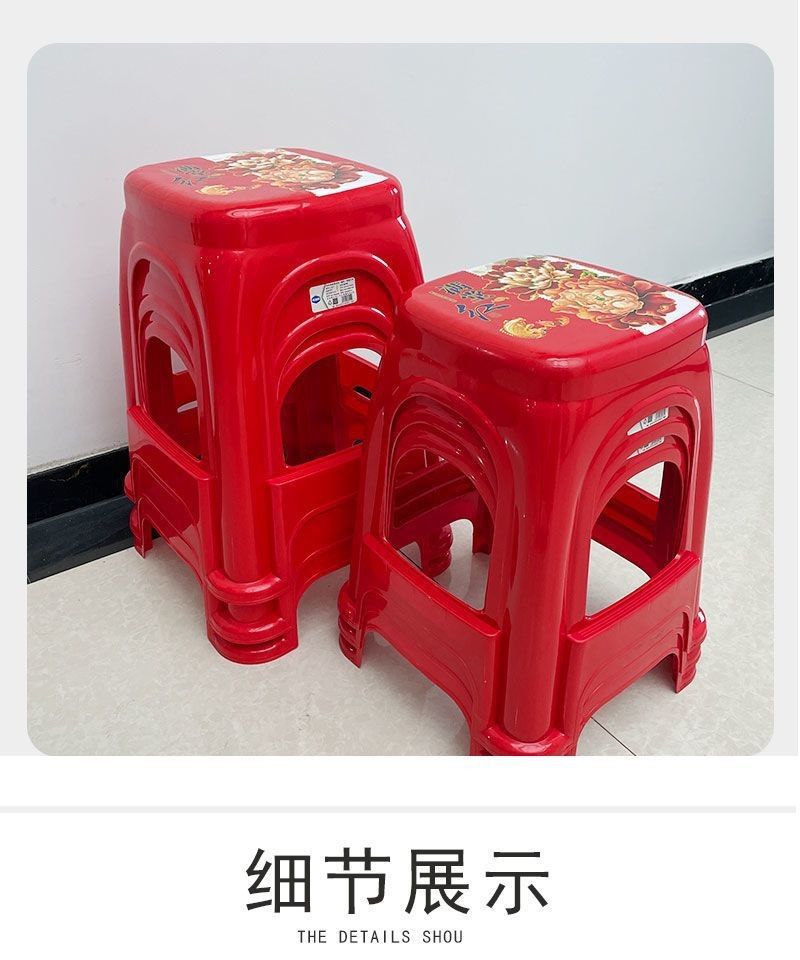 【拍10送2】塑料红色方凳子家用耐用结实加厚特厚出租屋客厅宿舍