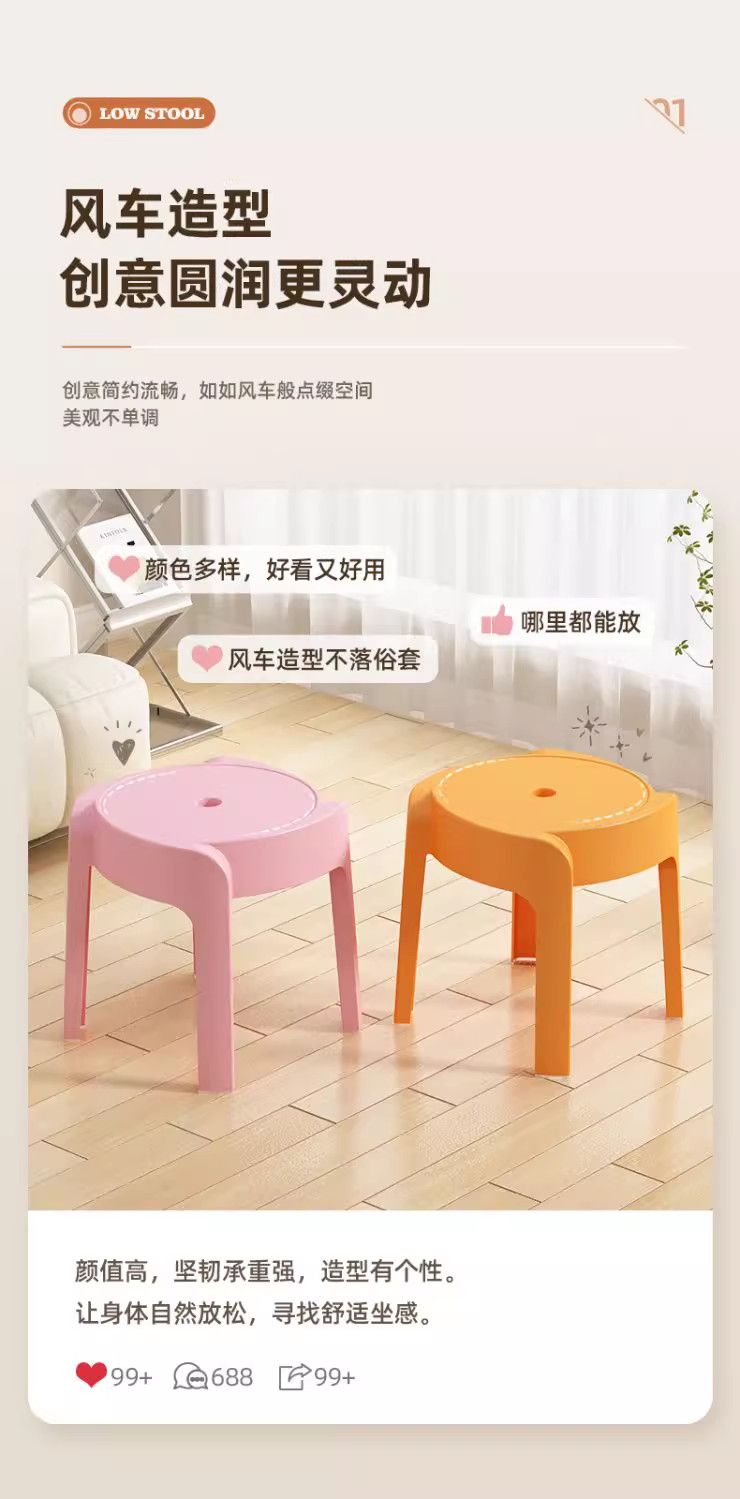 成人塑料小凳子加厚风车圆凳家用北欧风旋风矮凳客厅茶几防滑凳