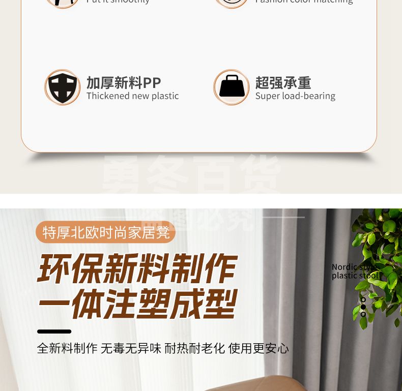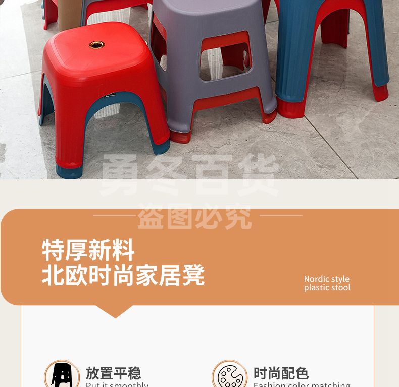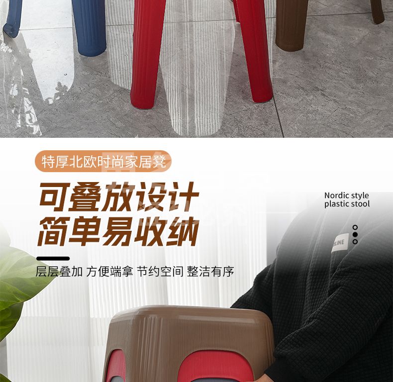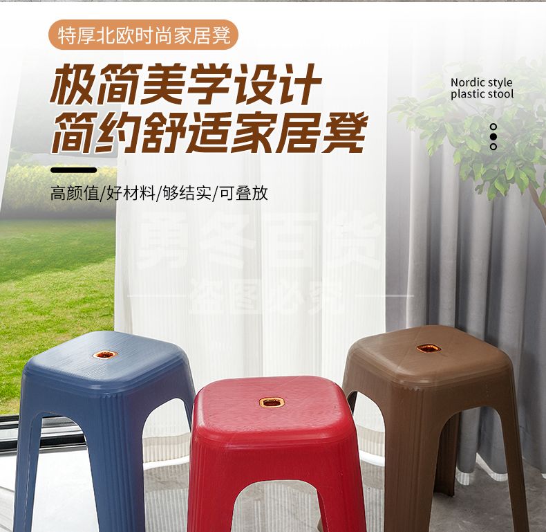 塑料凳子升级款防滑简约备用凳北欧风网红登客厅餐厅椅超厚