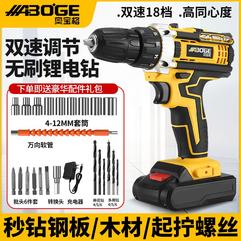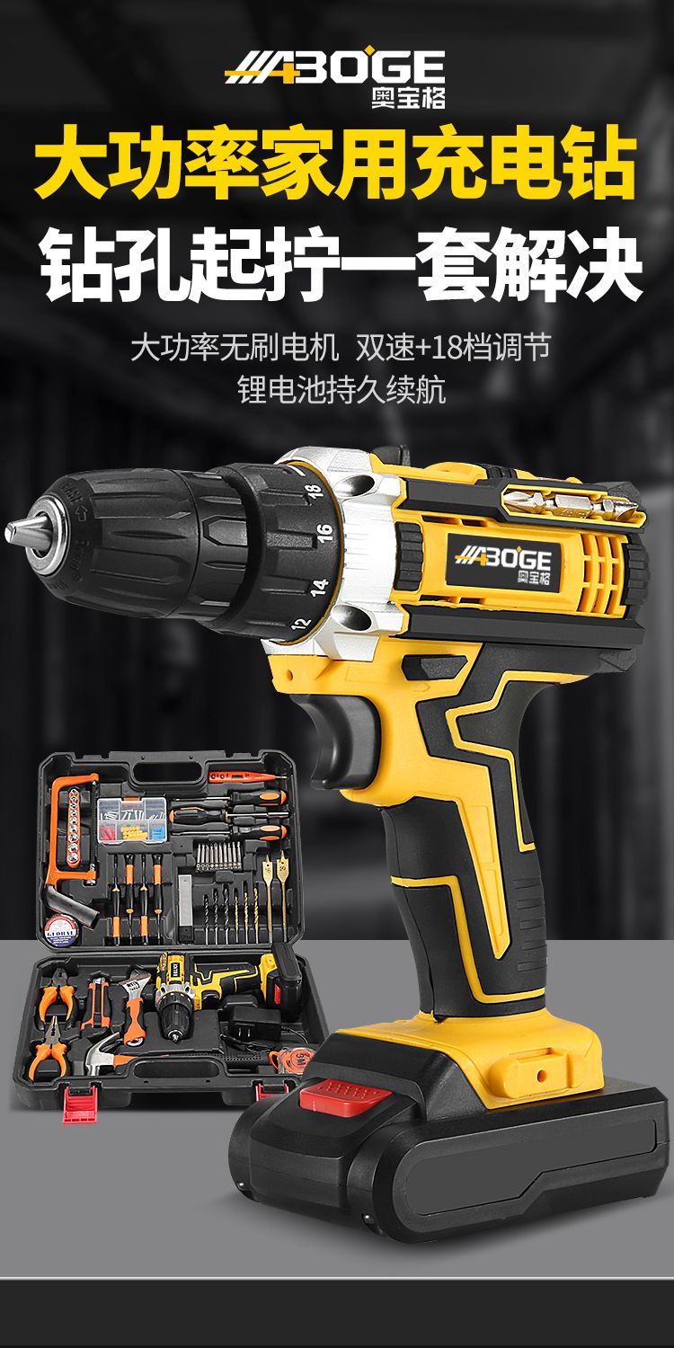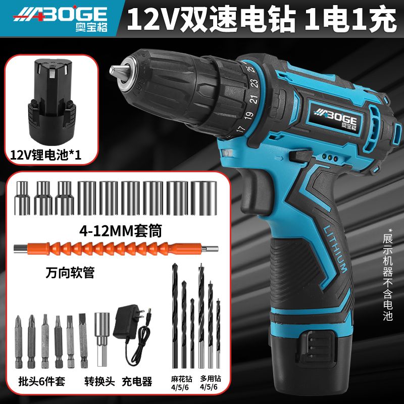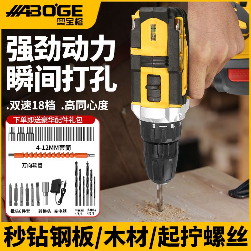 进口奥宝格手电钻锂电钻多功能电动螺丝刀家用冲击钻手枪钻