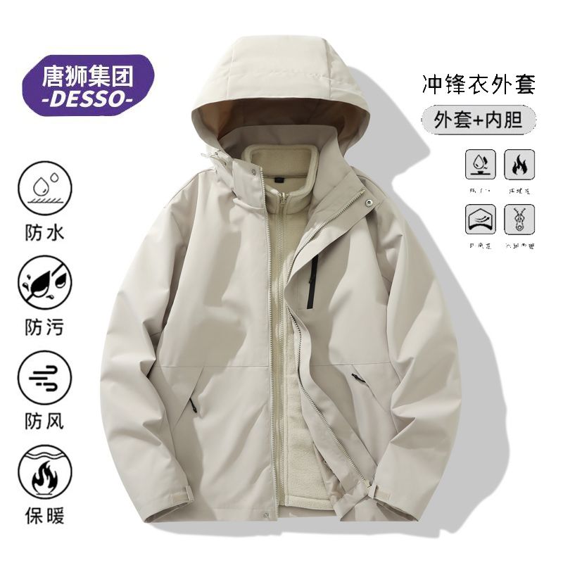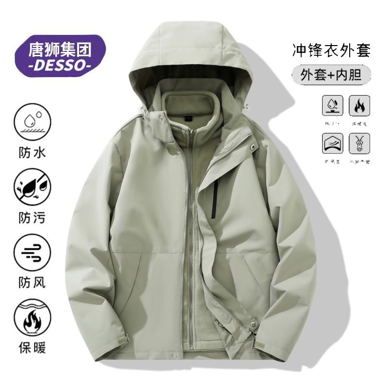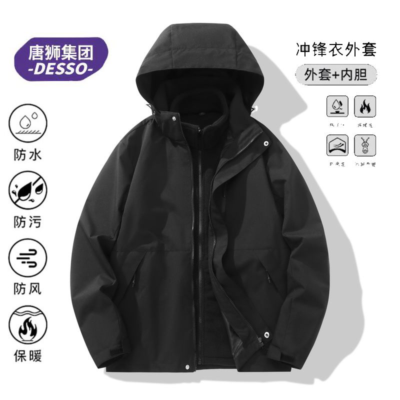 唐狮集团DESSO春秋季三合一可拆卸户外防风防水外套冲锋衣夹克男