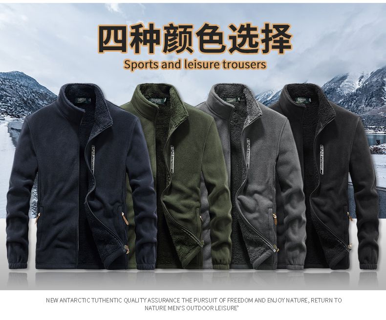新款抓绒特厚摇粒绒外套男士立领休闲夹克冬天衣服上衣拉链卫衣