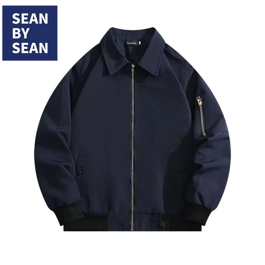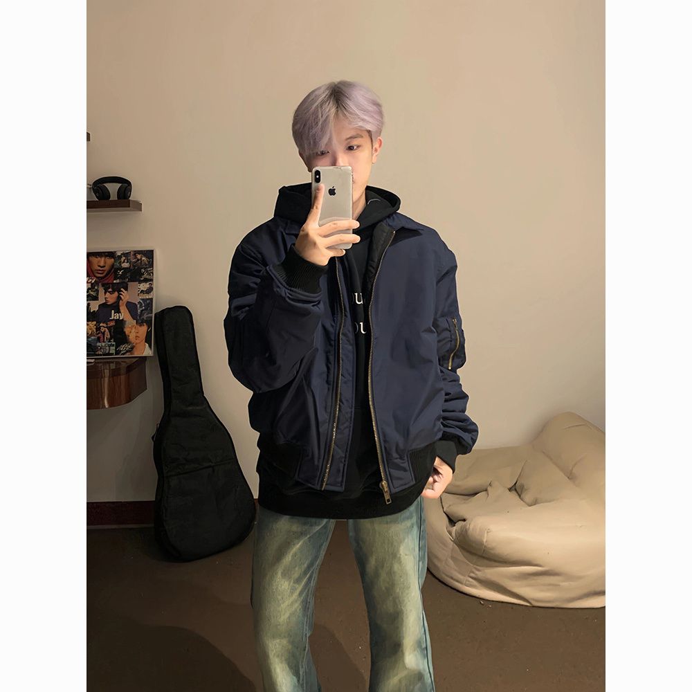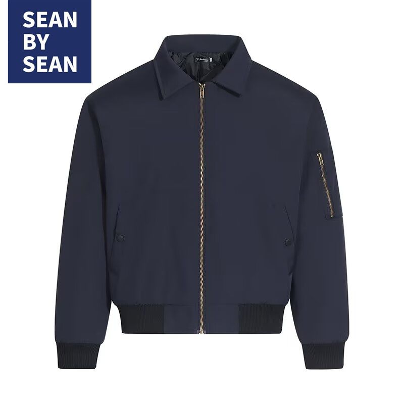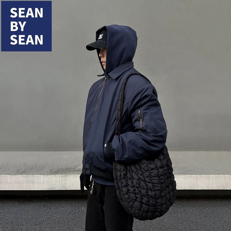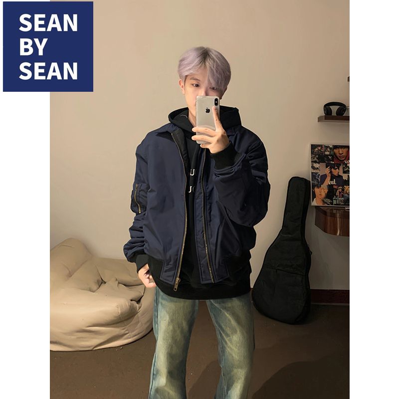 SEANBYSEAN美式复古藏青色飞行员夹克棉服外套潮vintage棒球服男