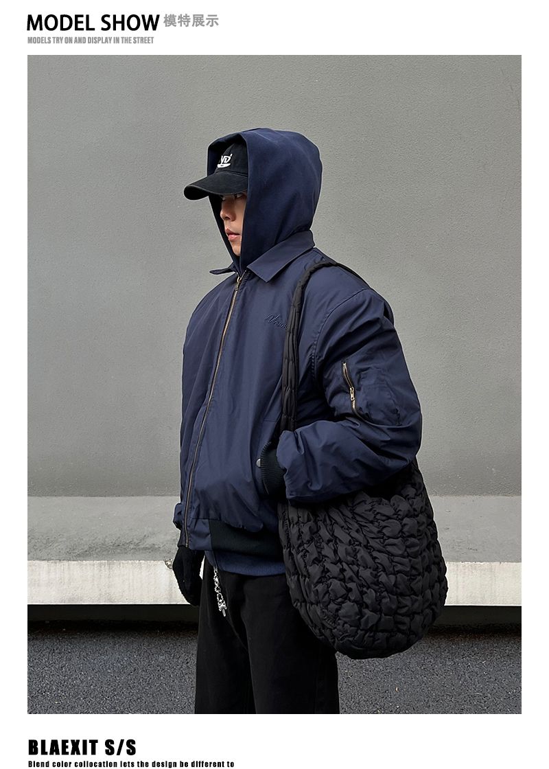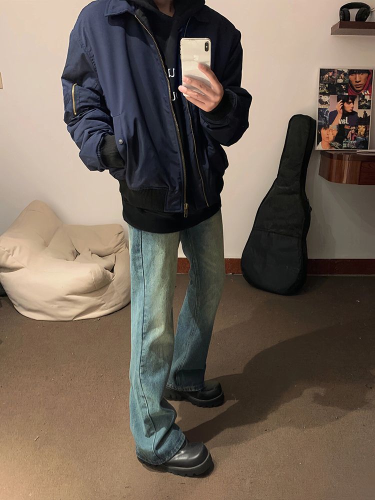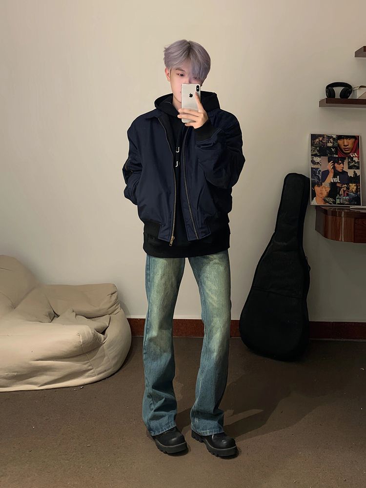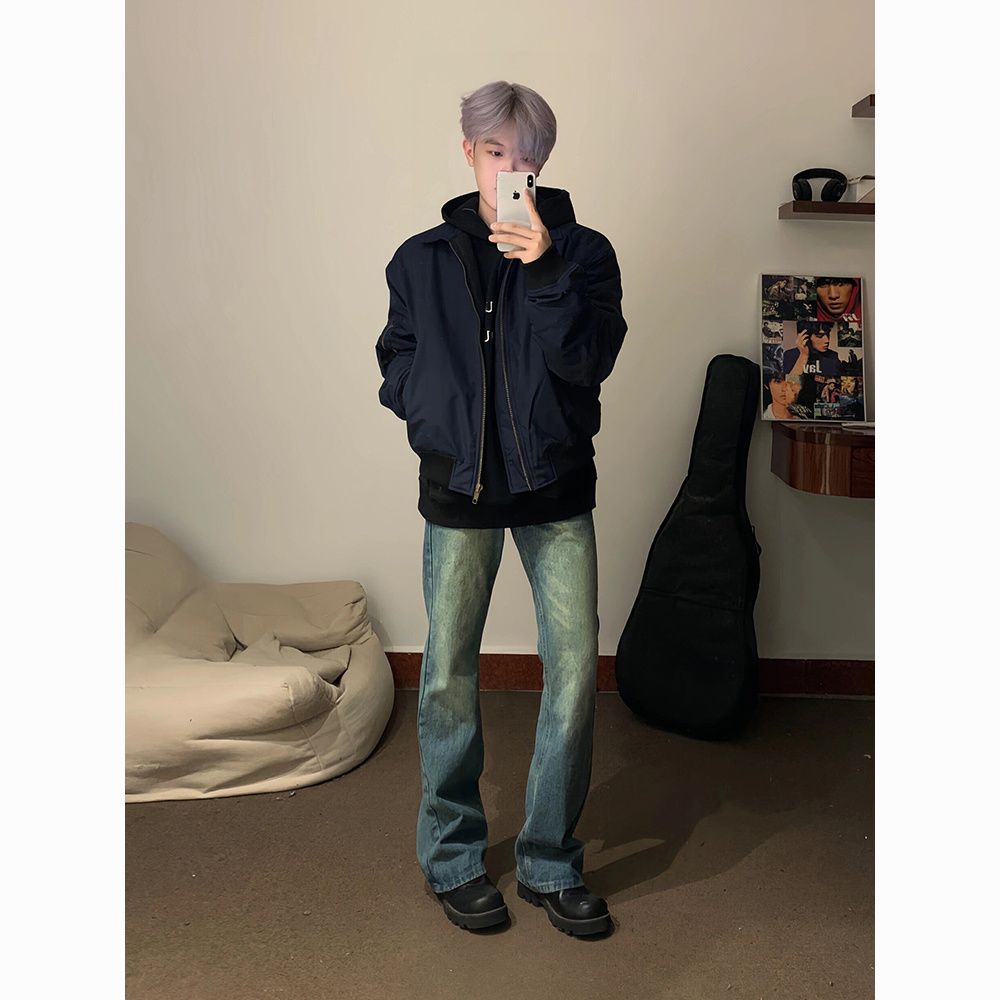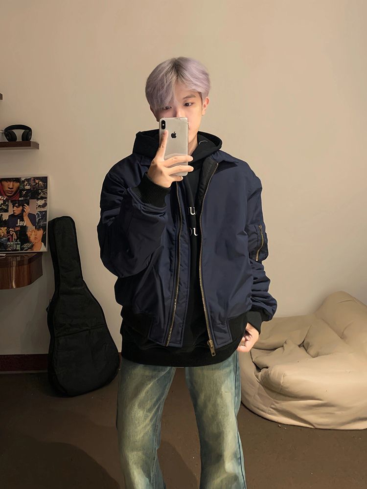 SEANBYSEAN美式复古藏青色飞行员夹克棉服外套潮vintage棒球服男