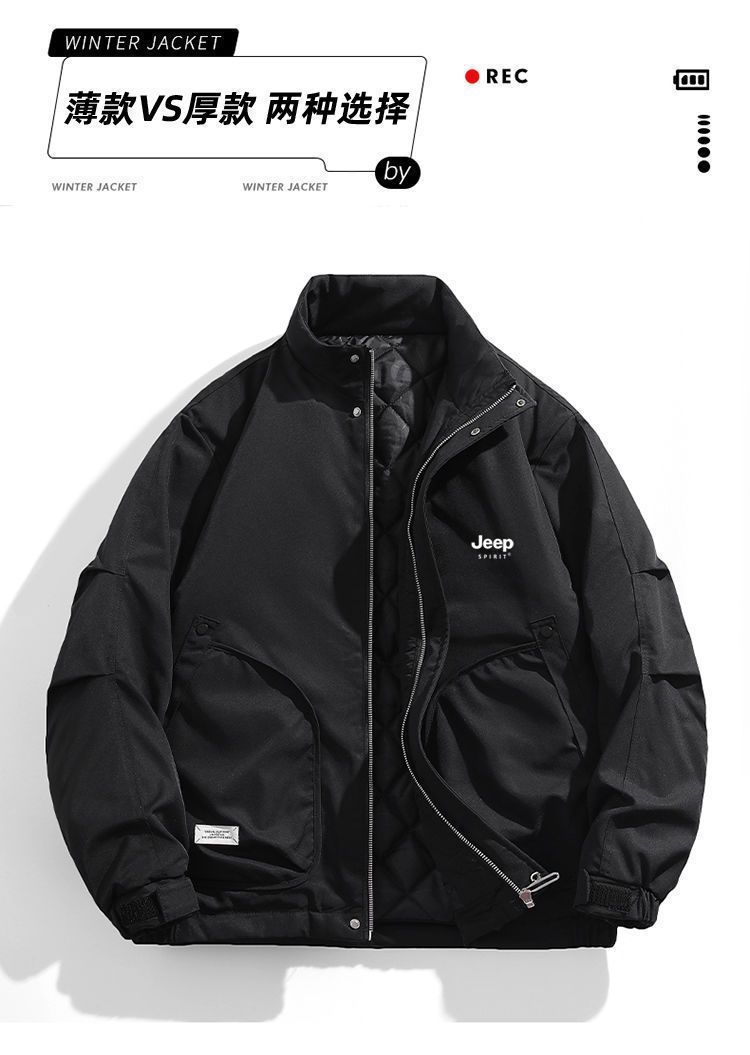 JEEP吉普男士外套2024秋冬季新款加厚工装飞行服大码立领夹克衫