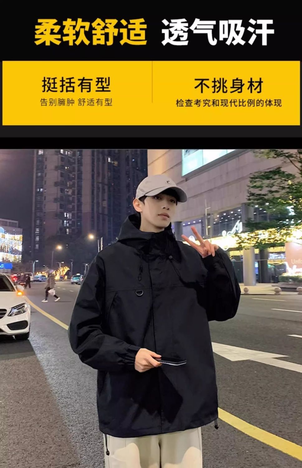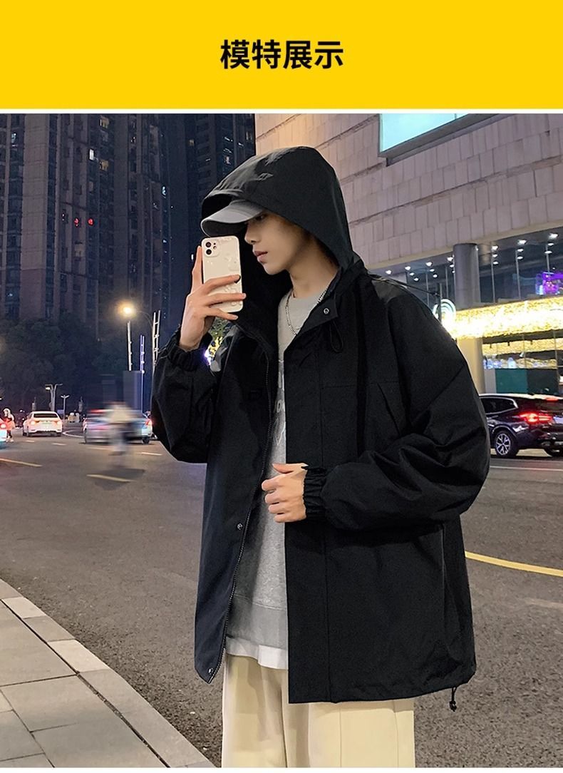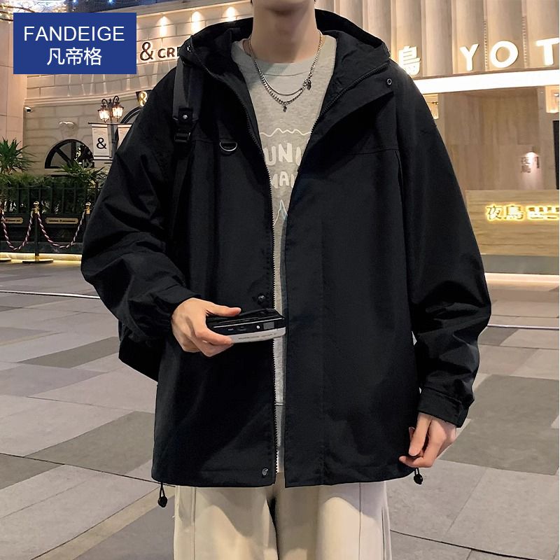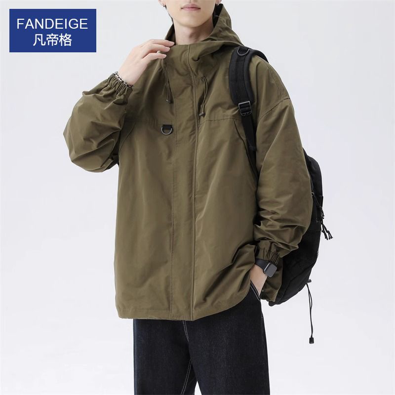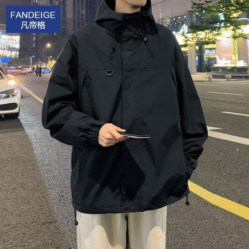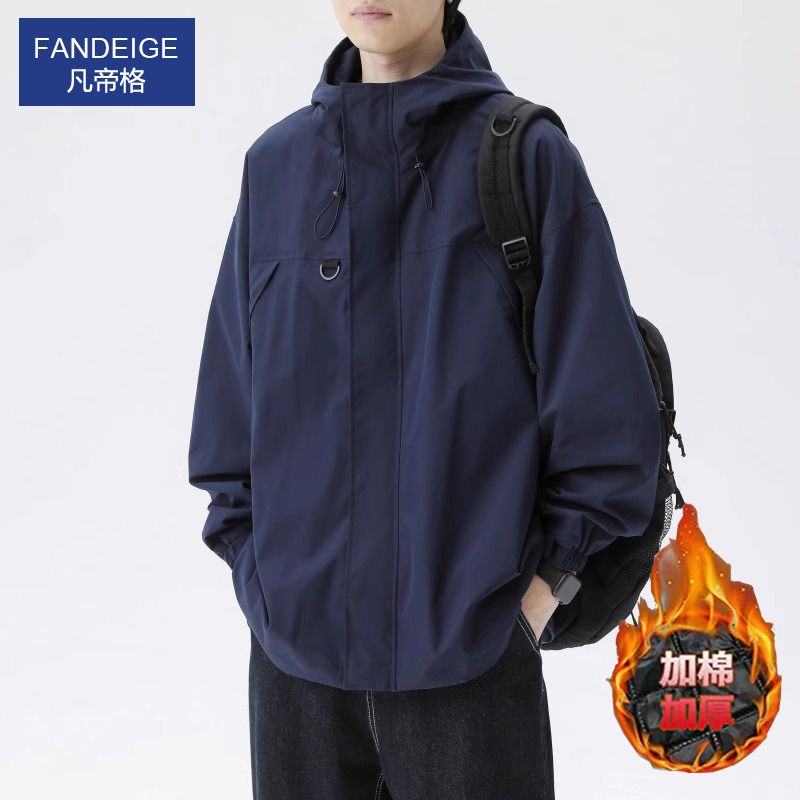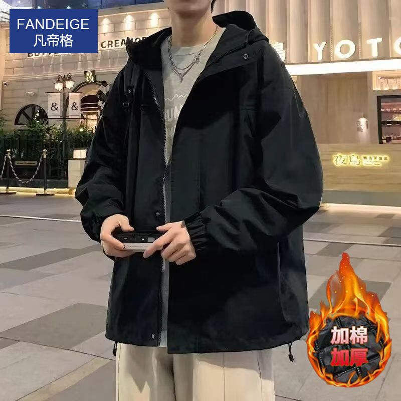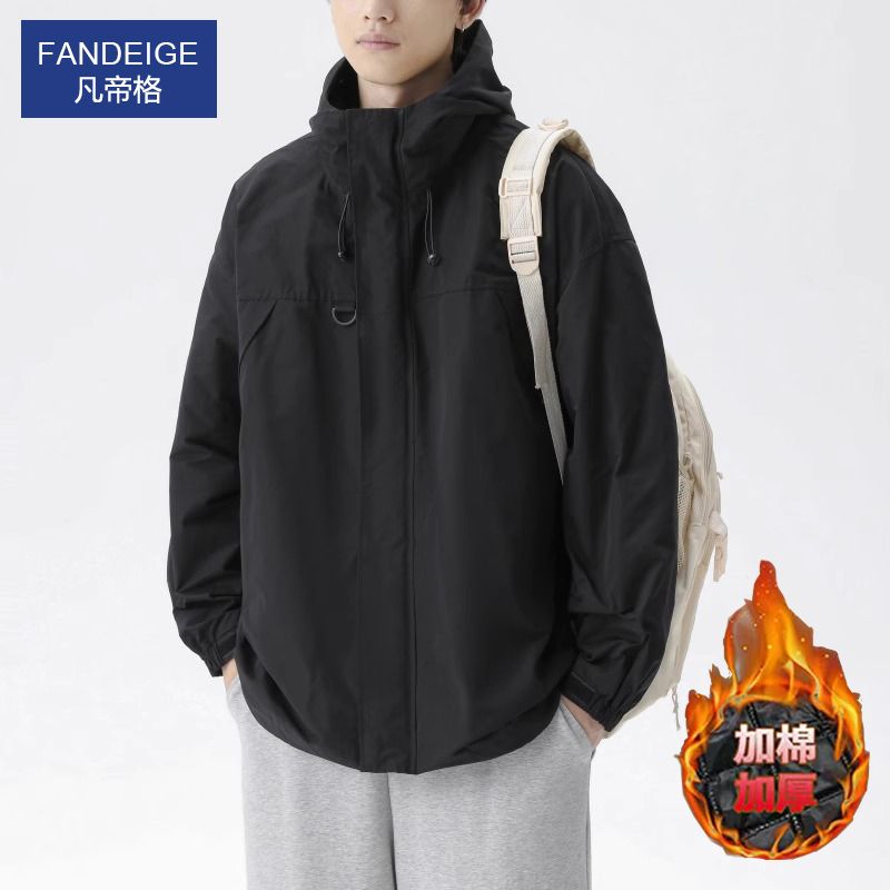 凡帝格新款冲锋衣外套男士加棉加厚春秋潮牌工装夹克男生秋冬连帽