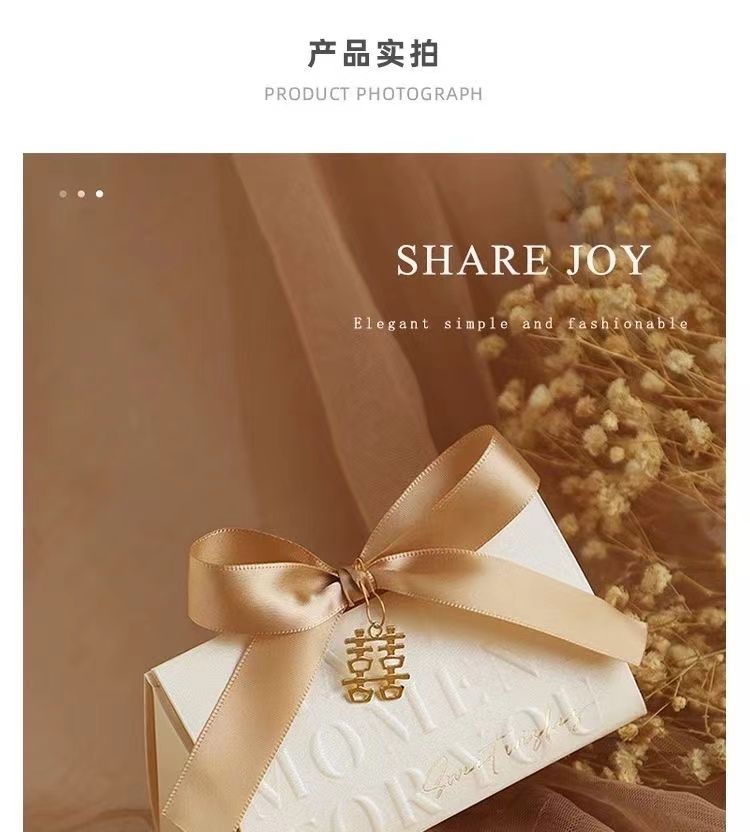 | champagne + golden ribbon + happy brand(香槟色+金色丝带+喜牌) | USD $6.45 | 999999 piece available |