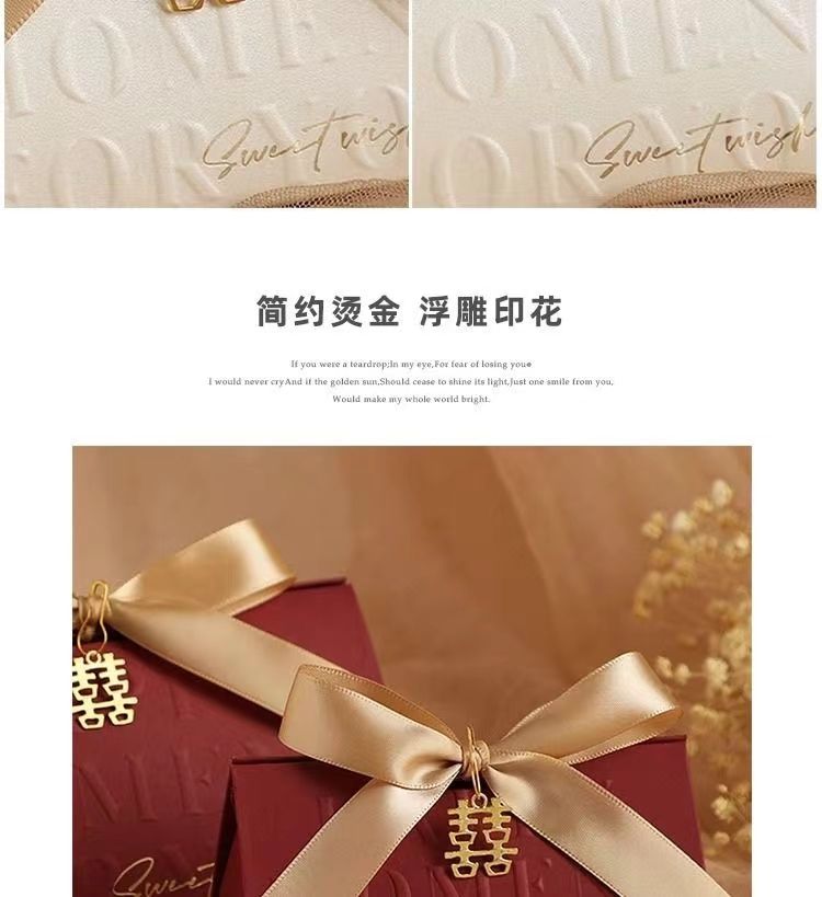| wine red + golden ribbon + happy brand(酒红色+金色丝带+喜牌) | USD $5.69 | 999999 piece available |