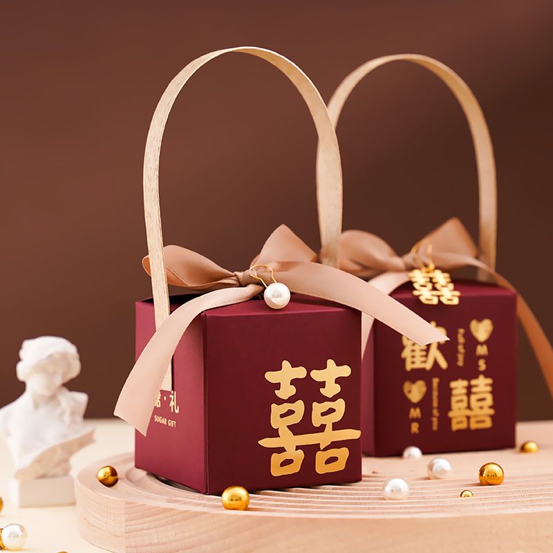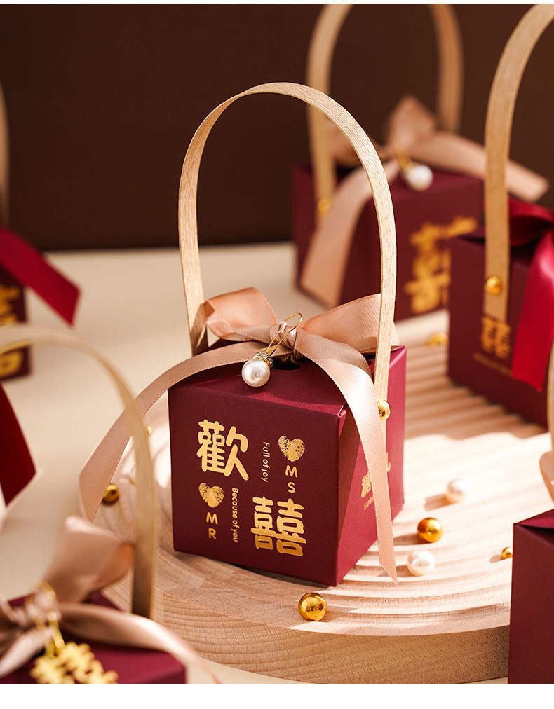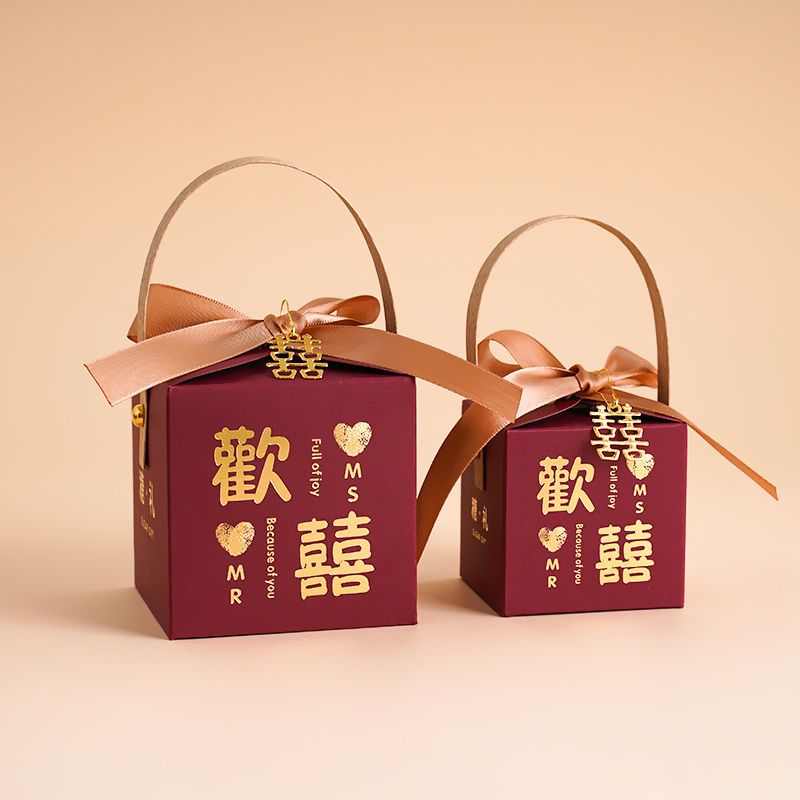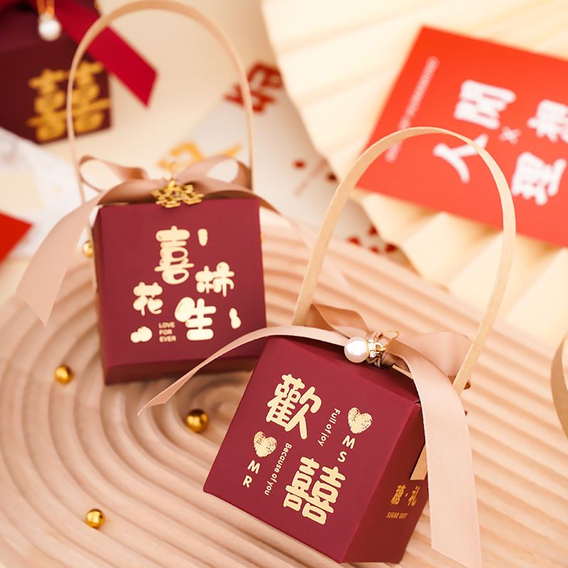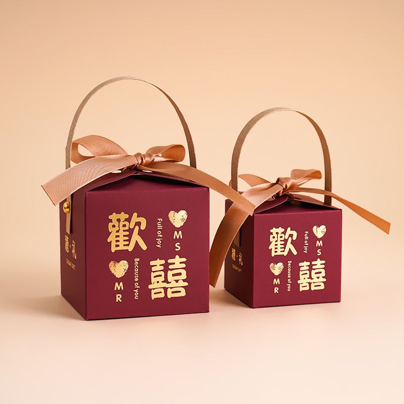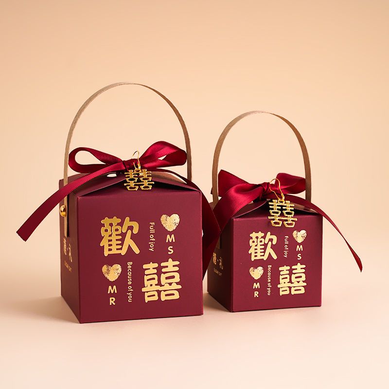 2025新款中式结婚喜糖盒子纸盒创意网红包装糖果袋婚庆礼盒手提袋