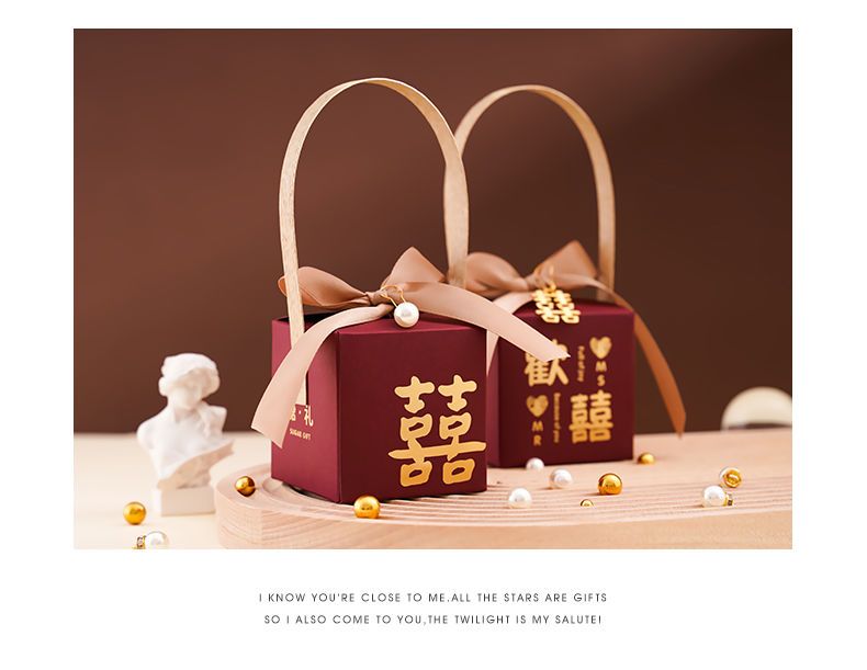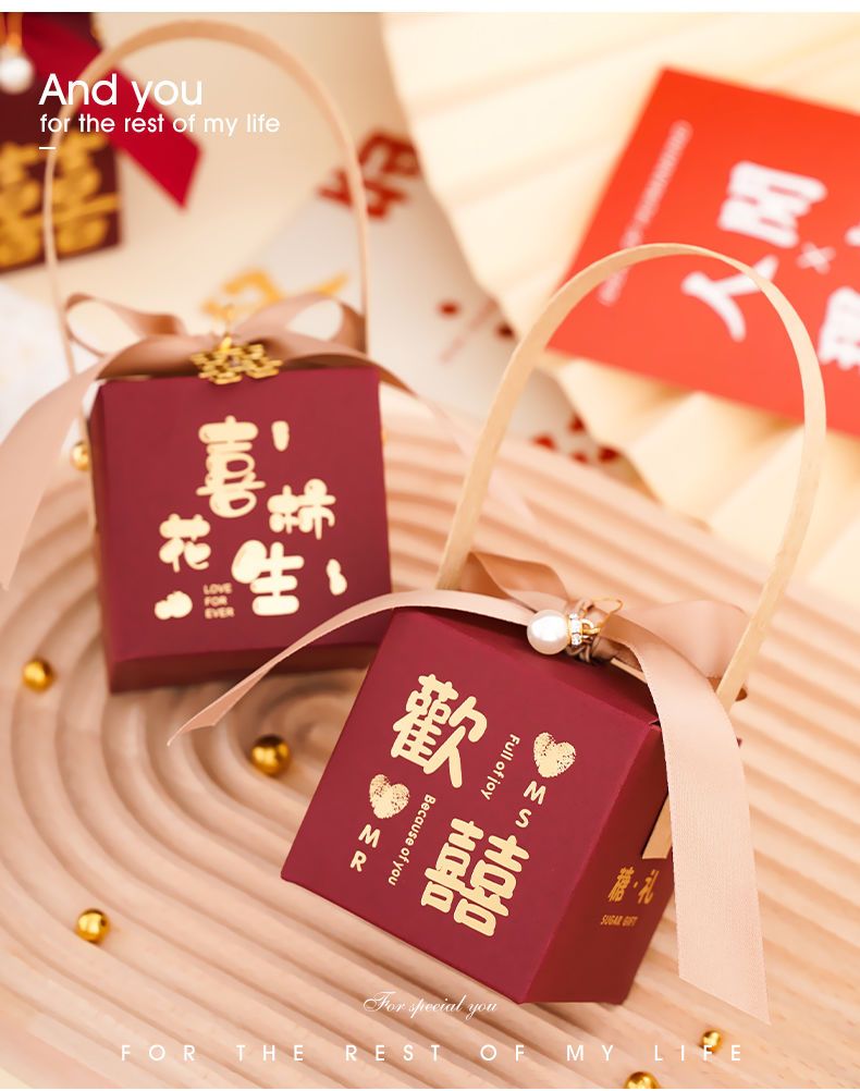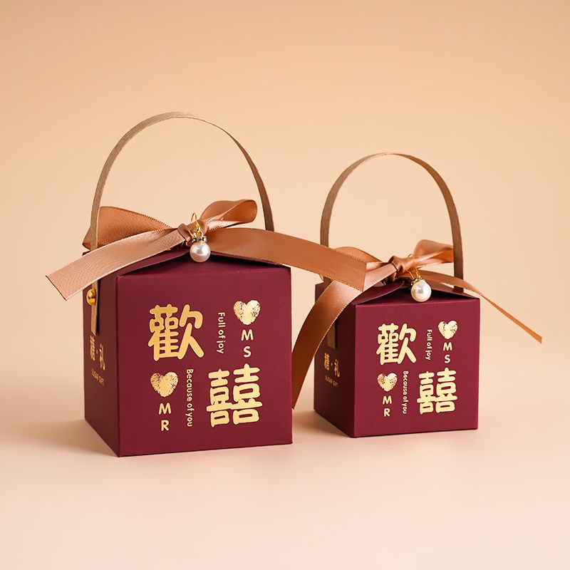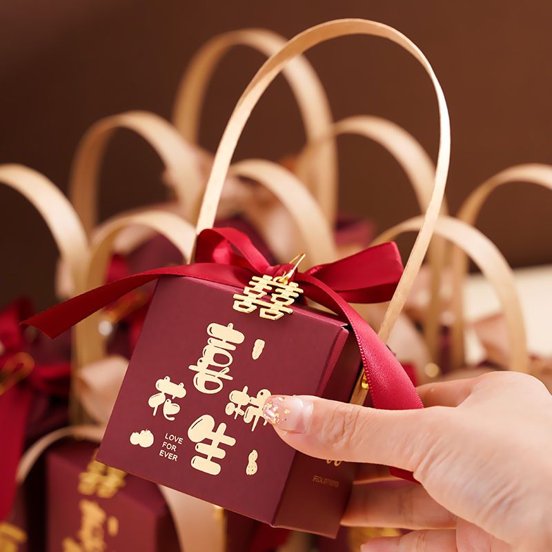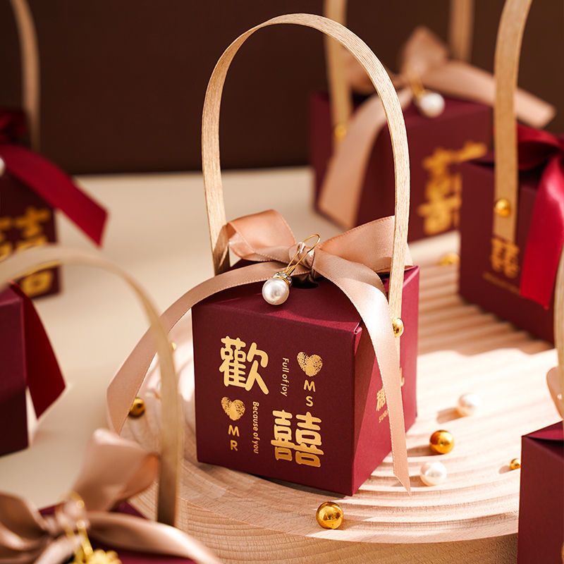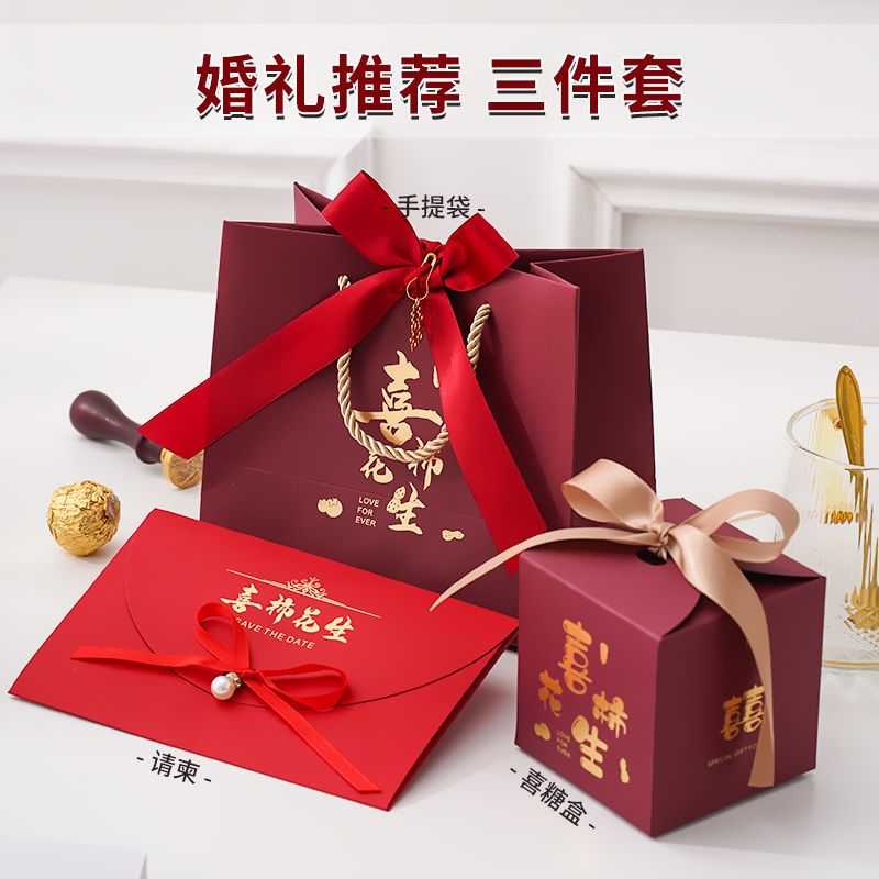 2025新款中式结婚喜糖盒子纸盒创意网红包装糖果袋婚庆礼盒手提袋