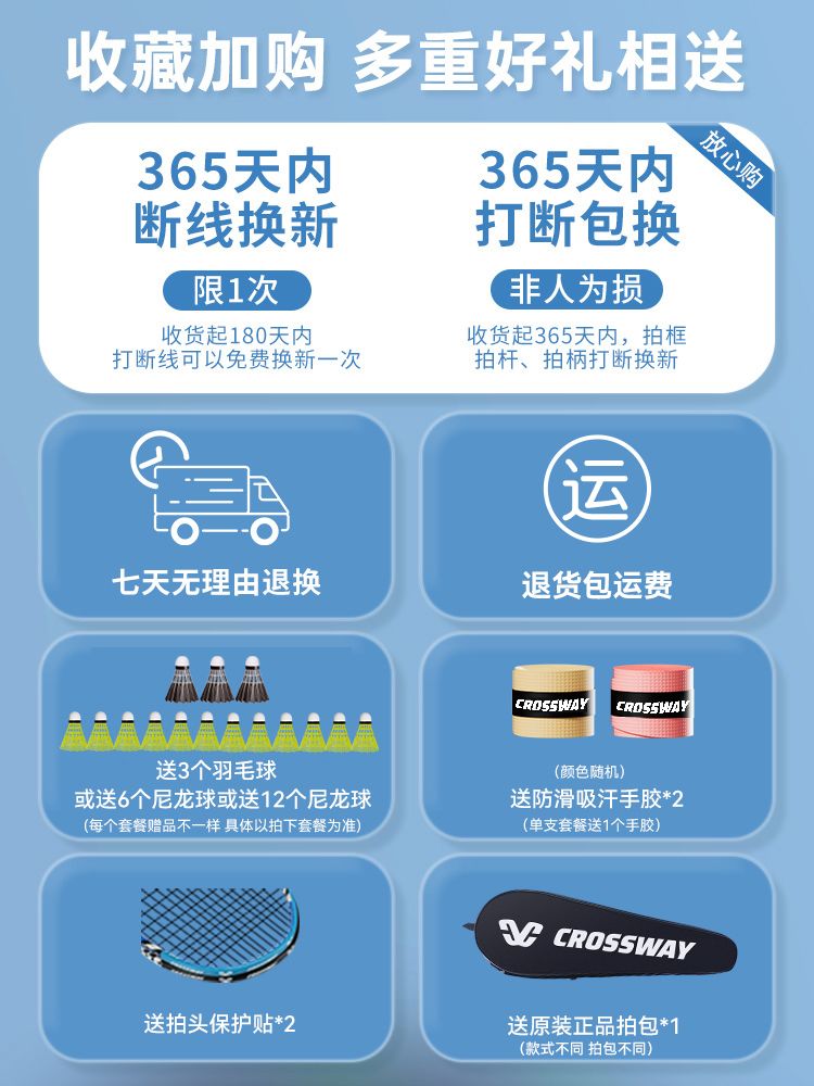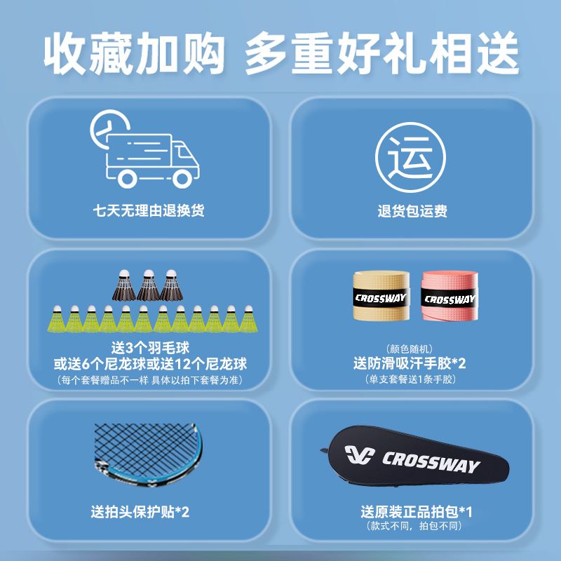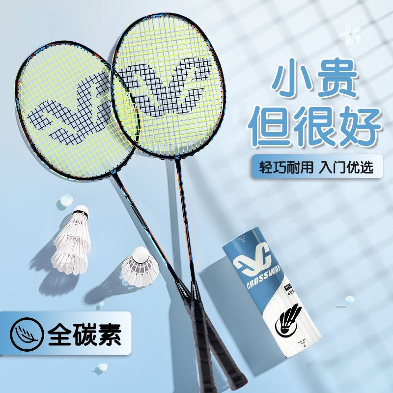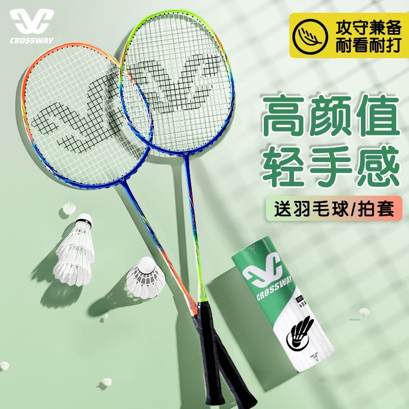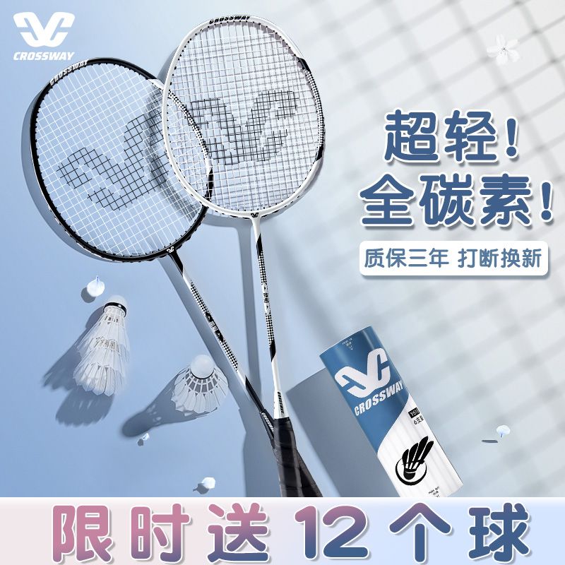 全碳素纤维克洛斯威羽毛球拍耐打高弹力成人学生超轻男女单拍双拍