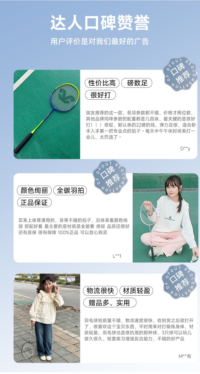 | high steel carbon [blue white + pink white] get 3 badminton 1 pack for free(高钢碳素【蓝白+粉白】送3羽毛球1包) | USD $19.67 | 999999 piece available |