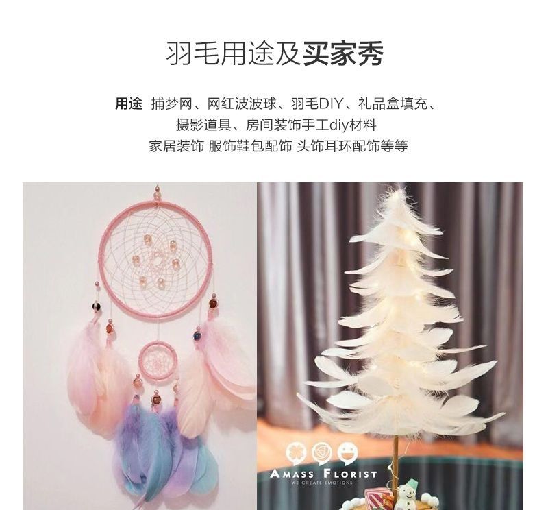 羽毛装饰diy手工材料捕梦网配件波波填充彩色绒毛马卡龙羽毛白色