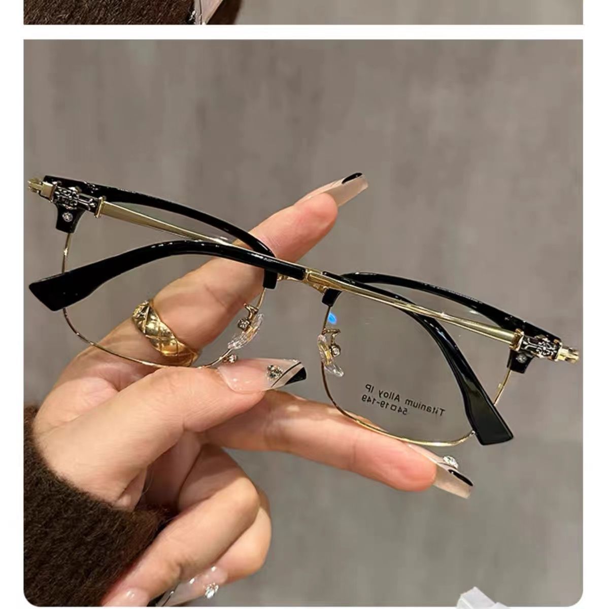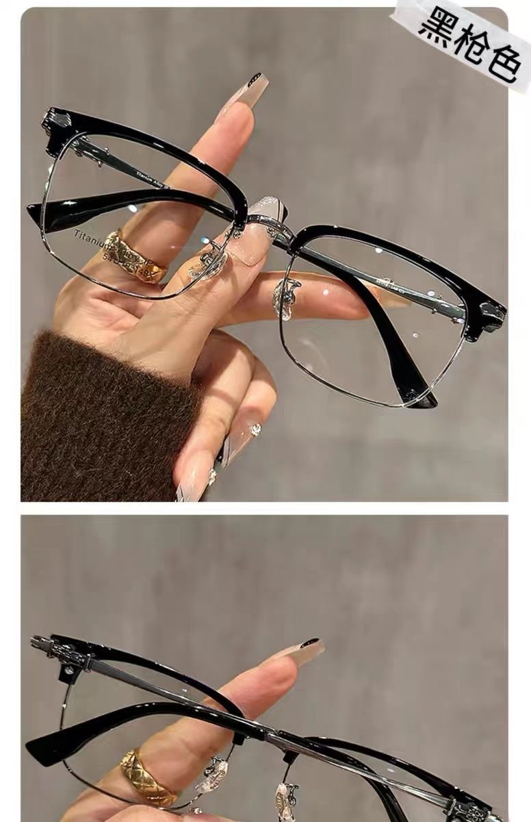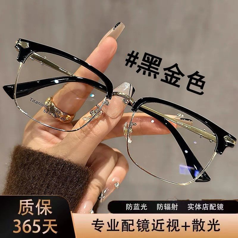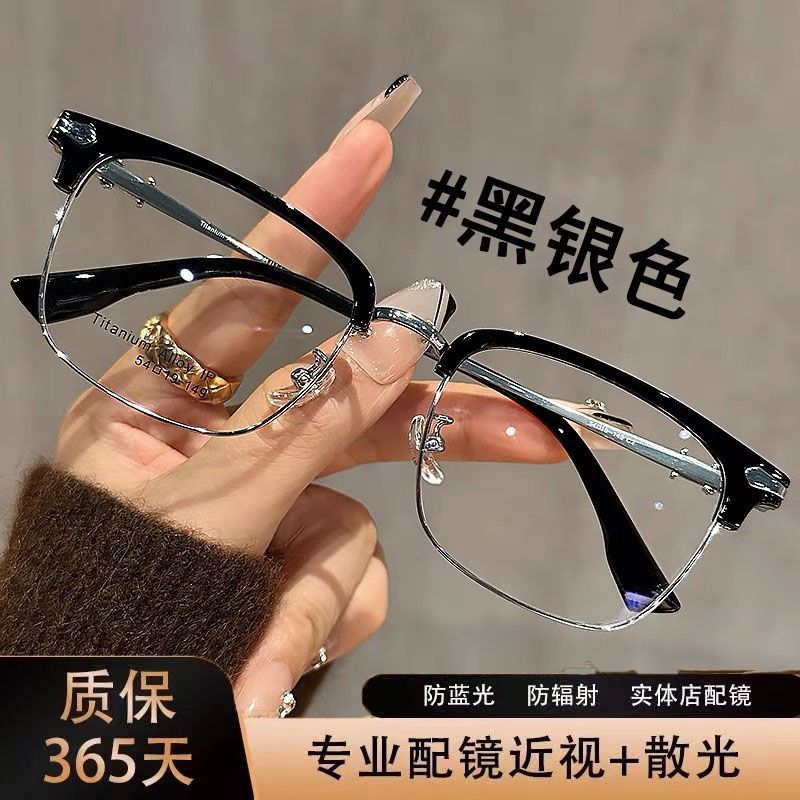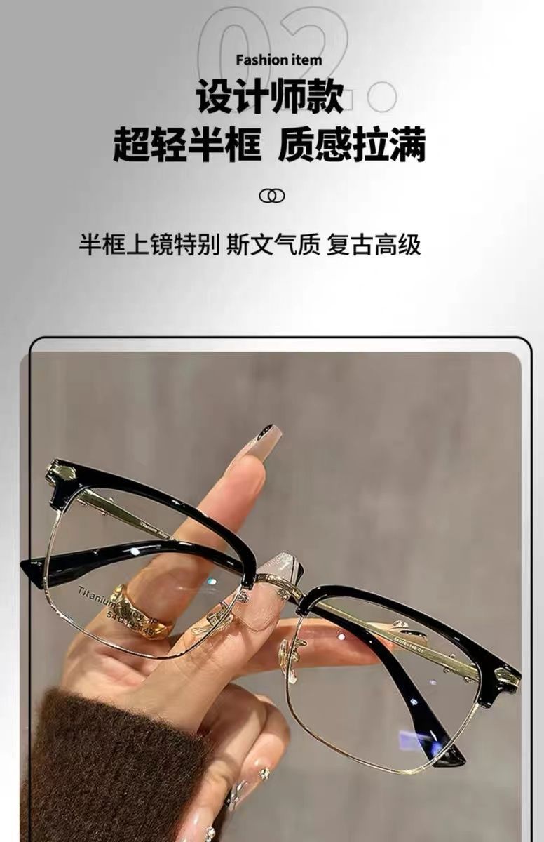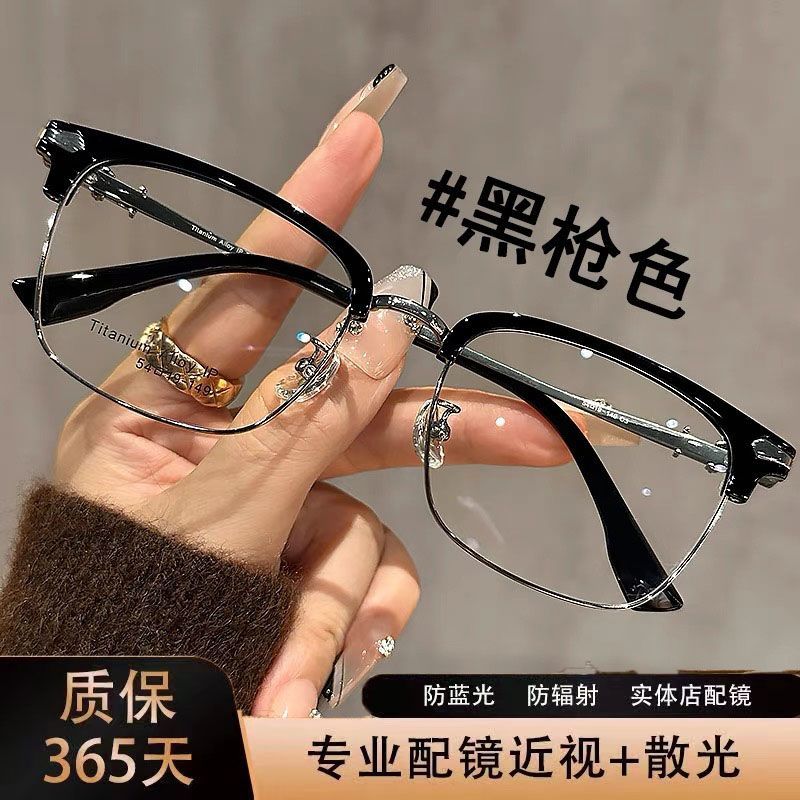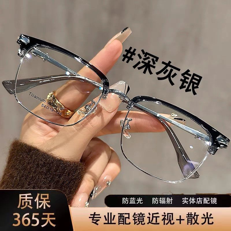 专业可配有度数近视眼镜男士痞帅斯文超轻钛架防蓝光男友款半框镜
