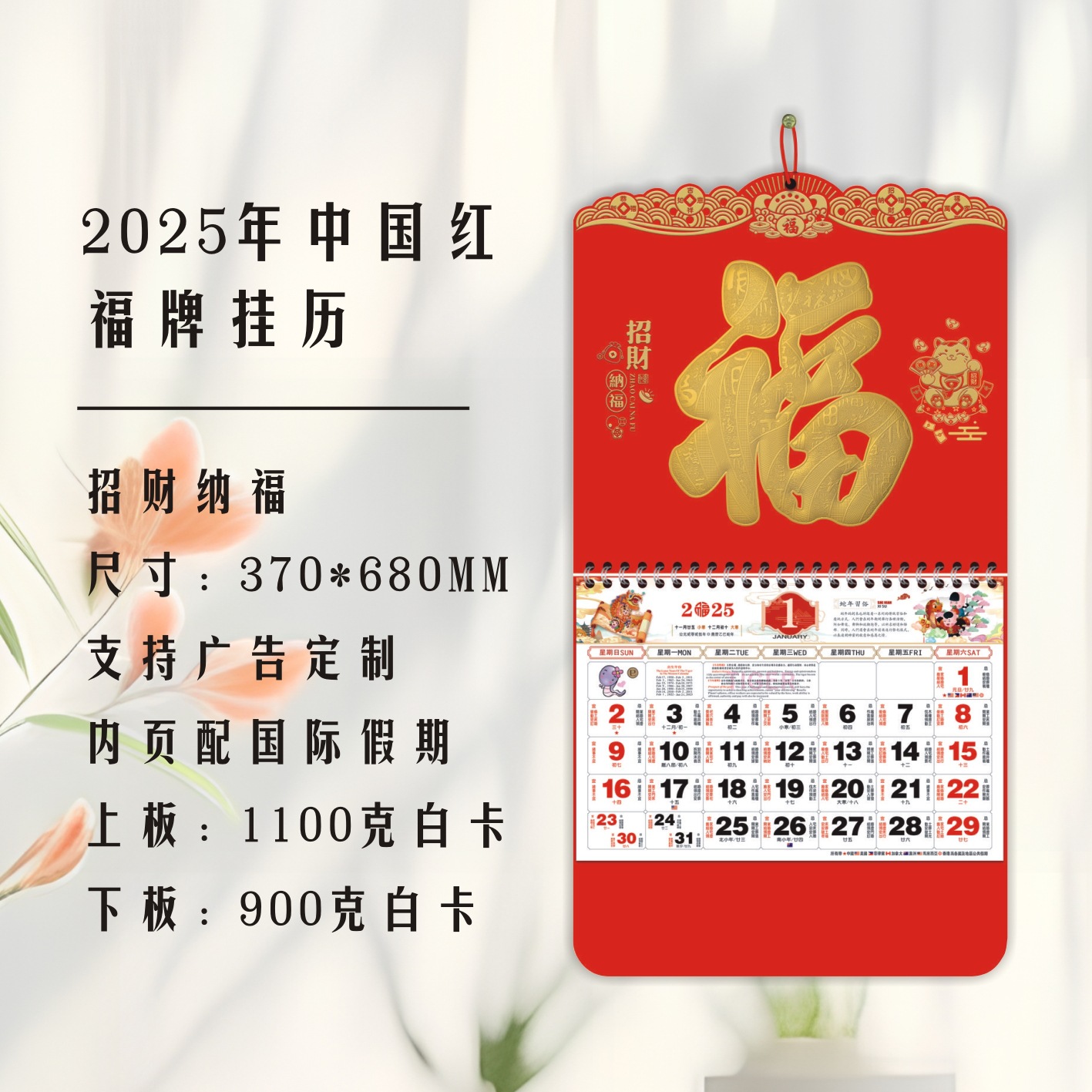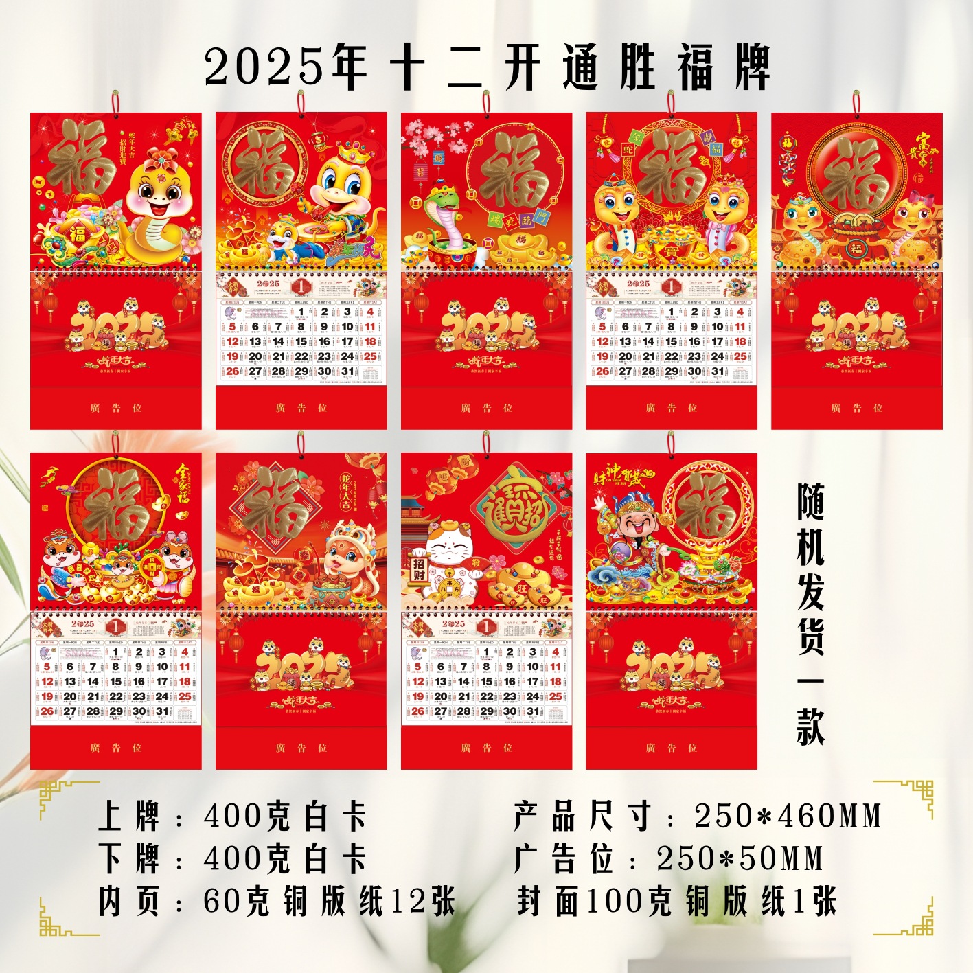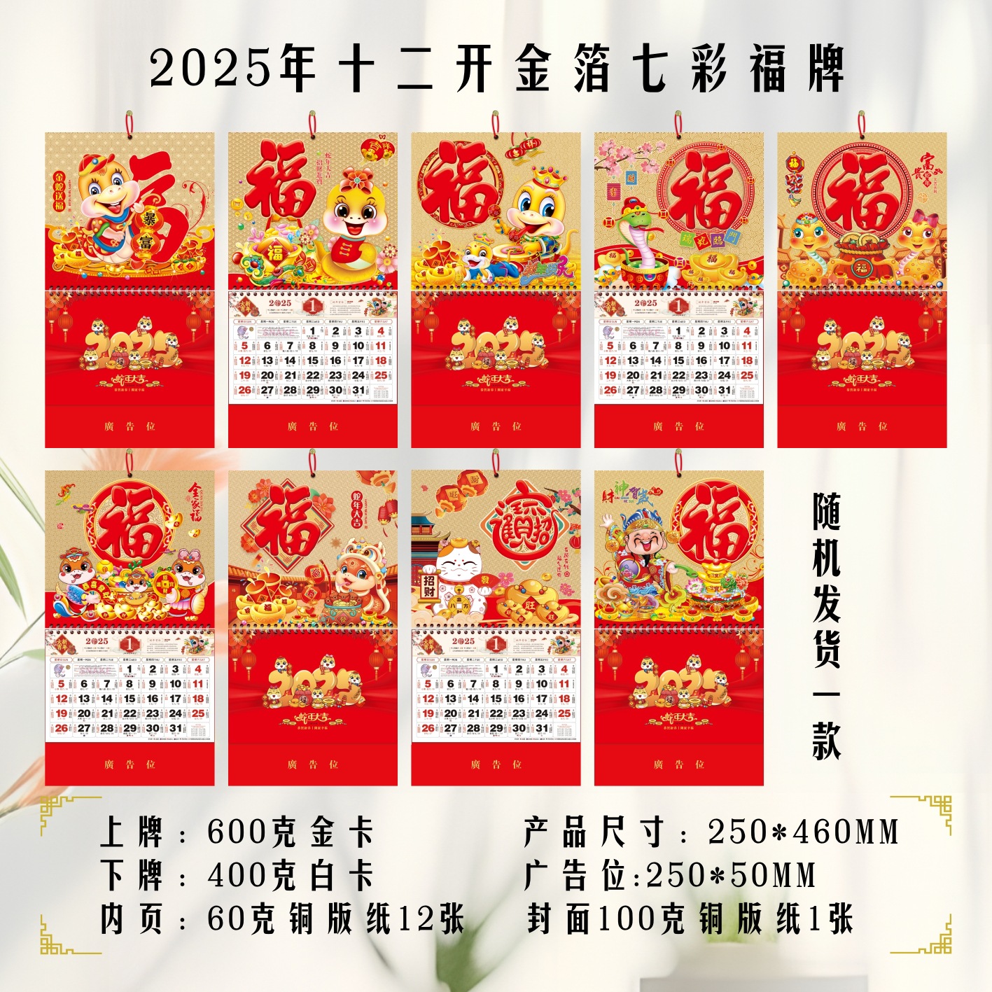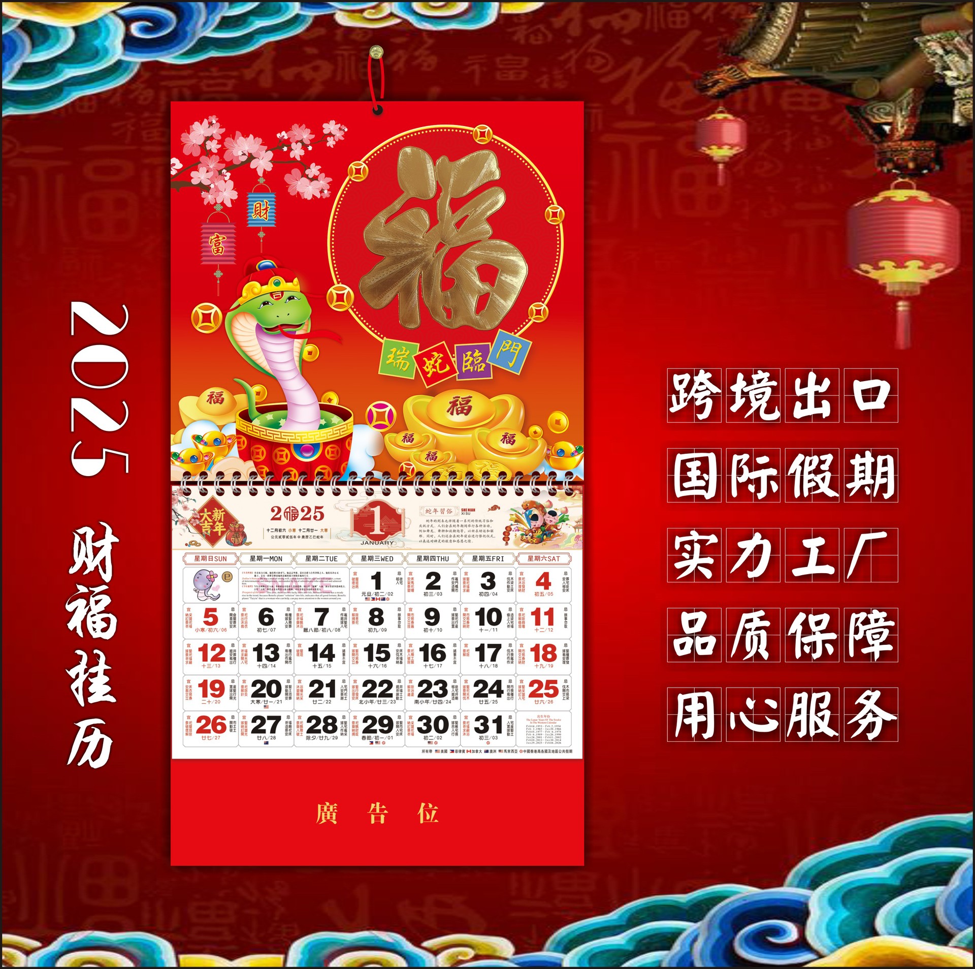 2025蛇年福字挂历定制印刷批发专版外贸国际跨境台历月历广告LOGO