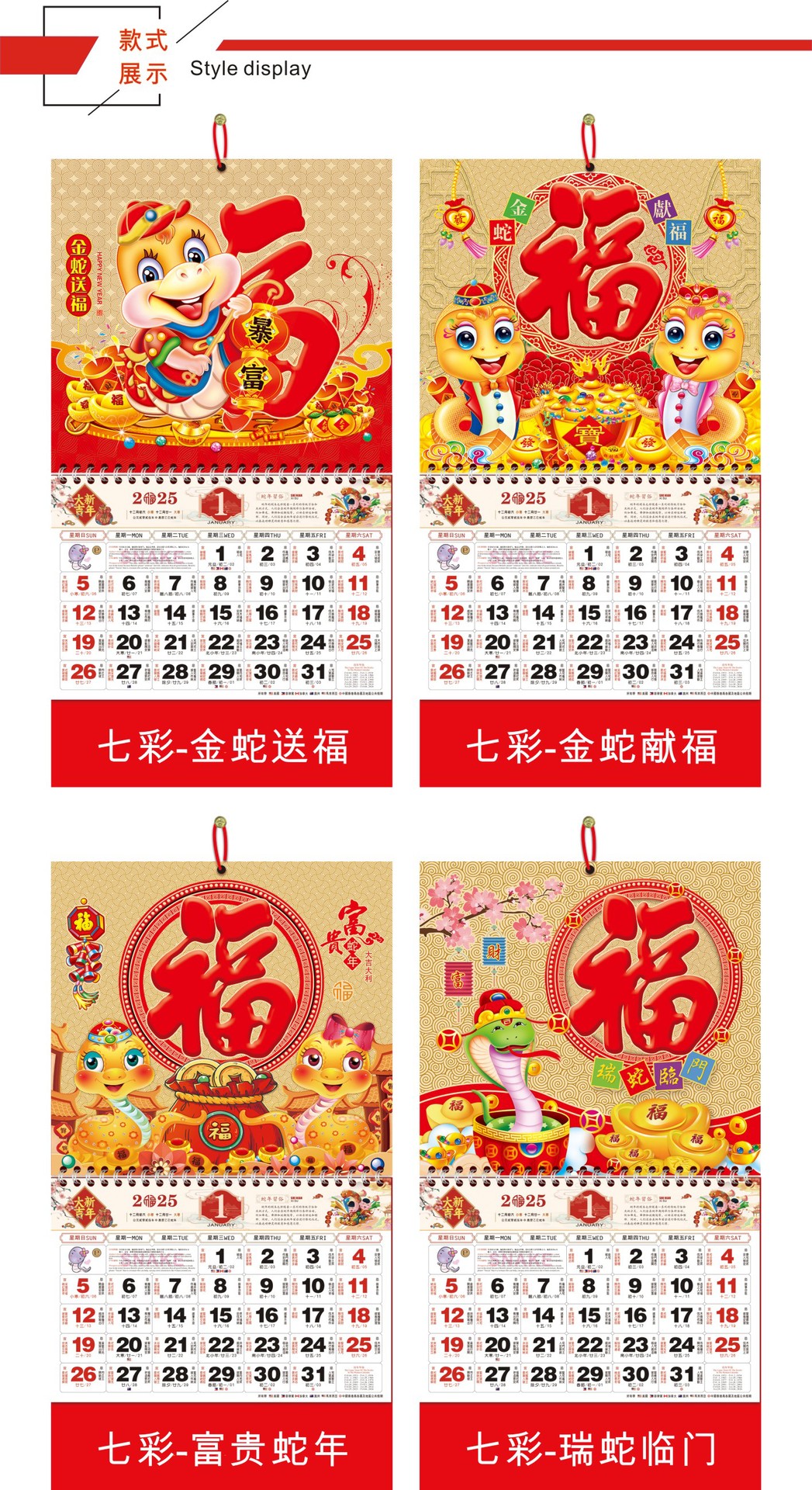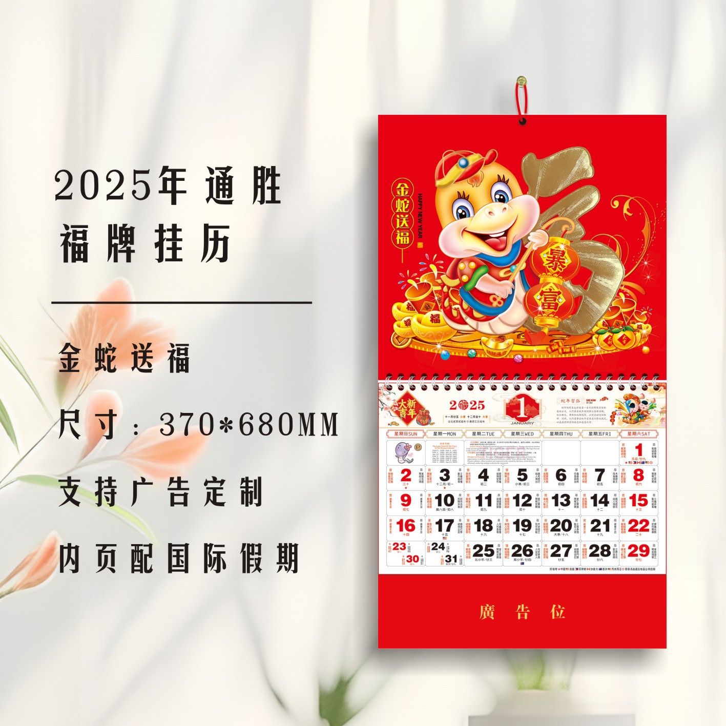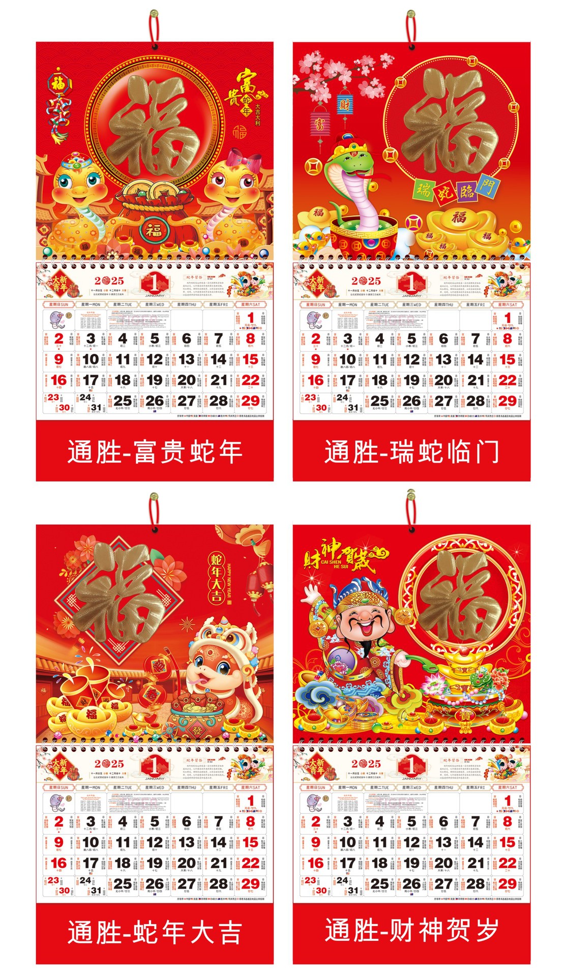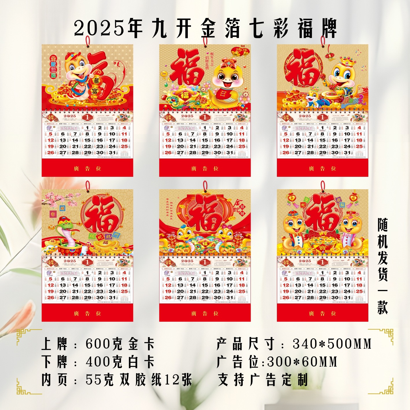 2025蛇年福字挂历定制印刷批发专版外贸国际跨境台历月历广告LOGO