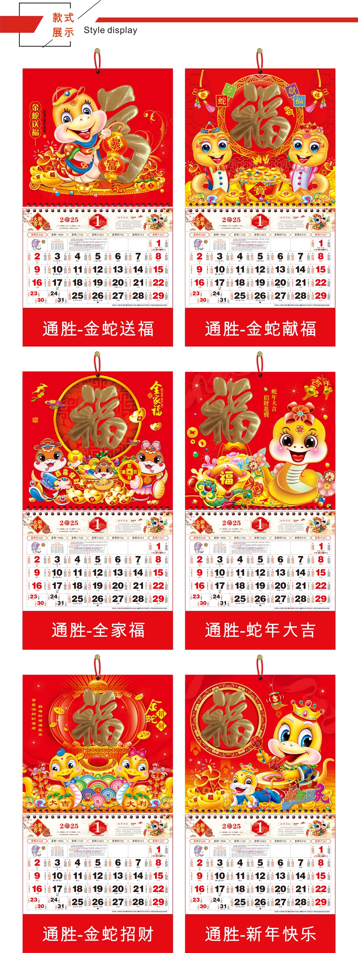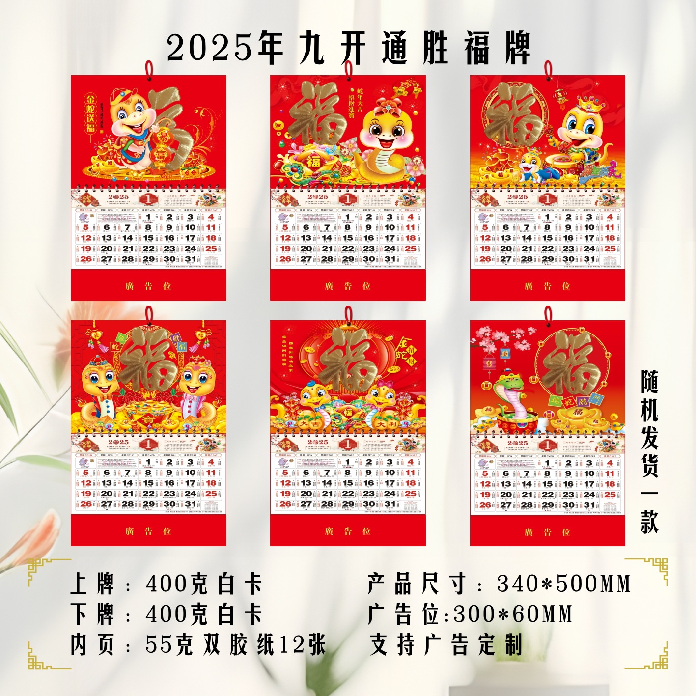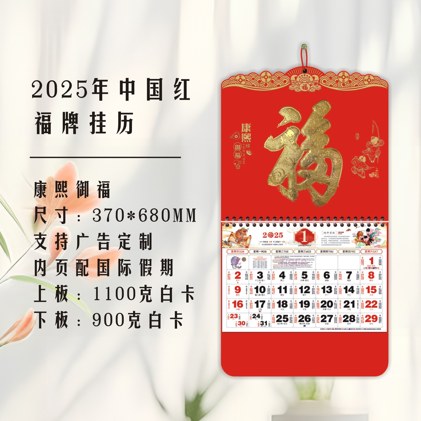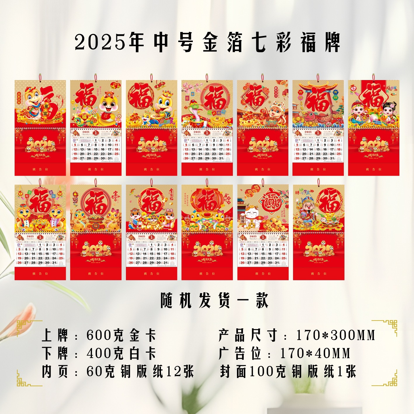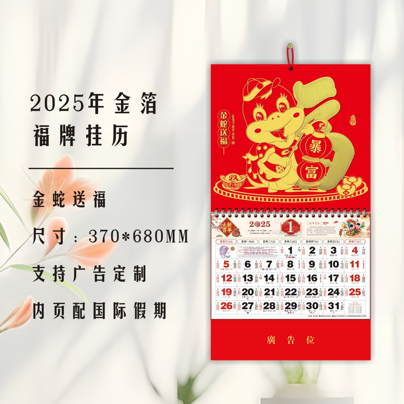 2025蛇年福字挂历定制印刷批发专版外贸国际跨境台历月历广告LOGO