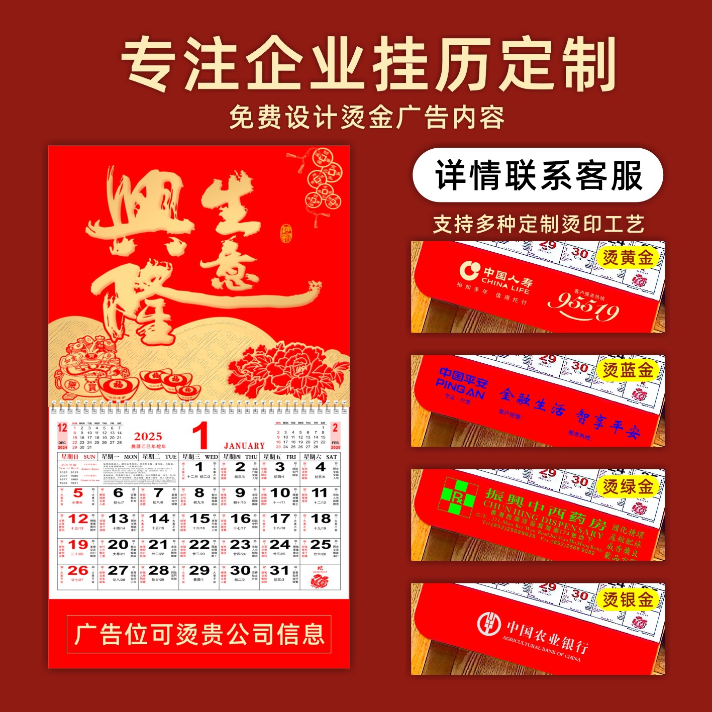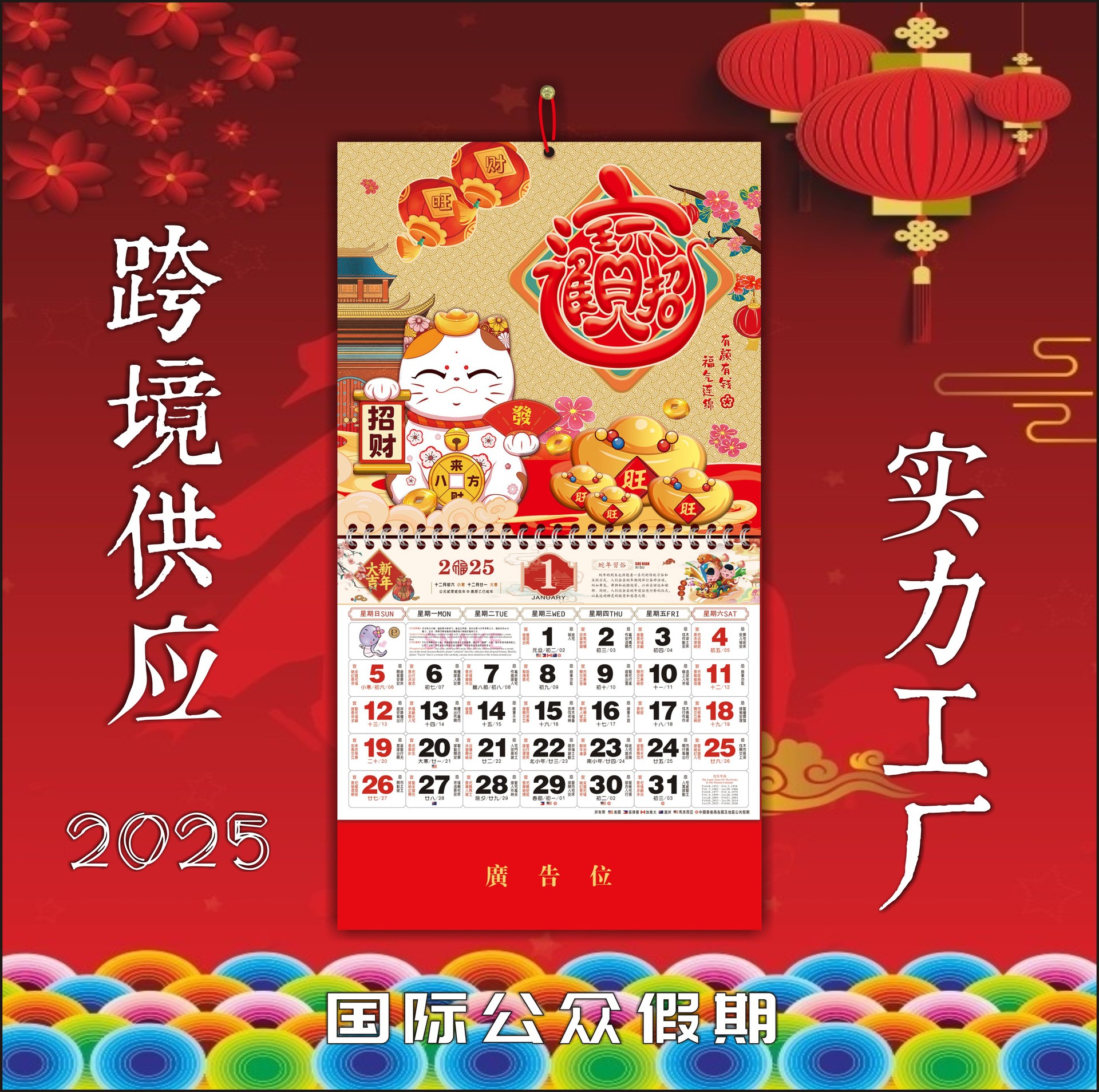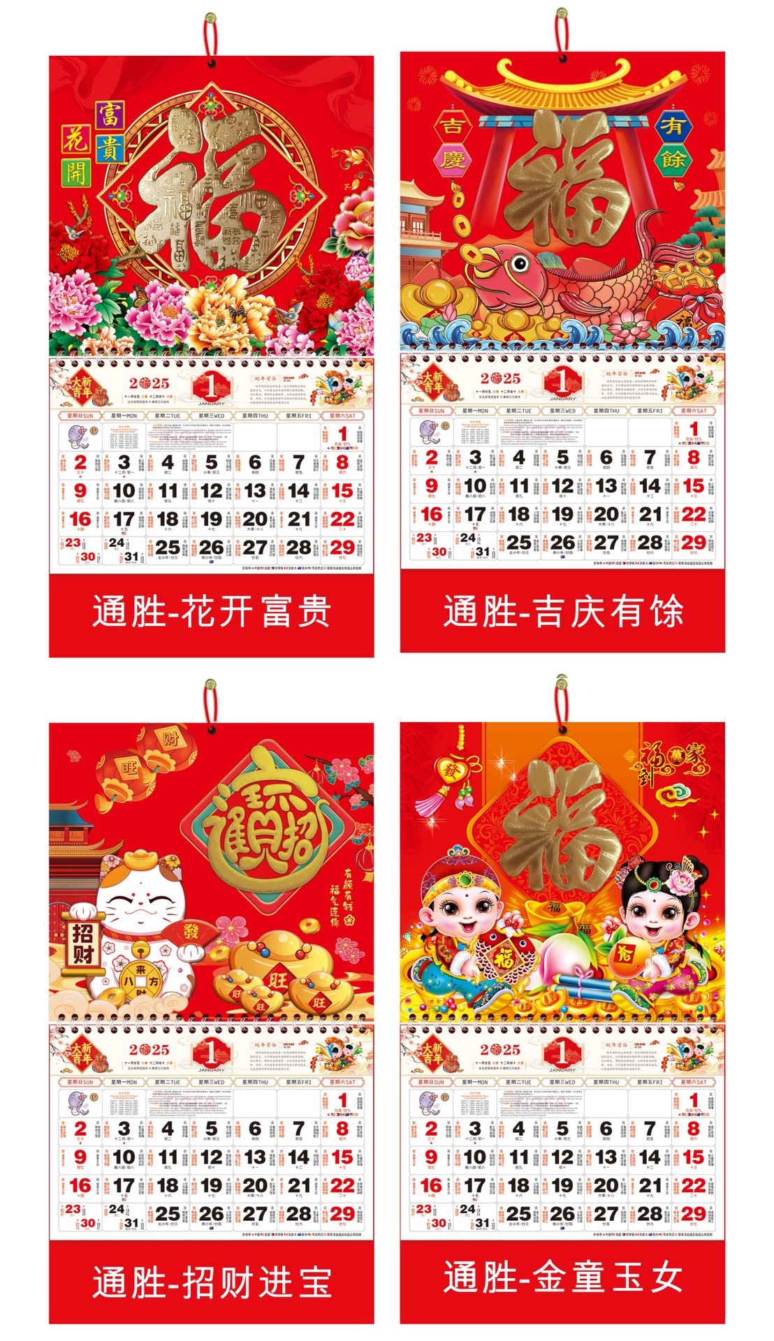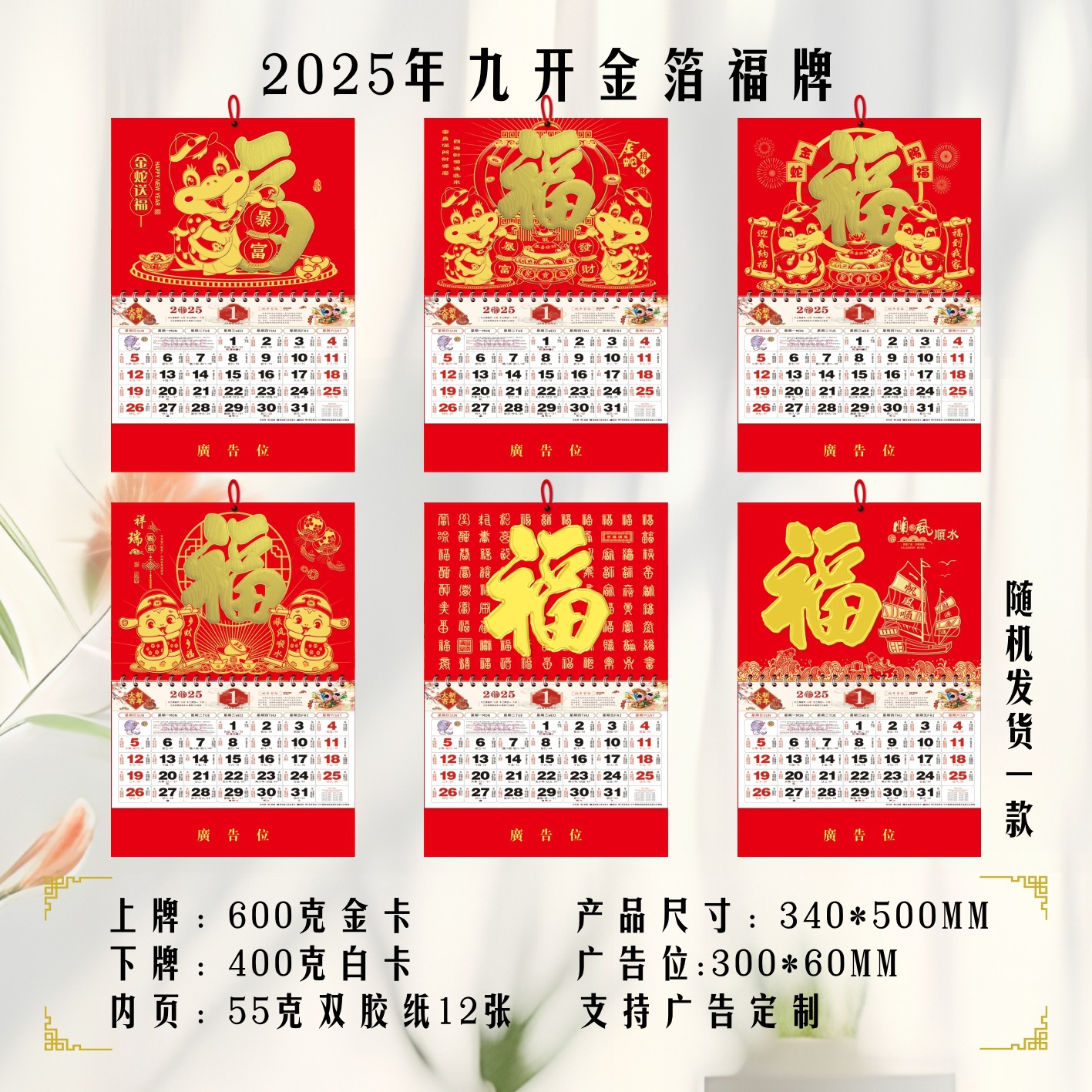 2025蛇年福字挂历定制印刷批发专版外贸国际跨境台历月历广告LOGO