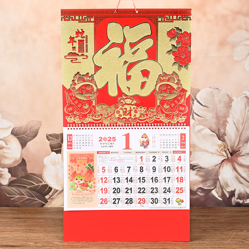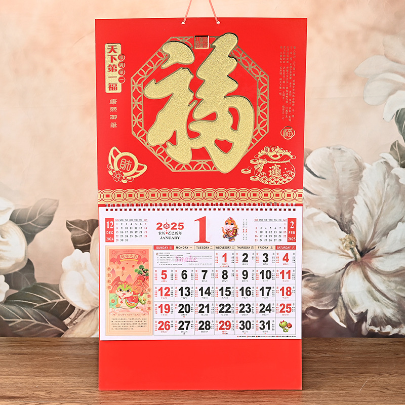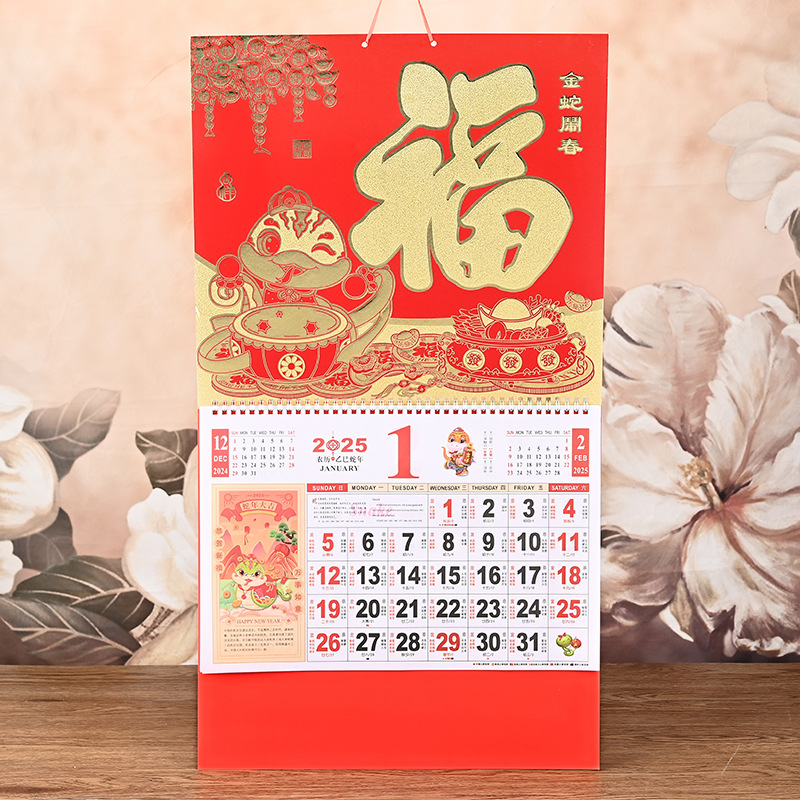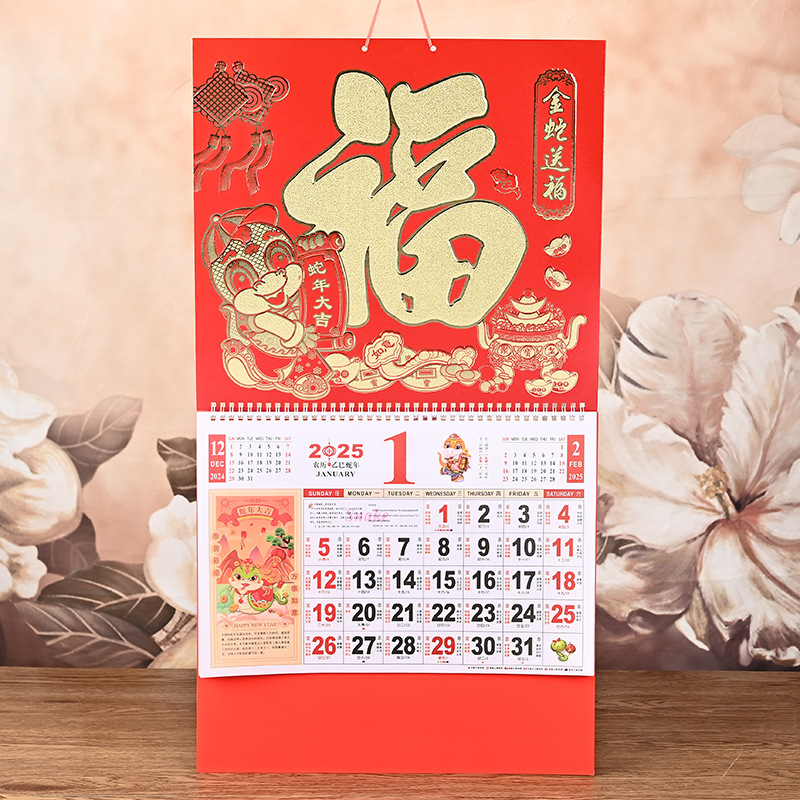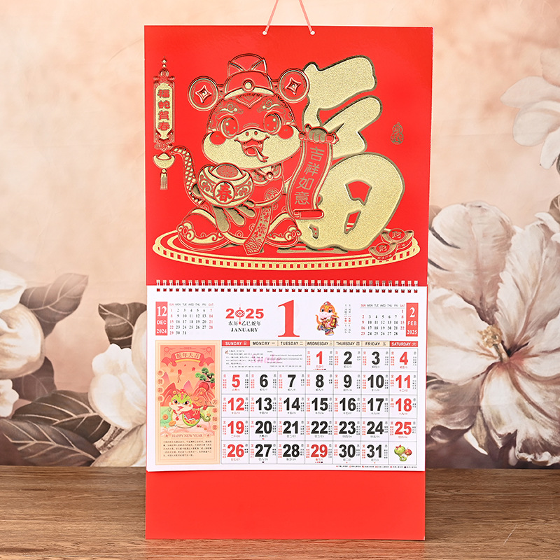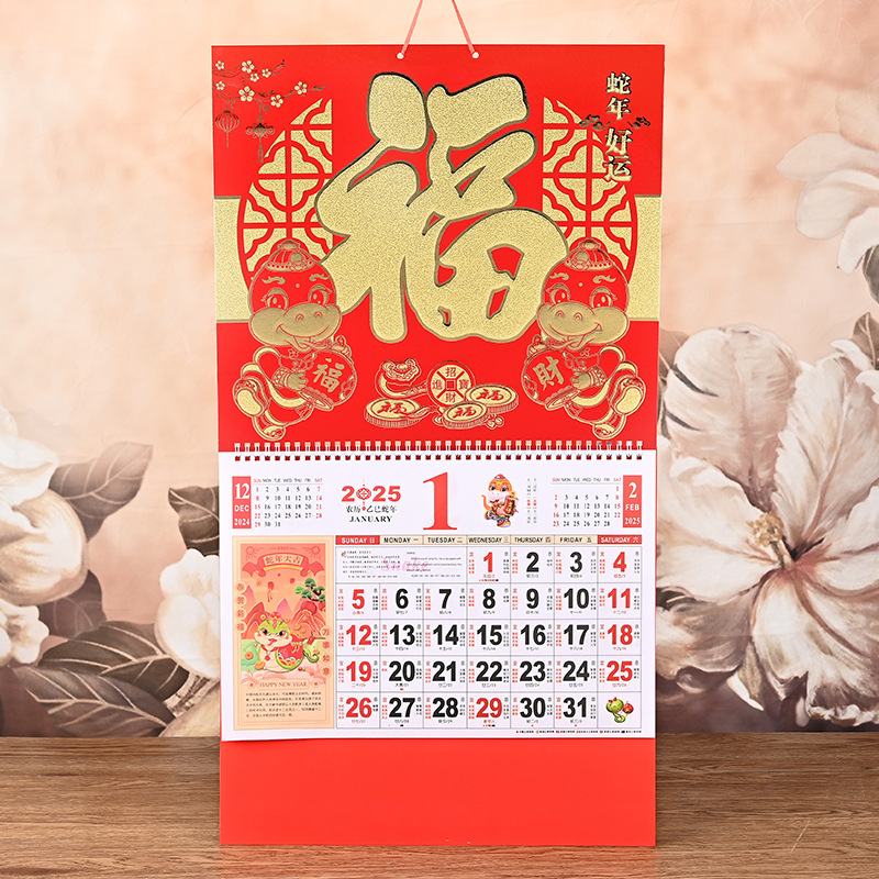 挂历2025蛇年福字日历企业公司广告烫金挂历定制家用送礼挂墙月历