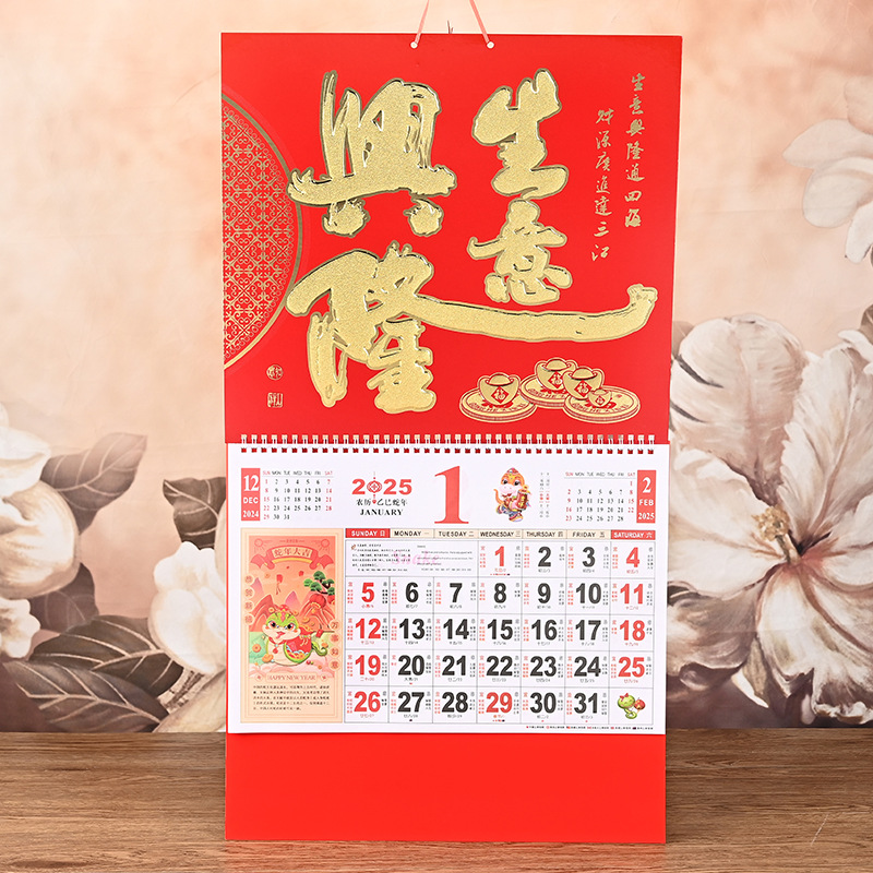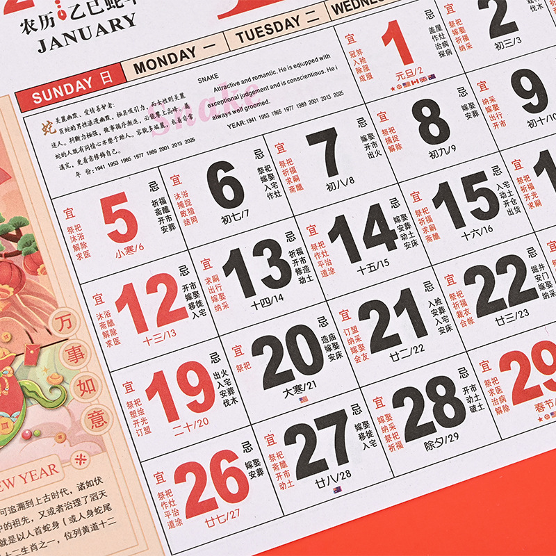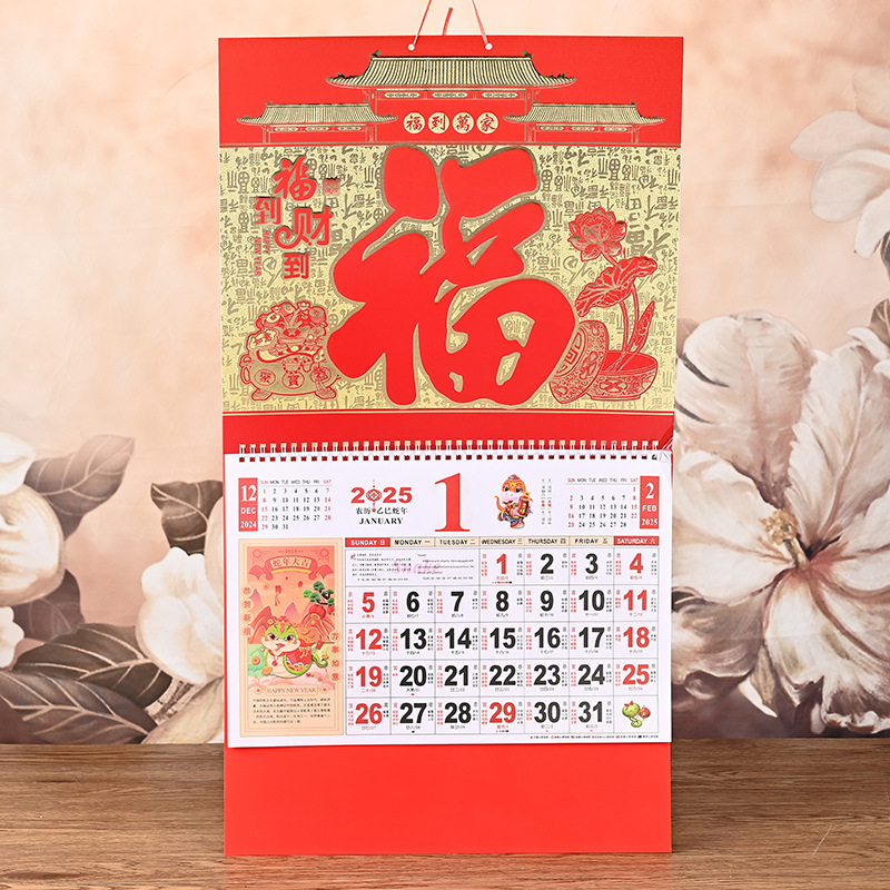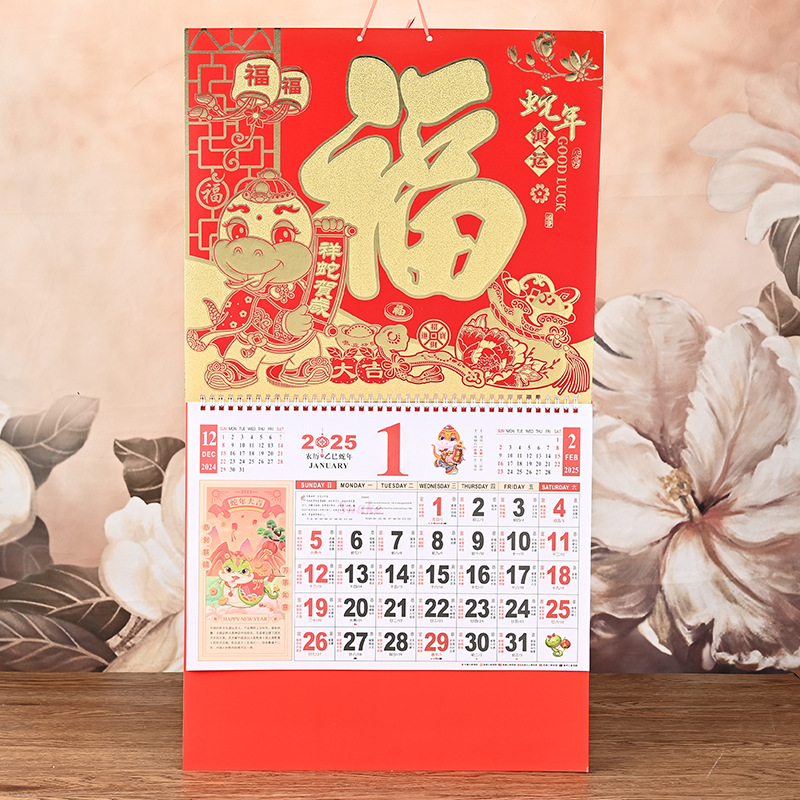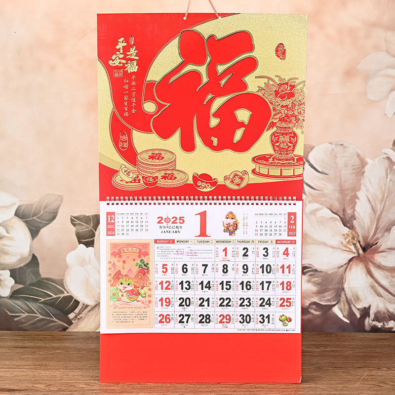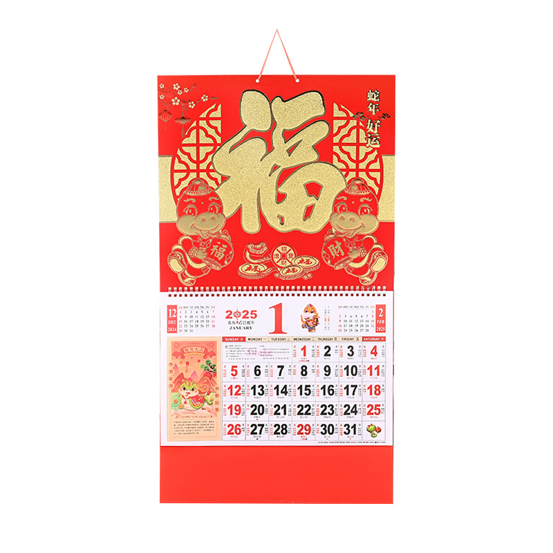 挂历2025蛇年福字日历企业公司广告烫金挂历定制家用送礼挂墙月历