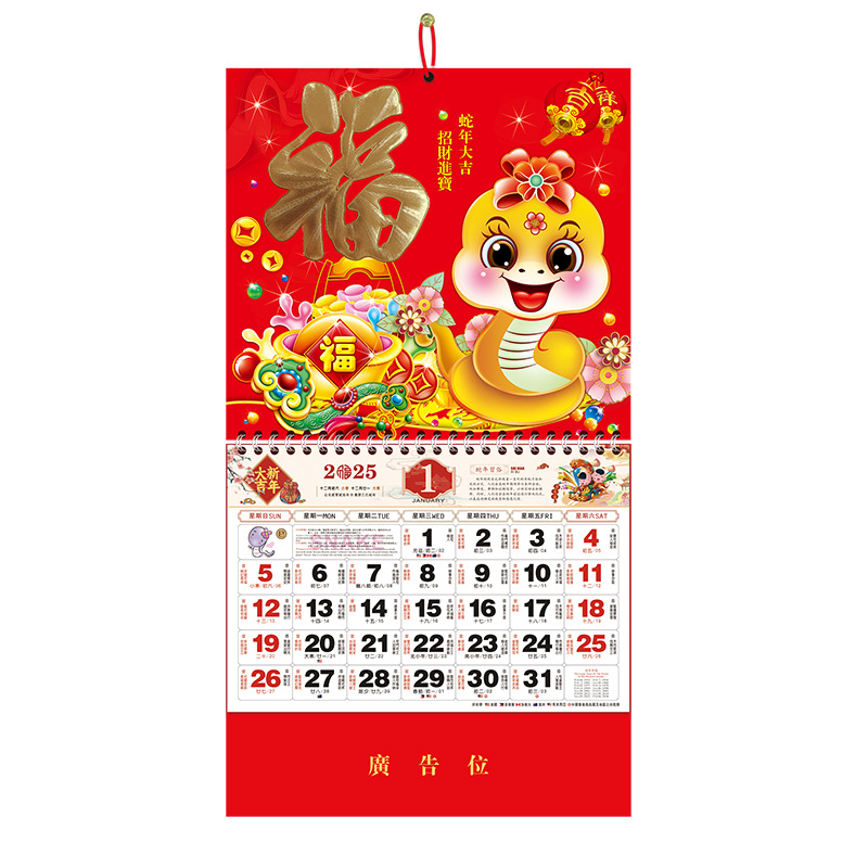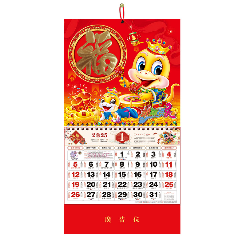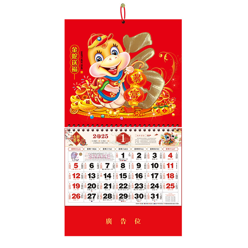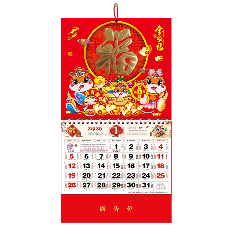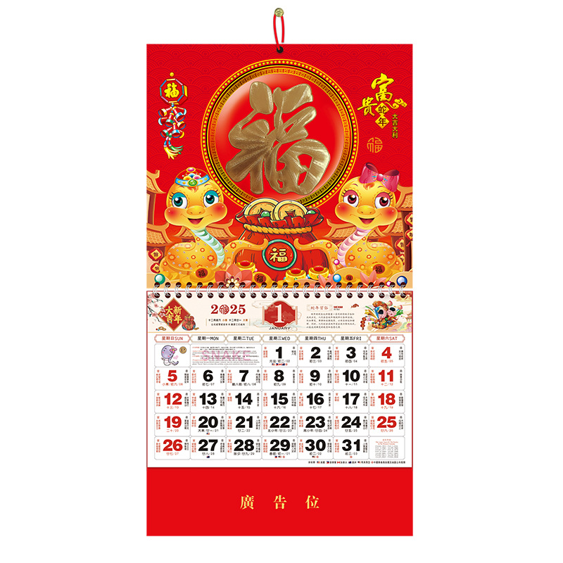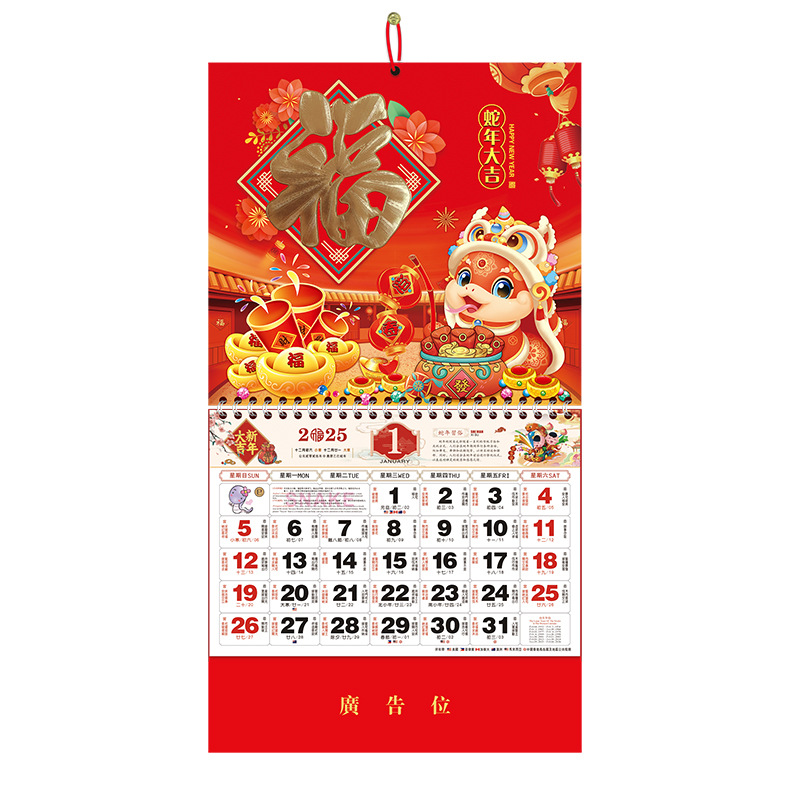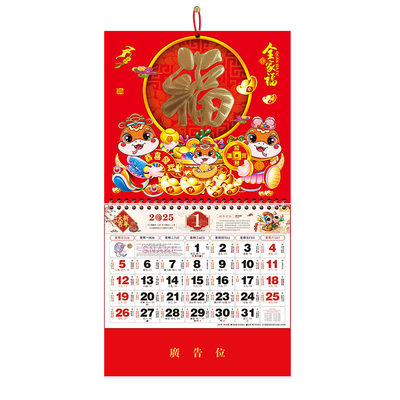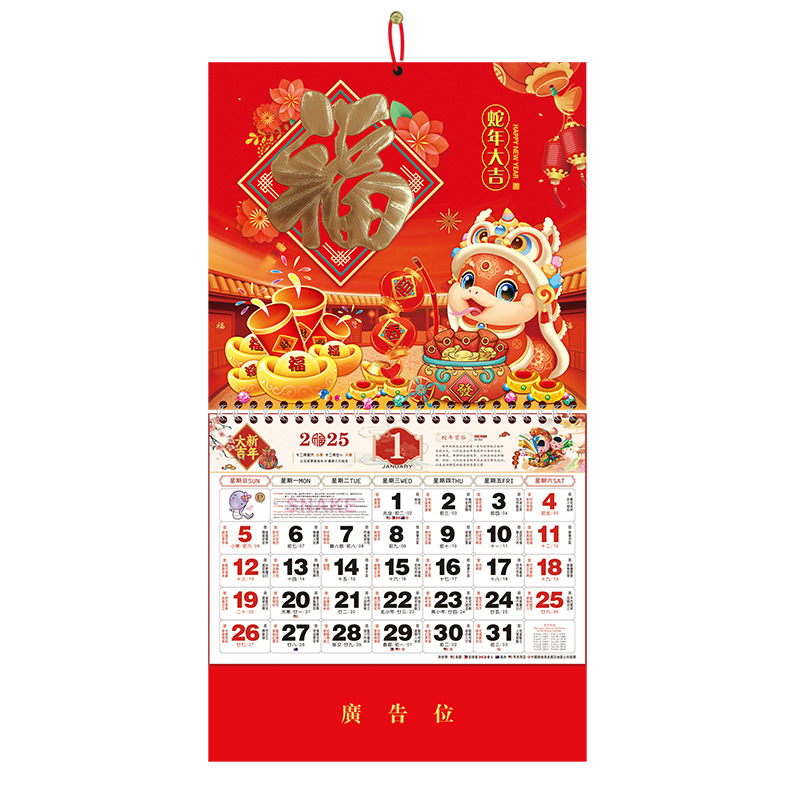 2026挂历马年福字挂历定制正六开中国红通胜福牌订做广告烫金logo