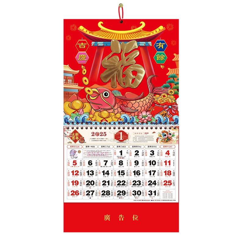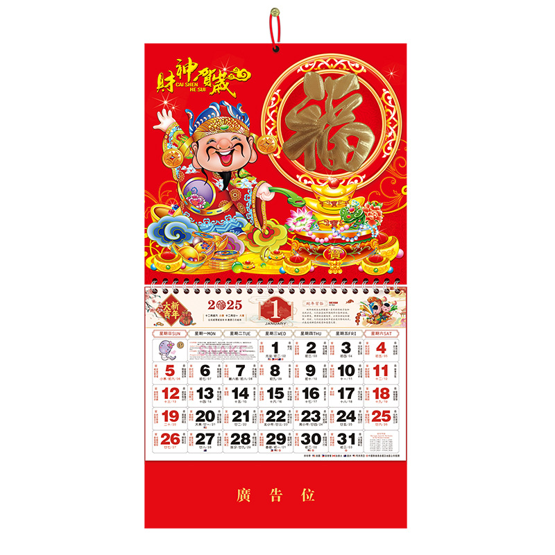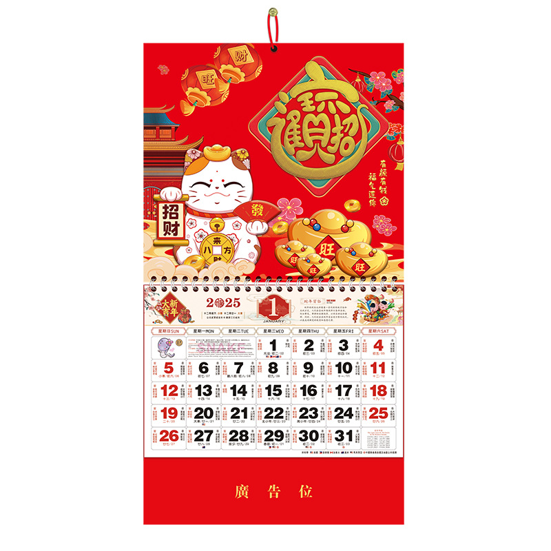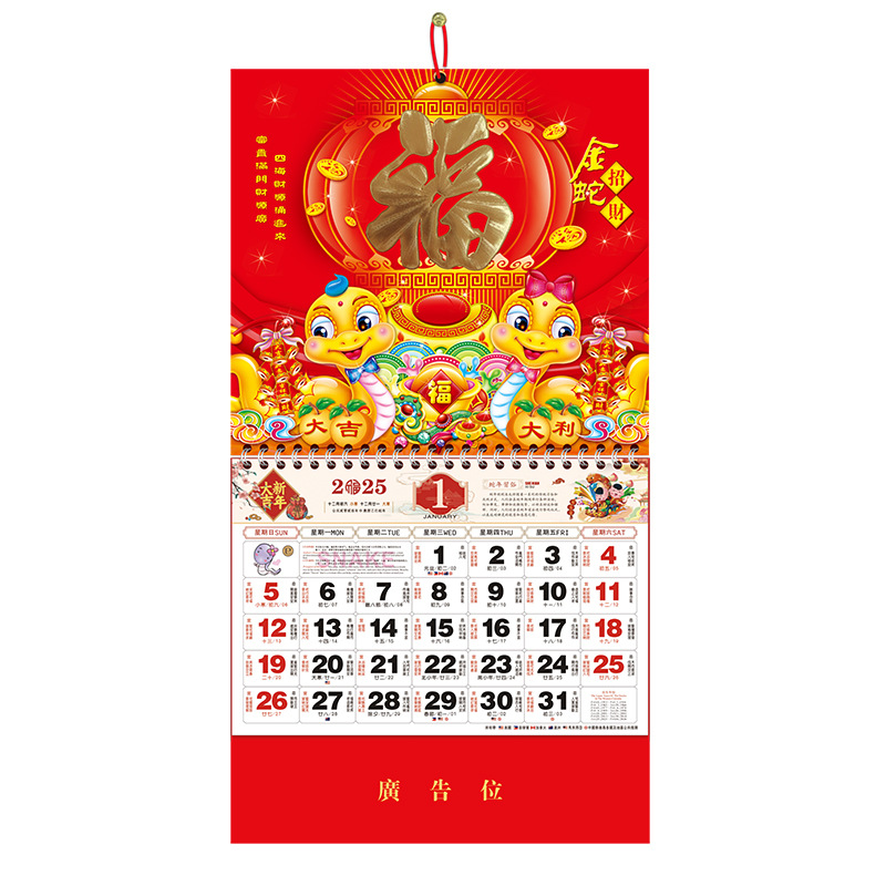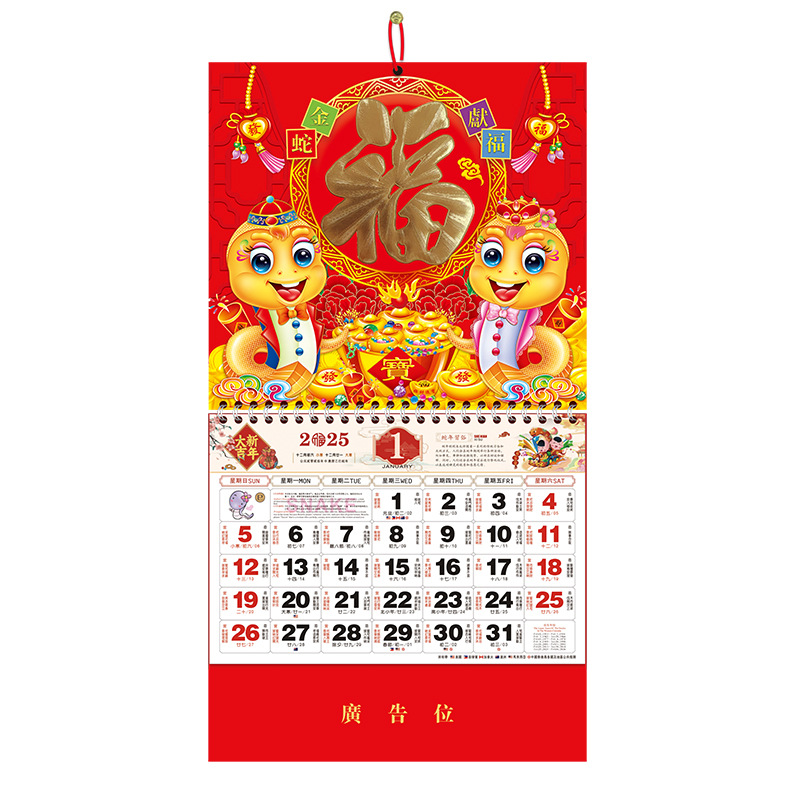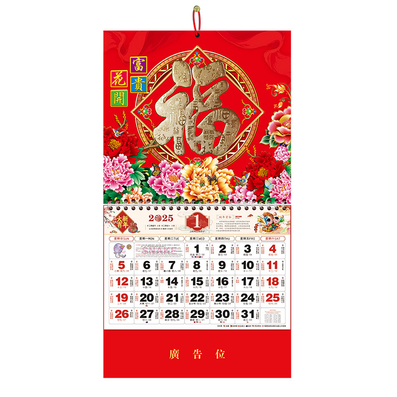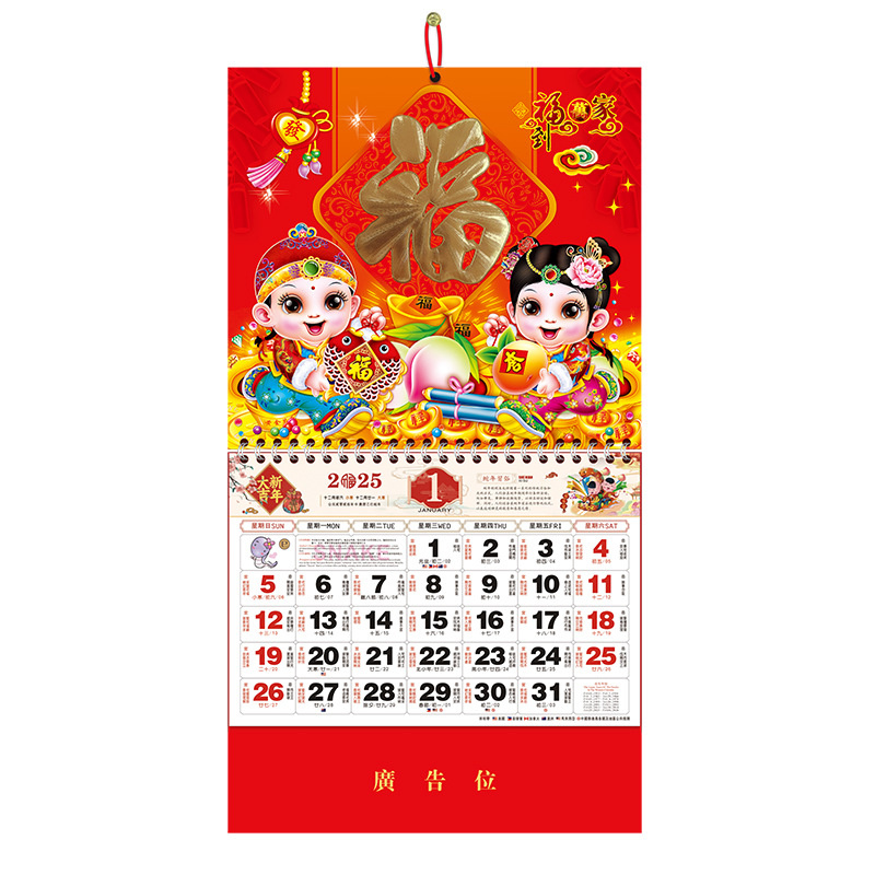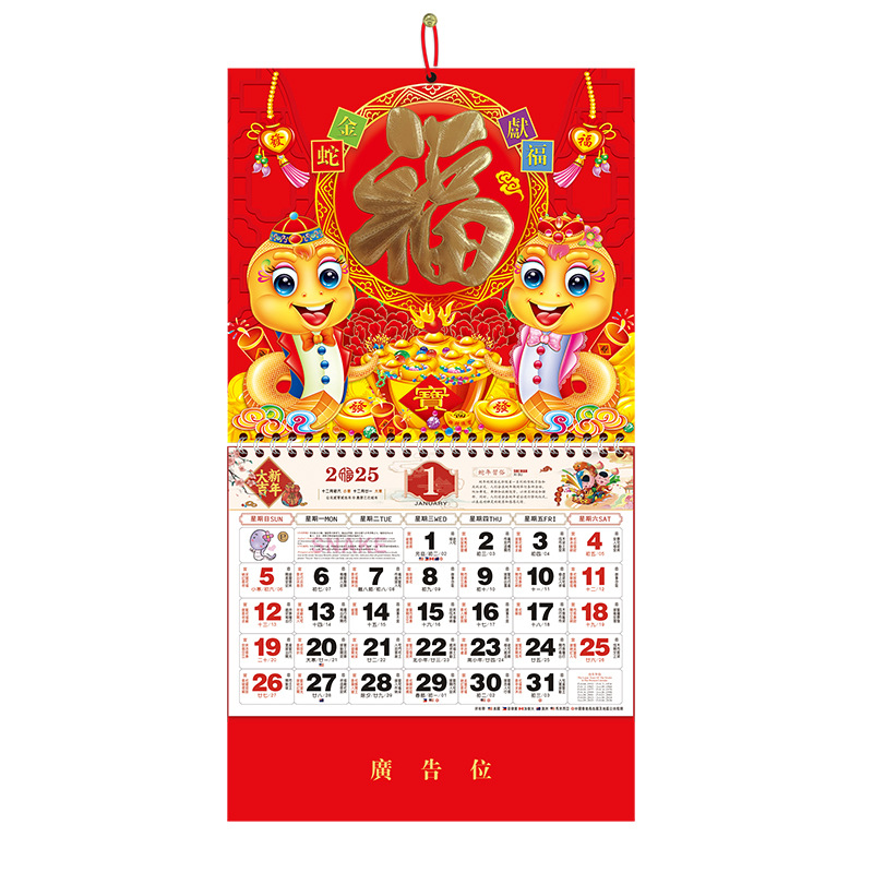 2026挂历马年福字挂历定制正六开中国红通胜福牌订做广告烫金logo