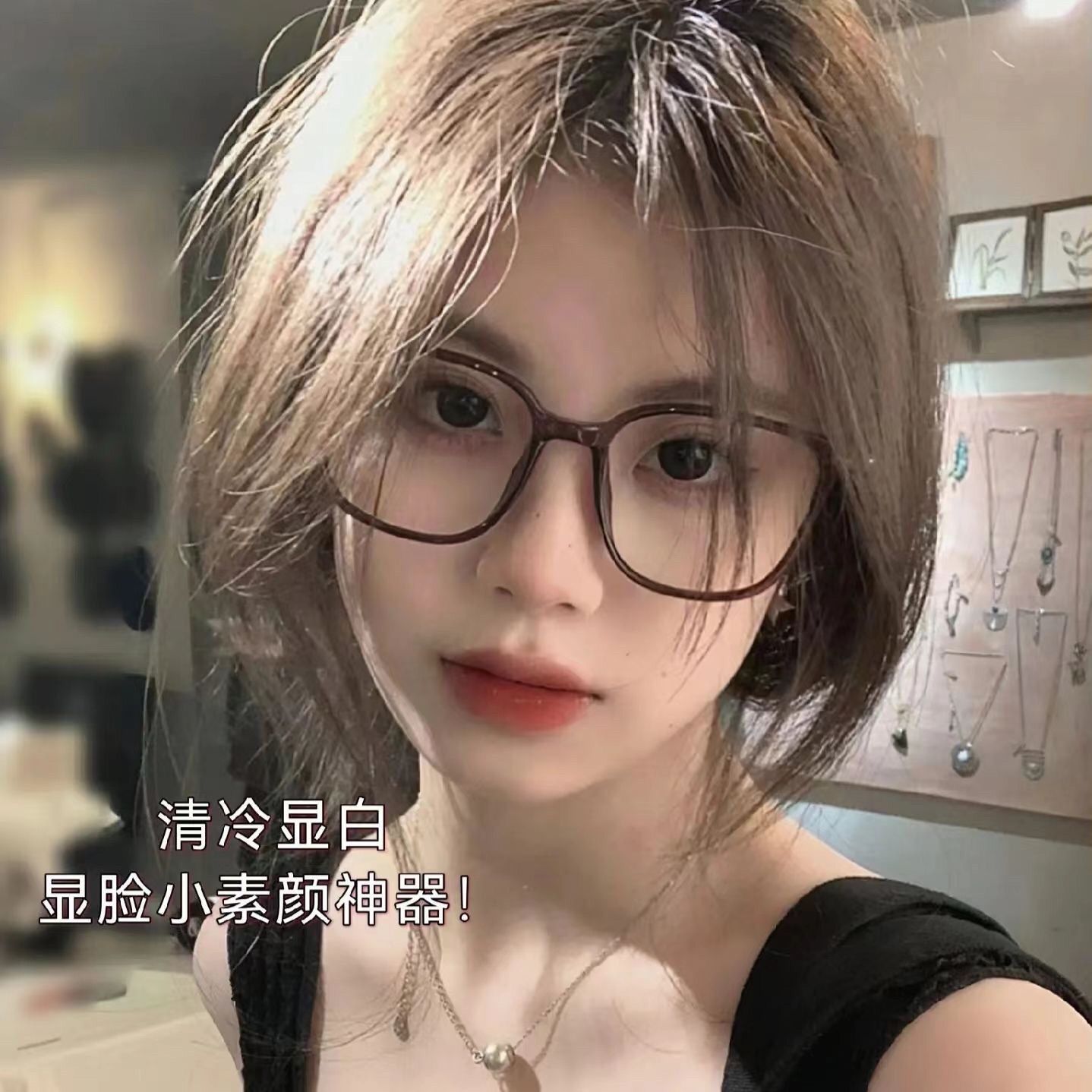 高级显白栗子棕眼镜框调皮可爱学院可配近视女防蓝光超轻可爱圆框