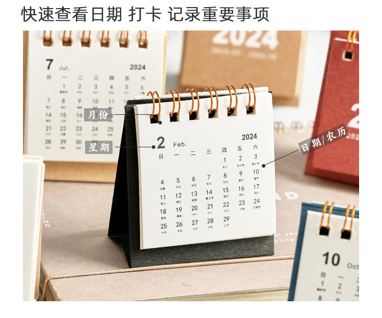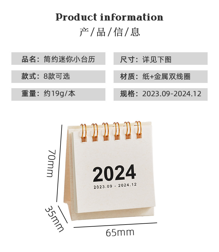 早沫2024年迷你简约小台历 ins创意口袋便携日历打卡计划桌面摆件
