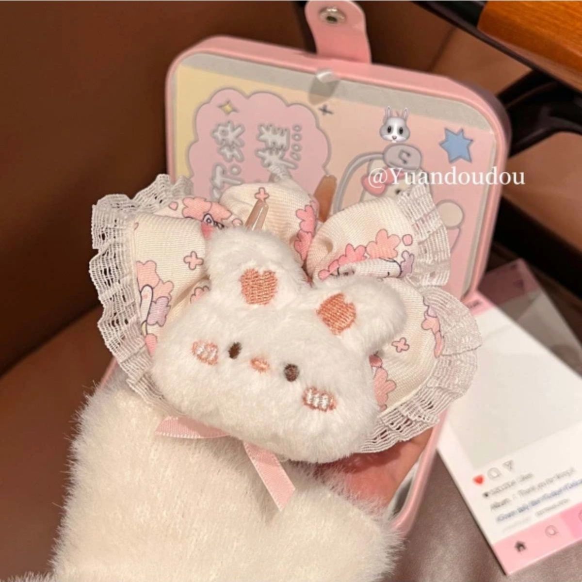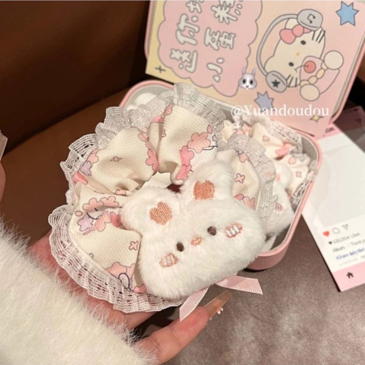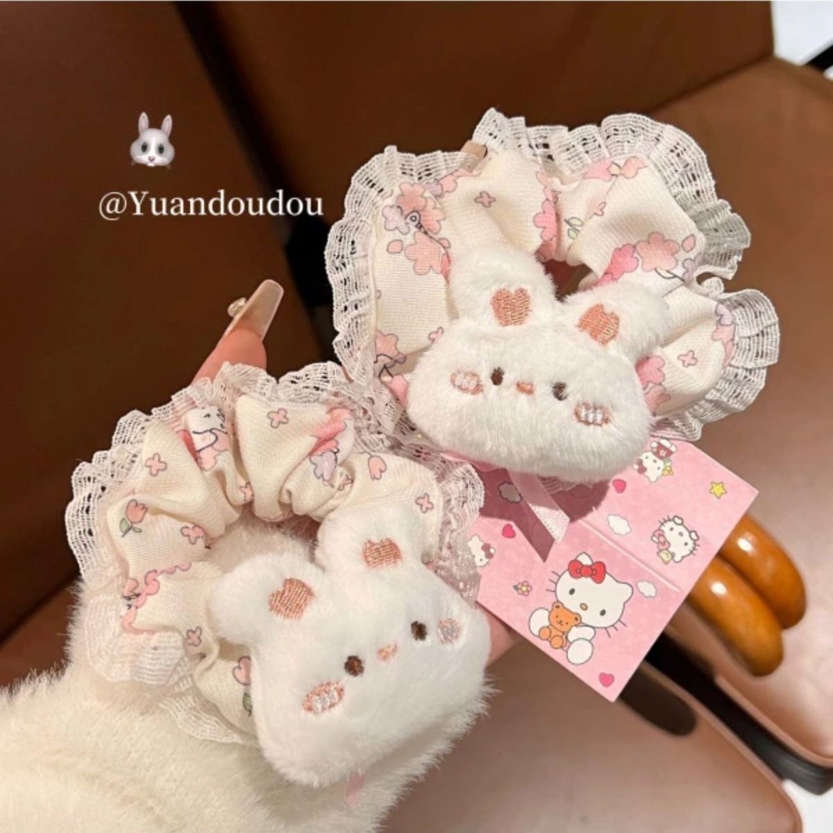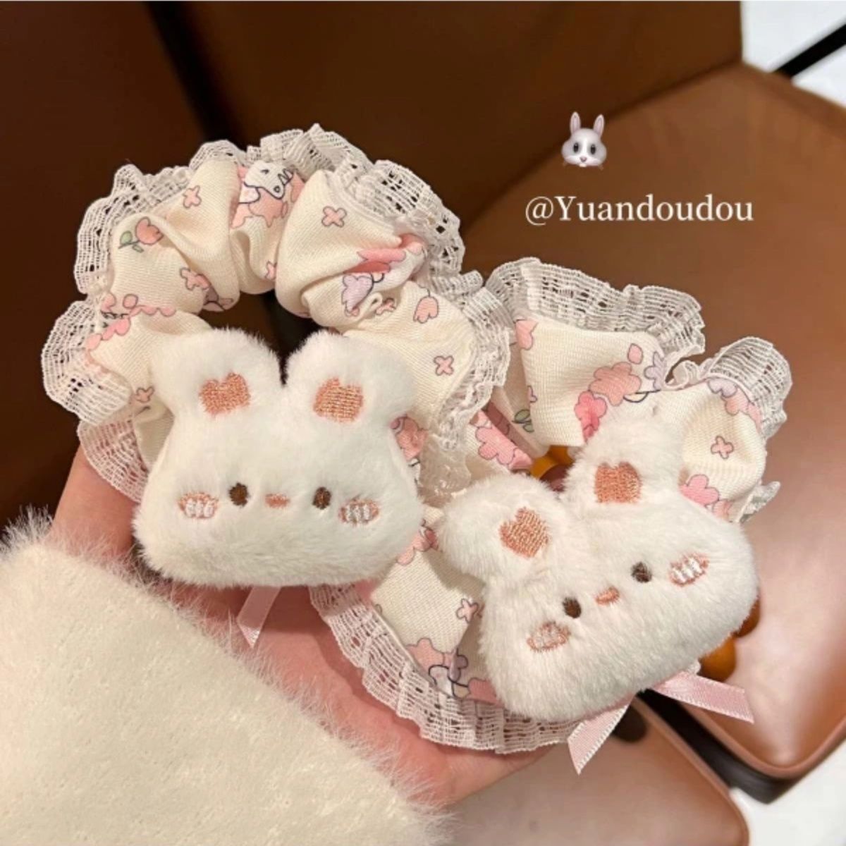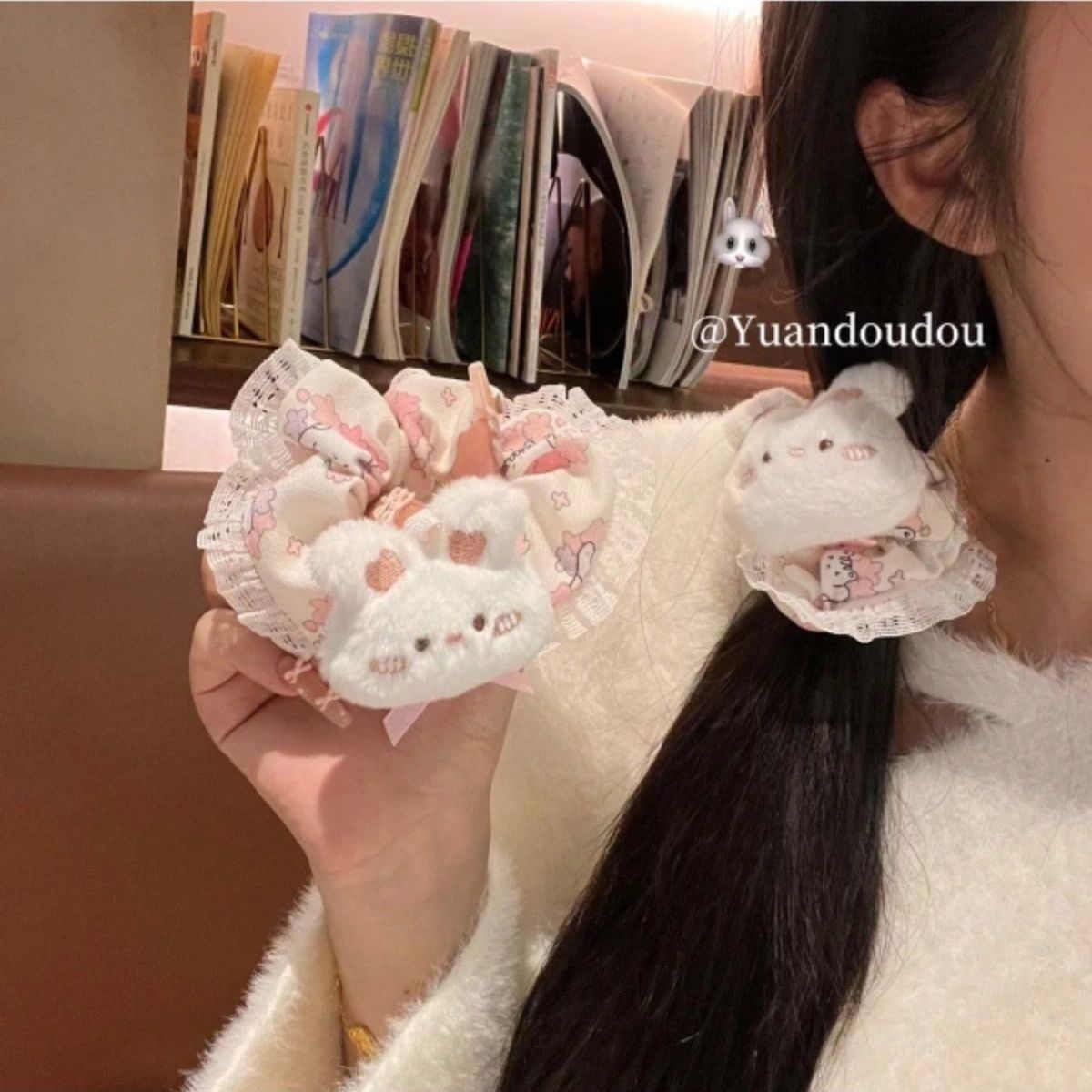 可爱软嫩小兔发圈发绳蕾丝粉色少女卡通头绳大肠马尾发饰头饰新款