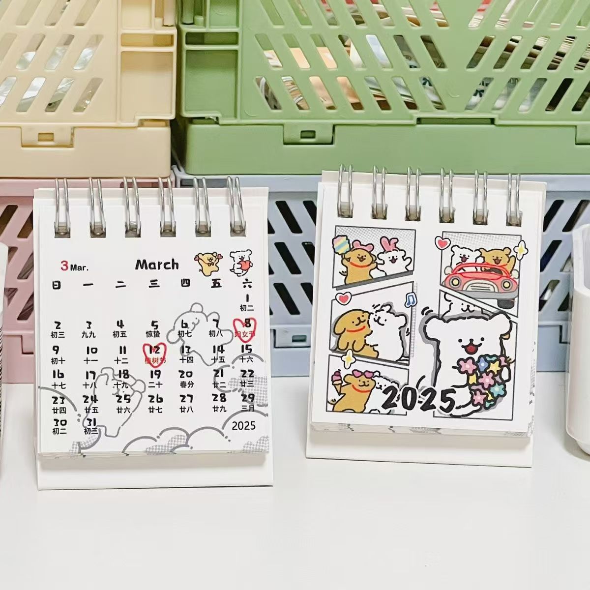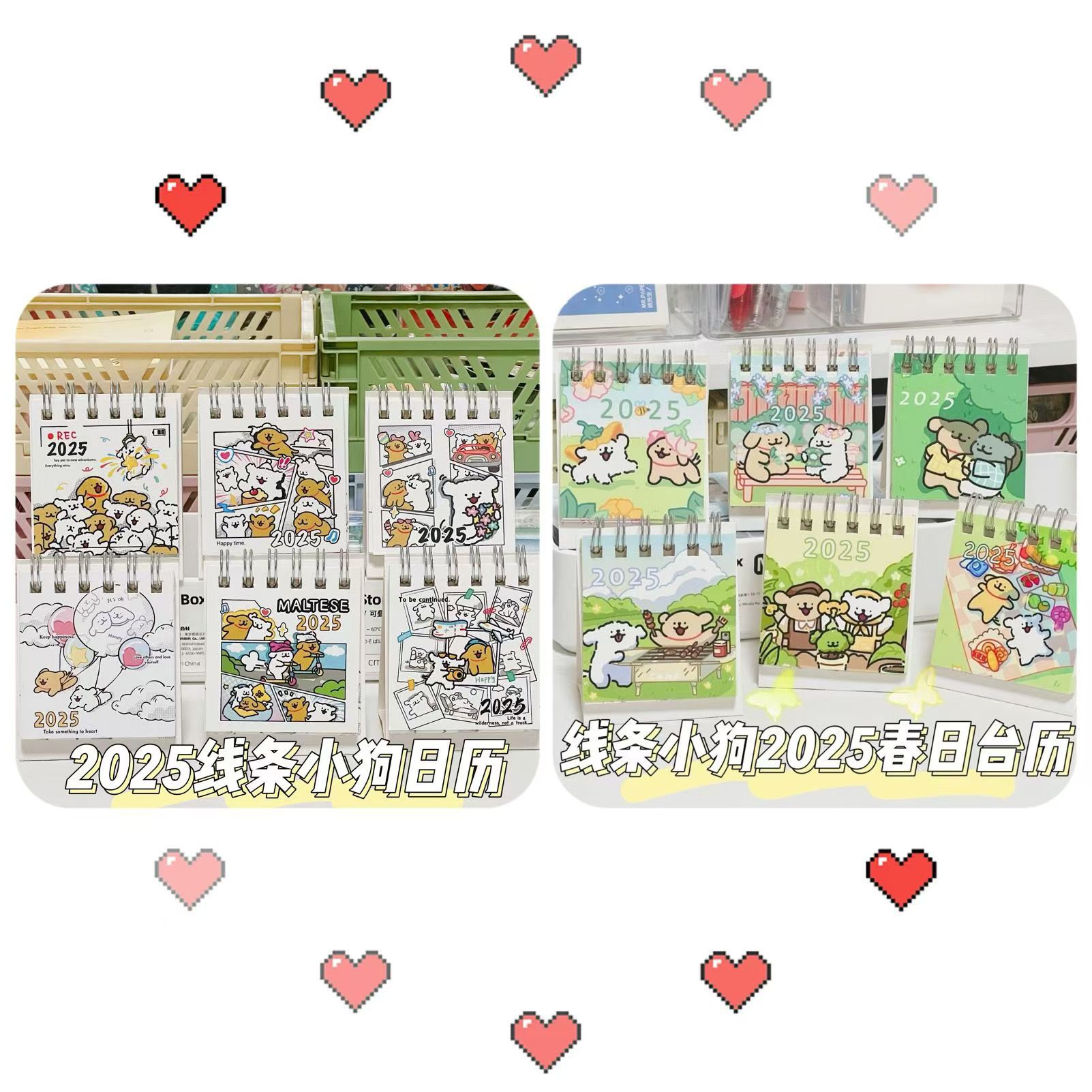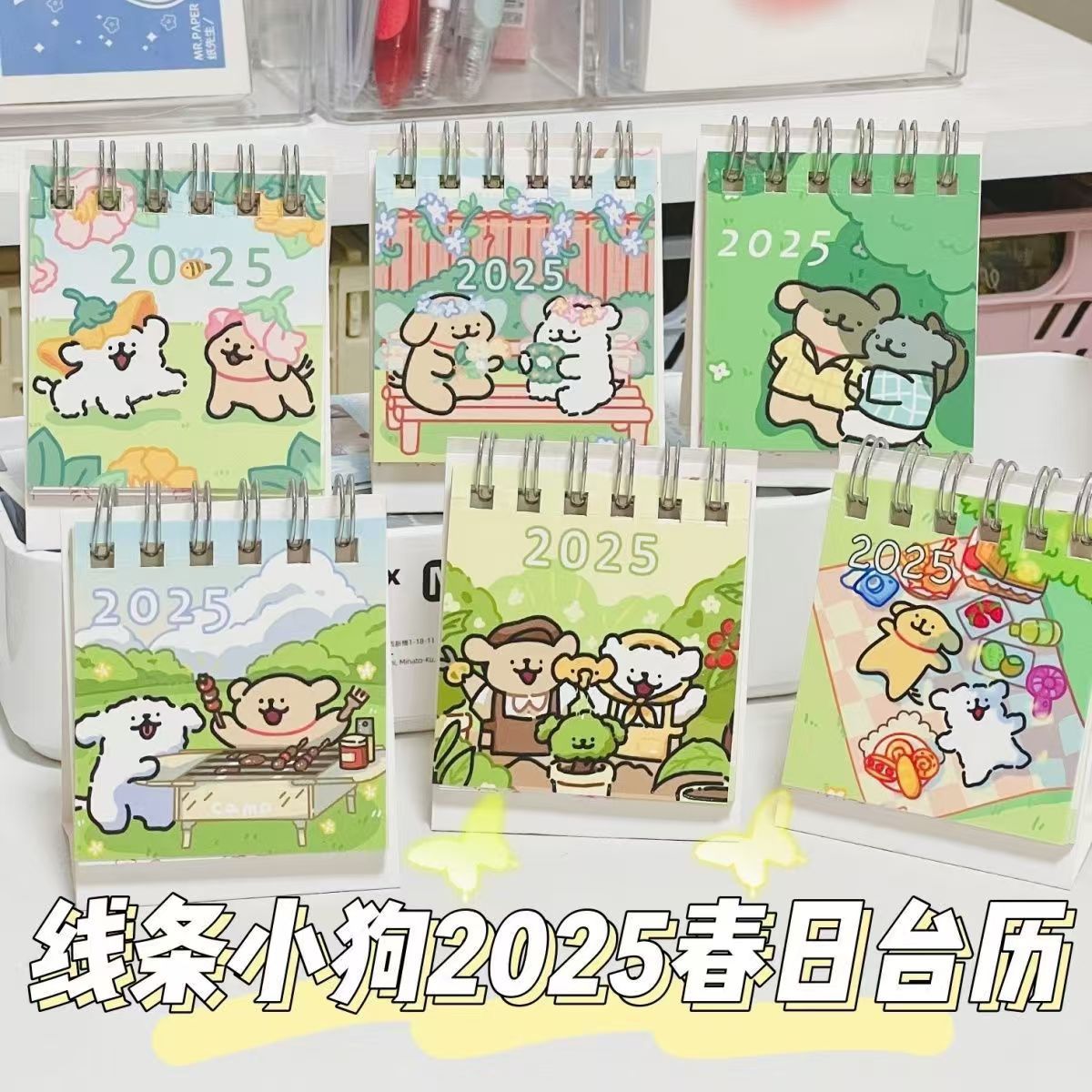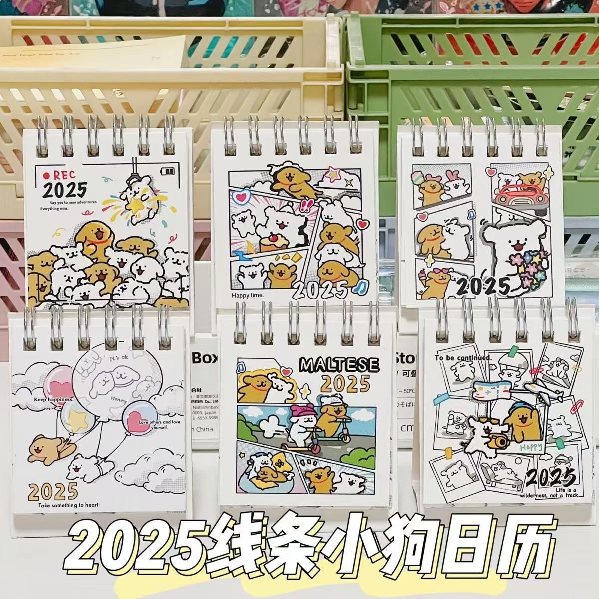 线条小狗2025年台历ins风高颜值少女心学生迷你小台历桌面摆饰品