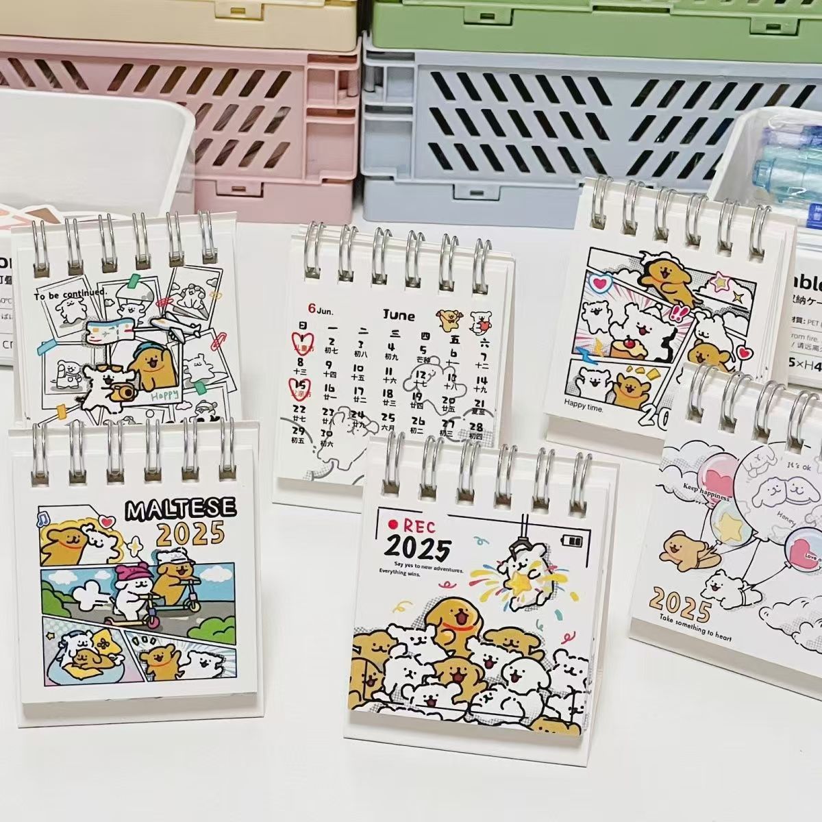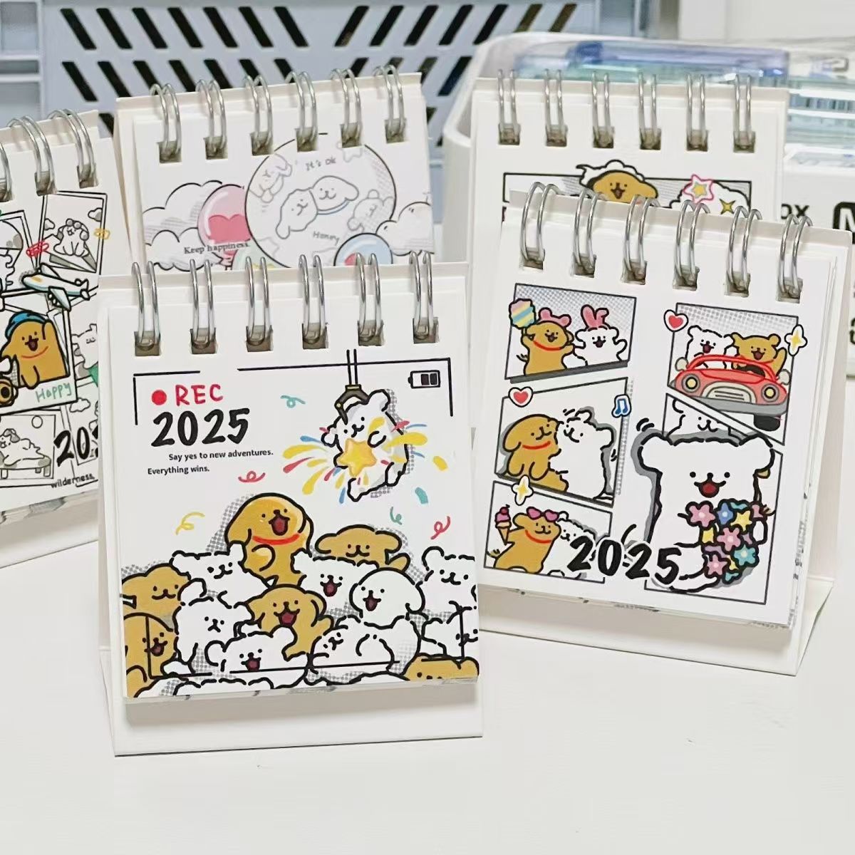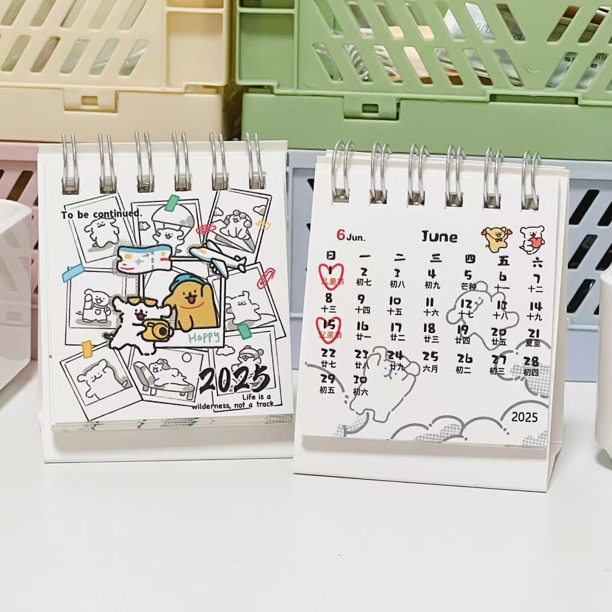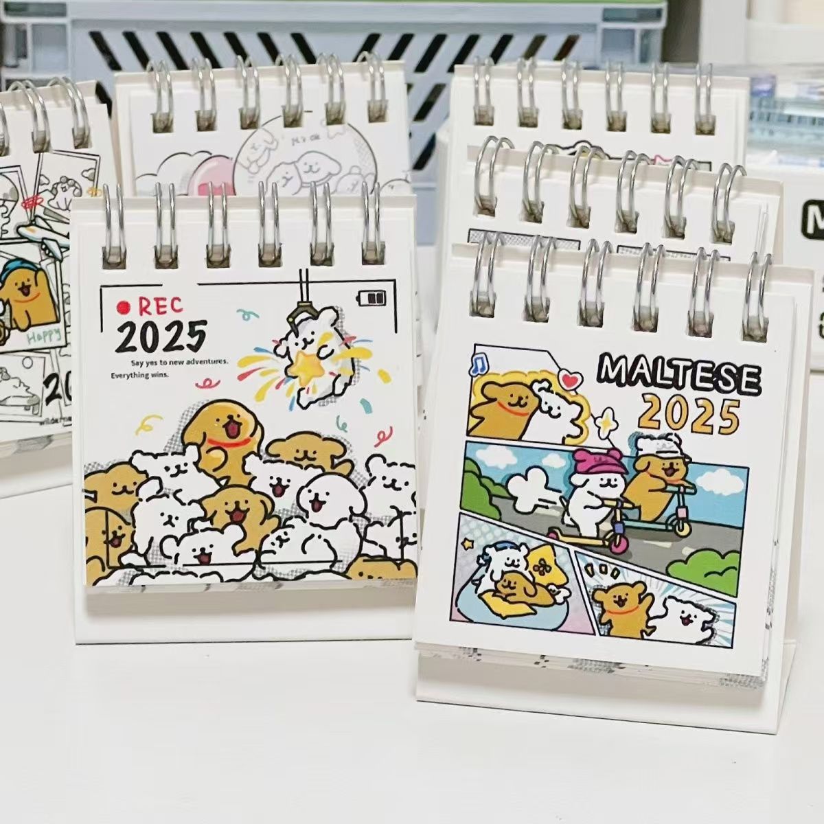 线条小狗2025年台历ins风高颜值少女心学生迷你小台历桌面摆饰品