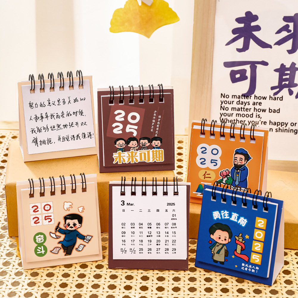 2025年励志新青年台历 卡通名人桌面打卡摆件小台历可爱迷你日历