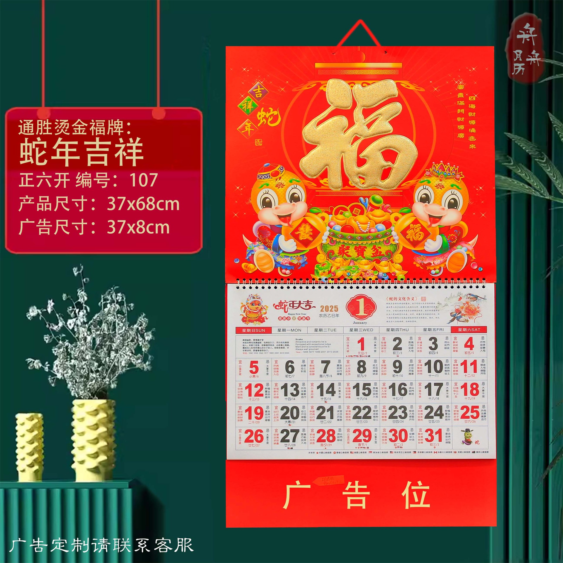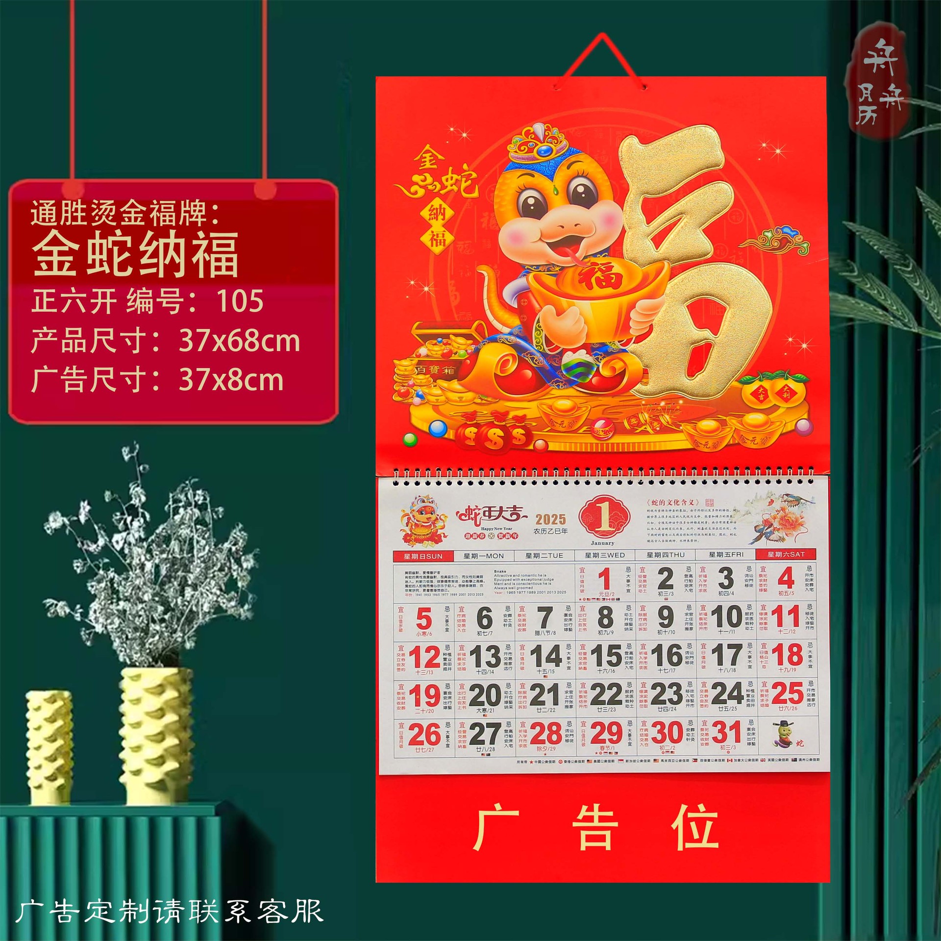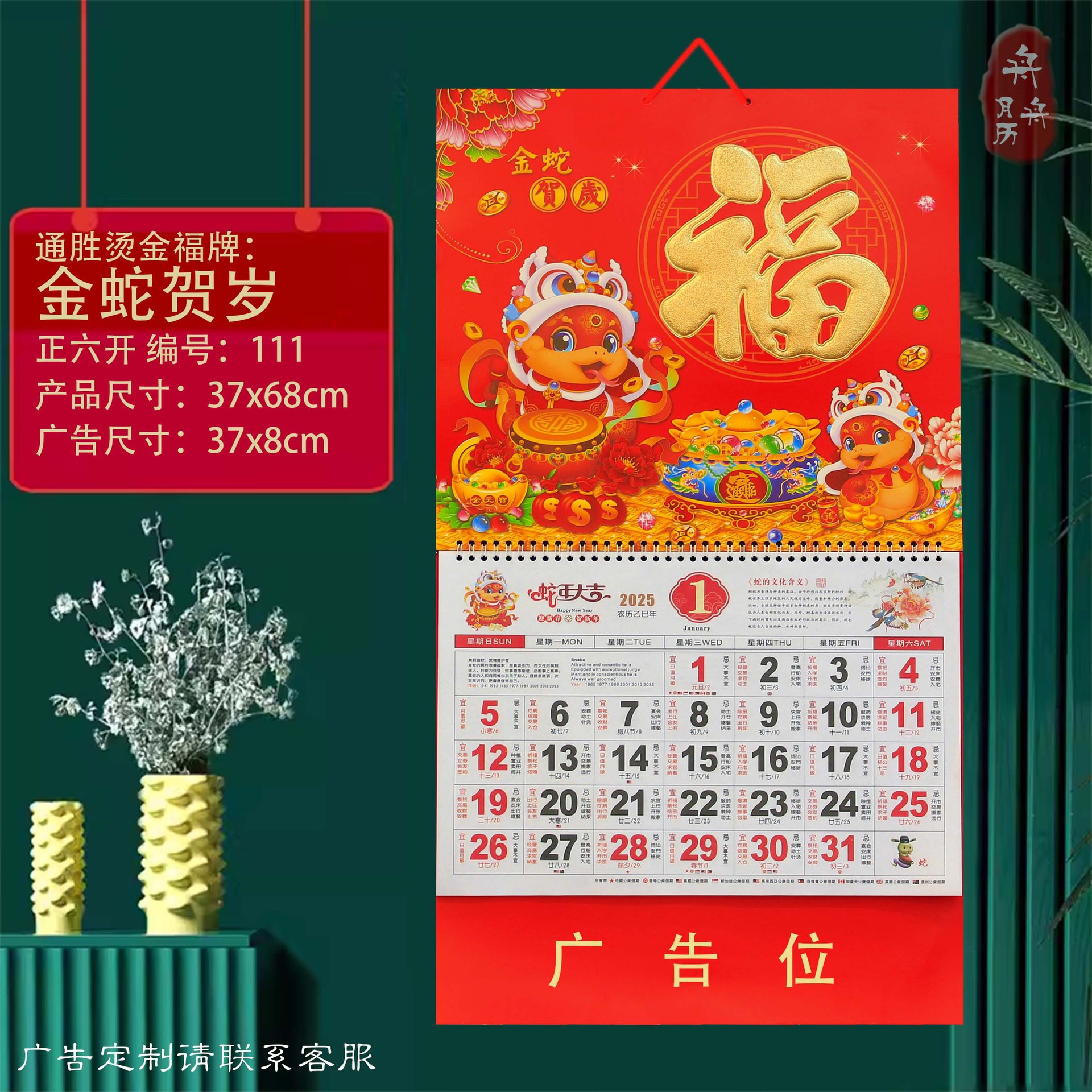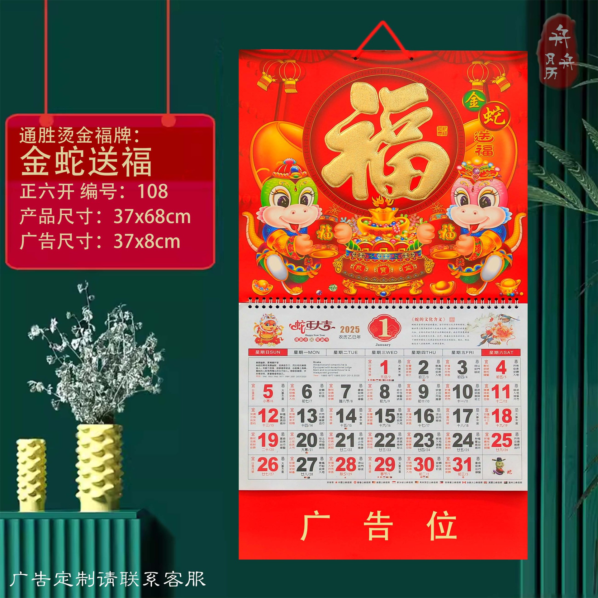2025年日历蛇年广告福字挂历定购手撕金箔月历吊牌批发厂家直供
