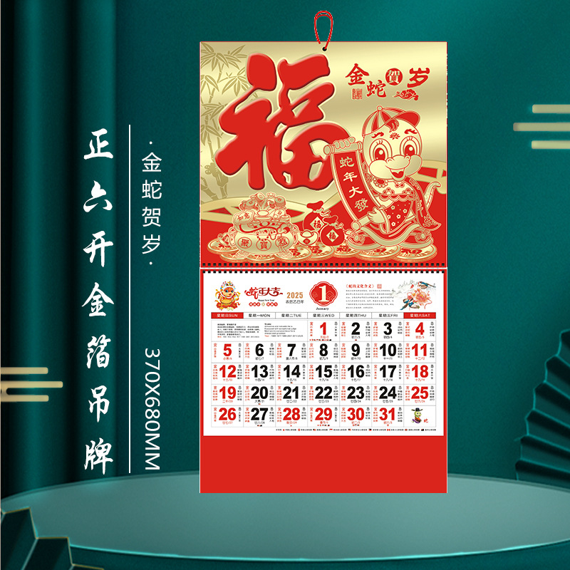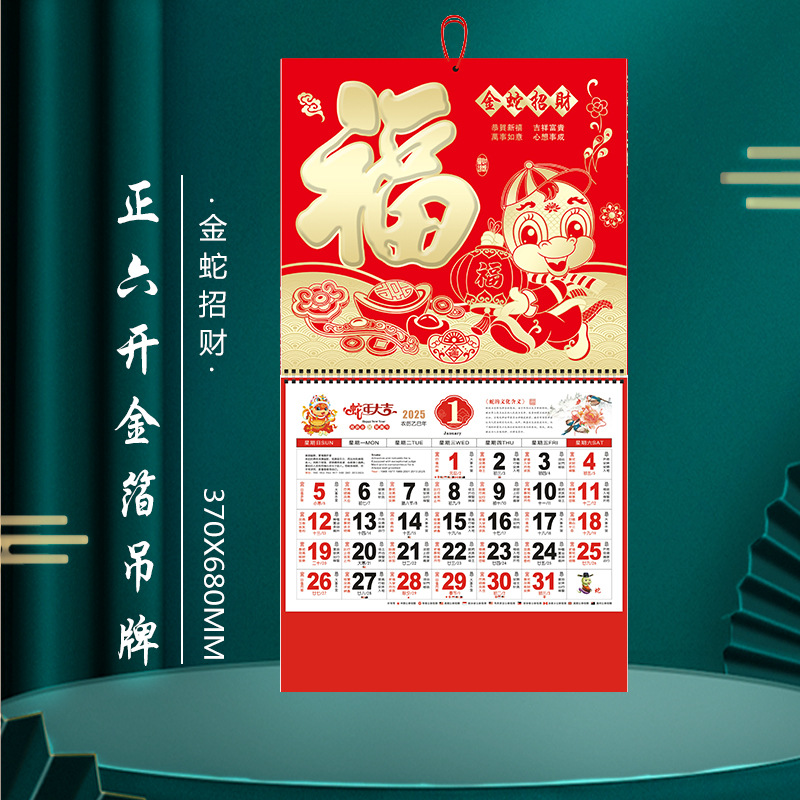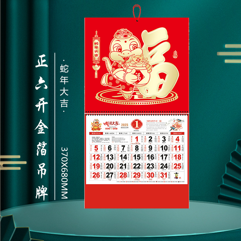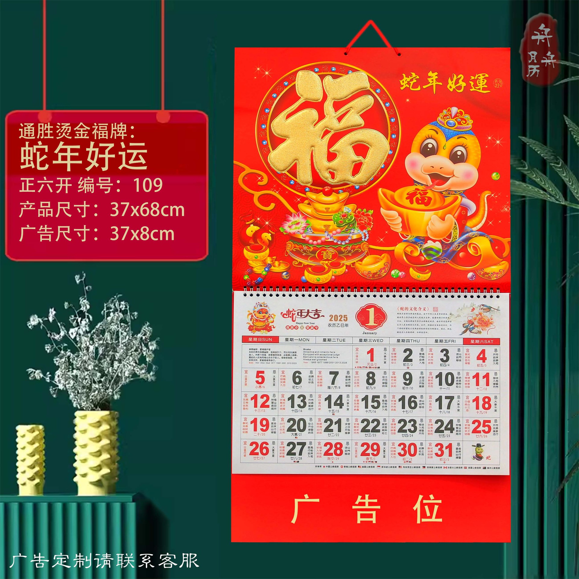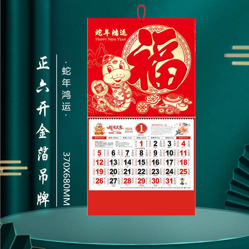 2025年日历蛇年广告福字挂历定购手撕金箔月历吊牌批发厂家直供