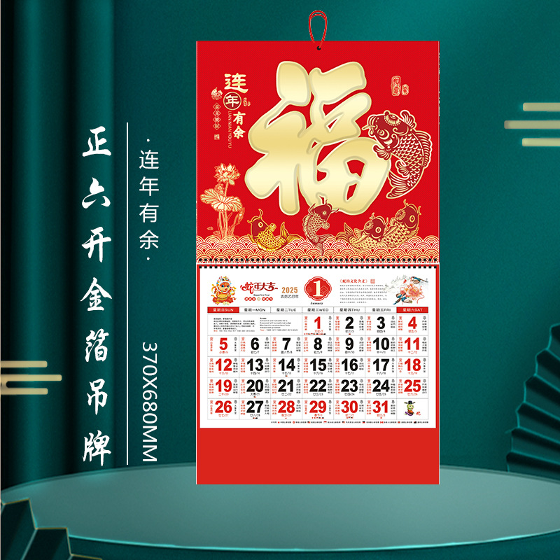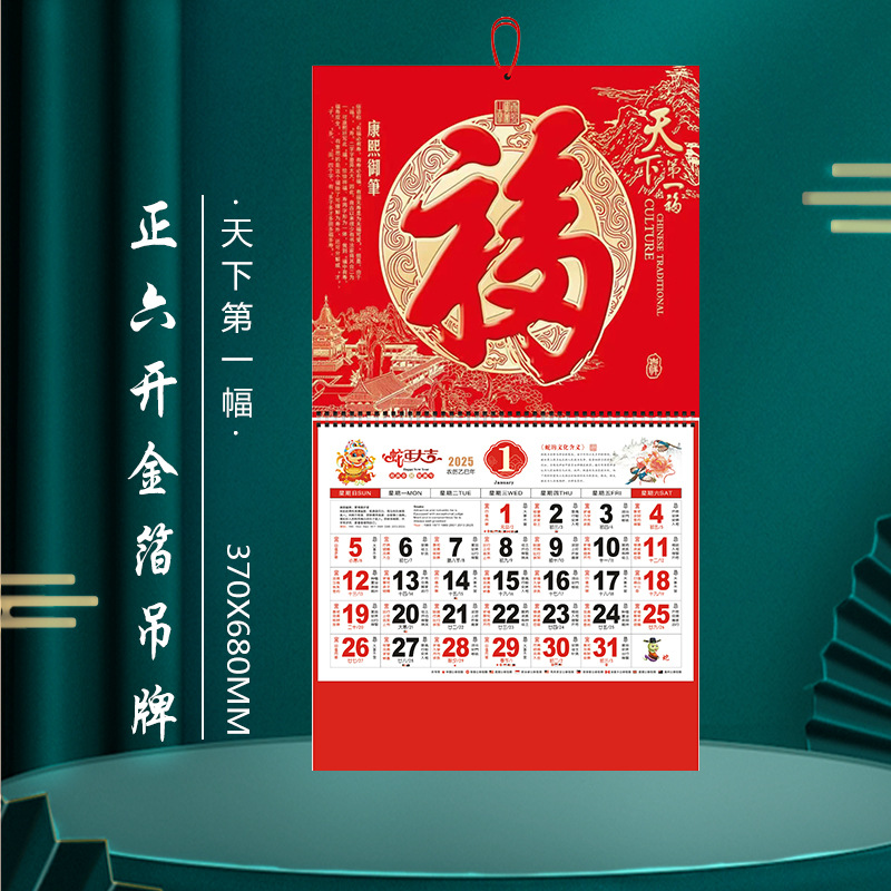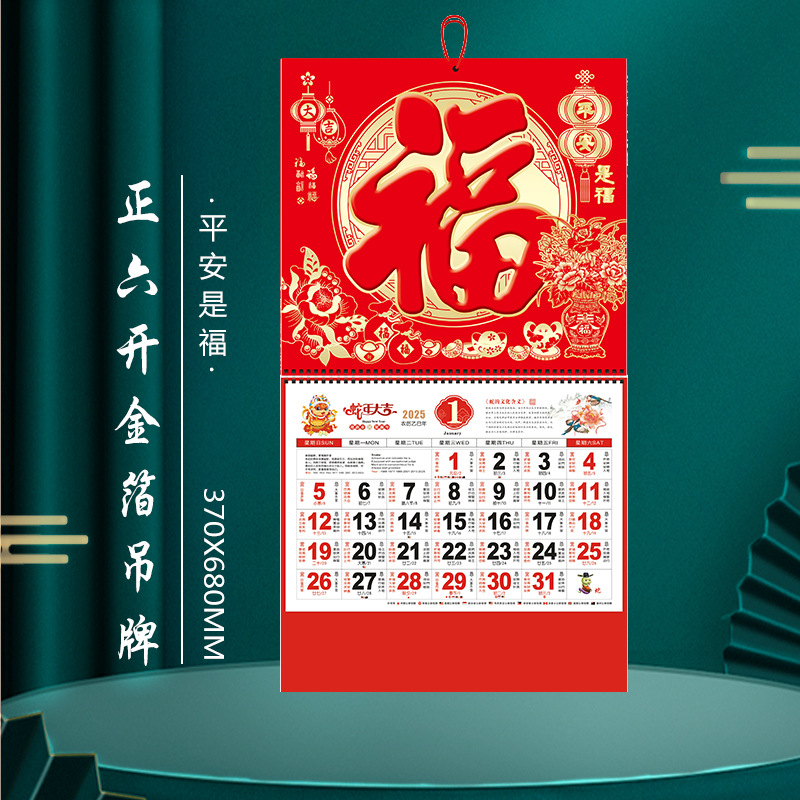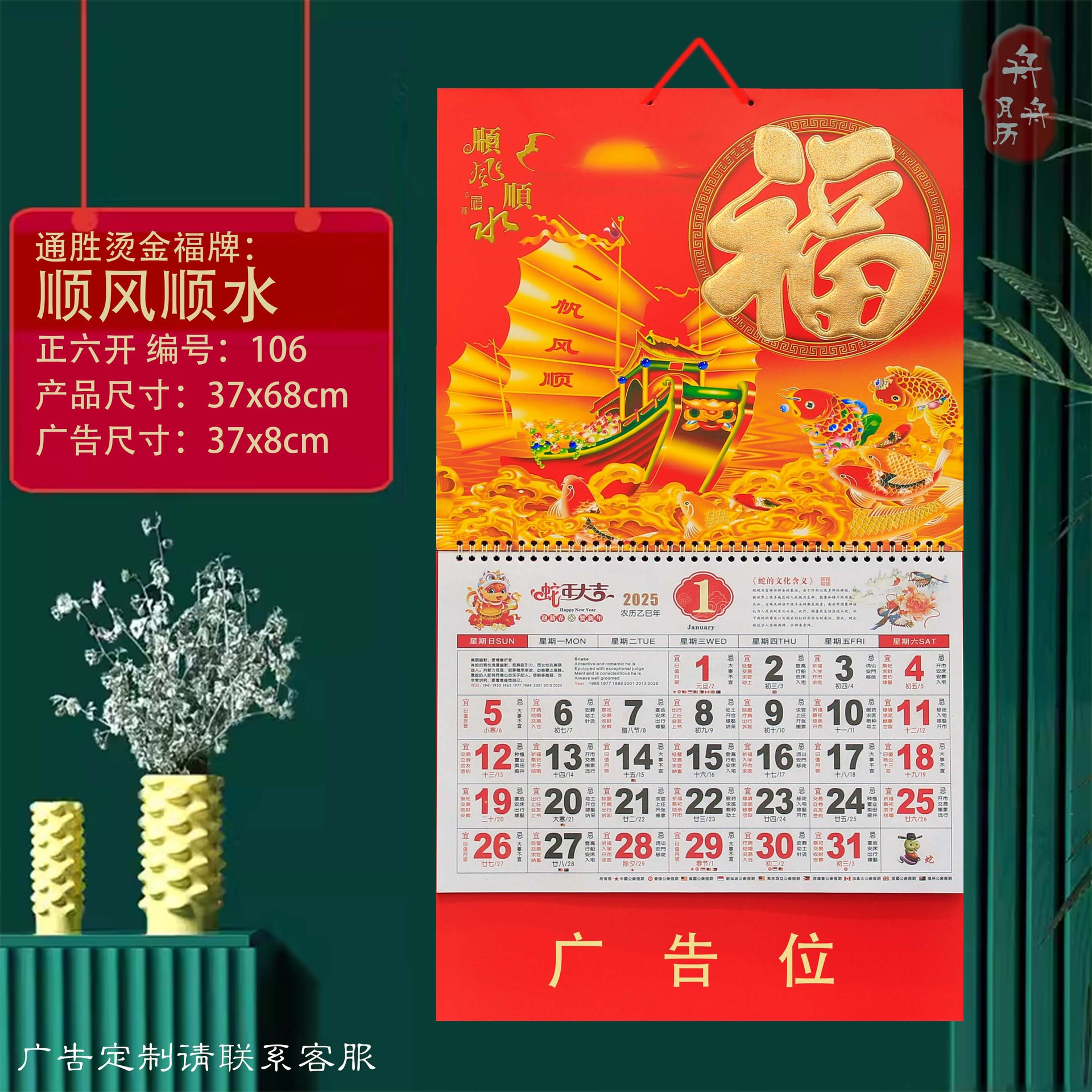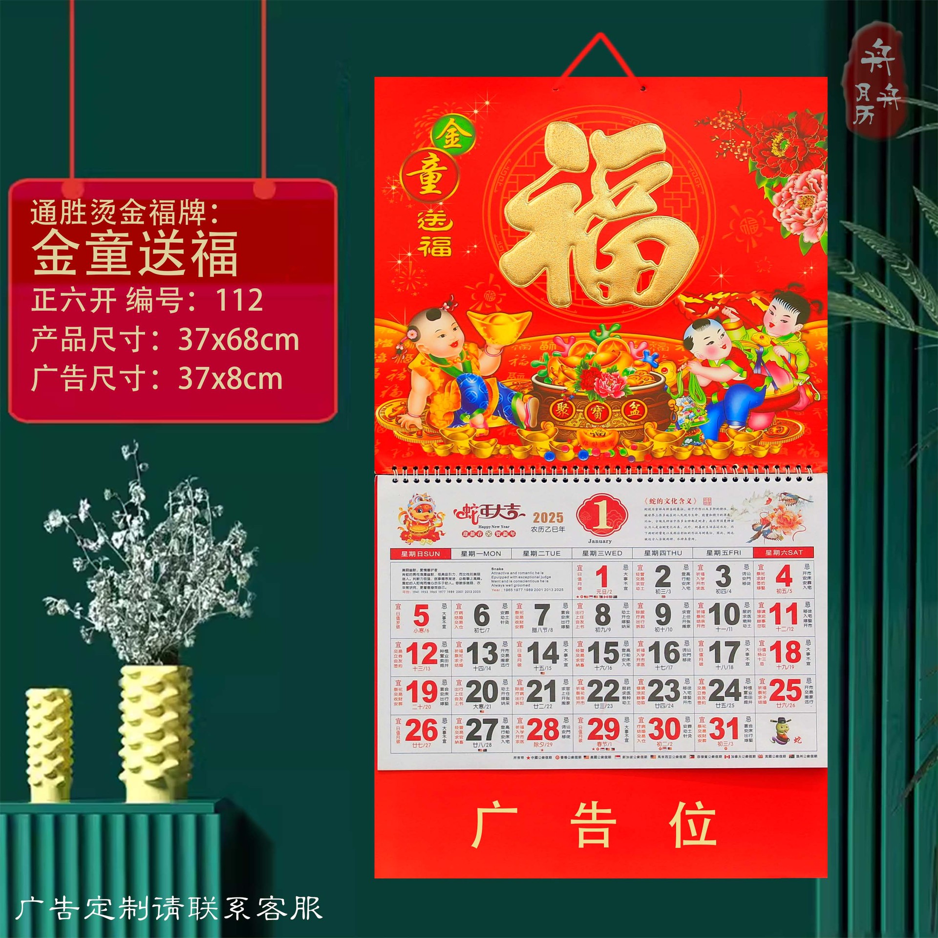 2025年日历蛇年广告福字挂历定购手撕金箔月历吊牌批发厂家直供