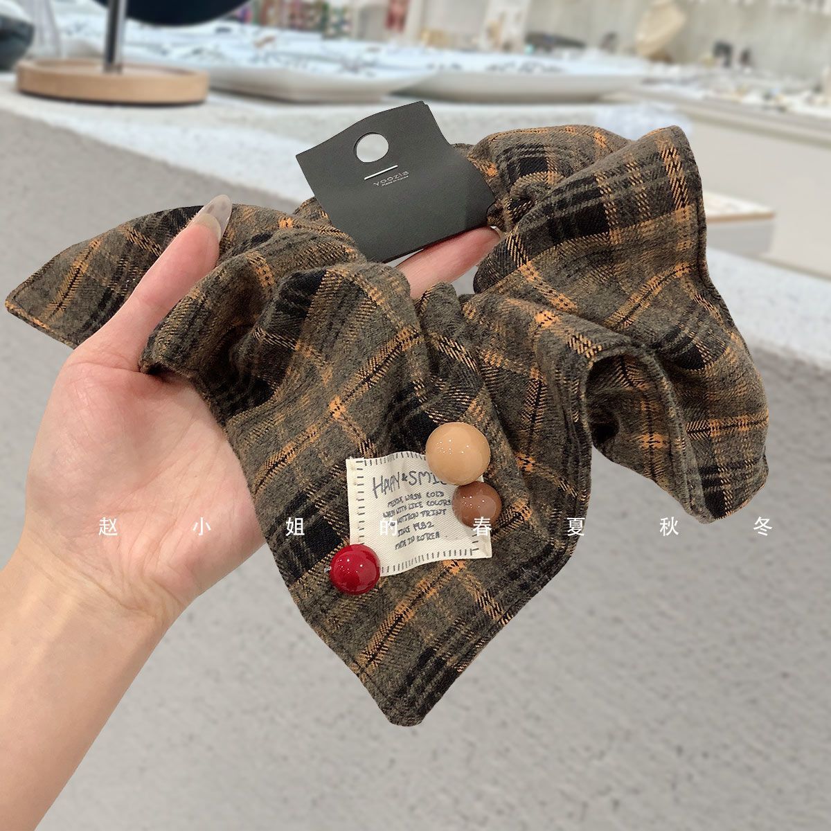韩国发饰ins风头饰秋冬新款饰品头绳方巾发绳可爱格子大肠发圈