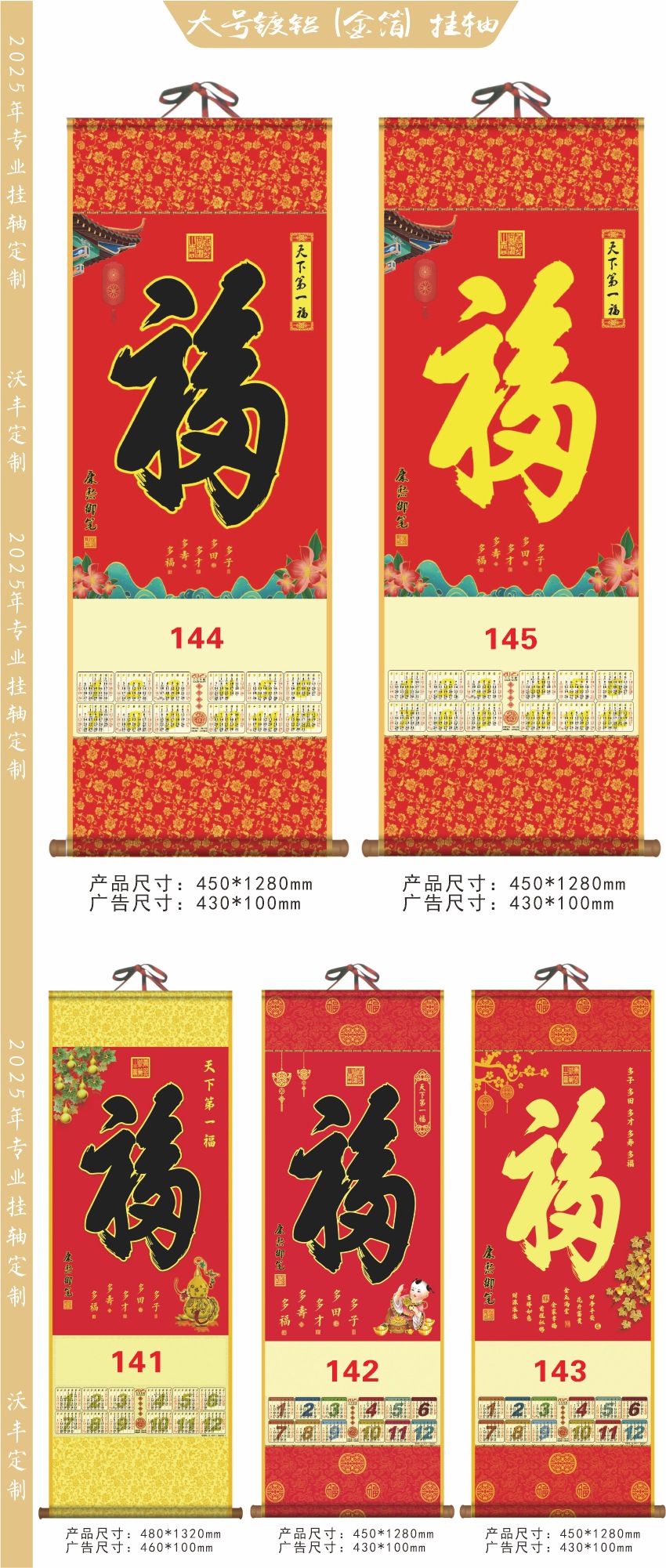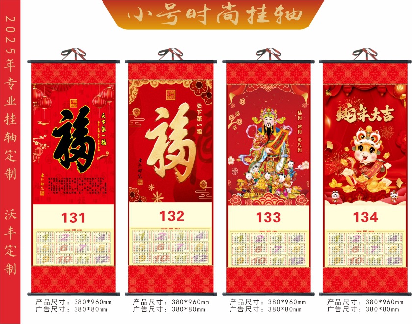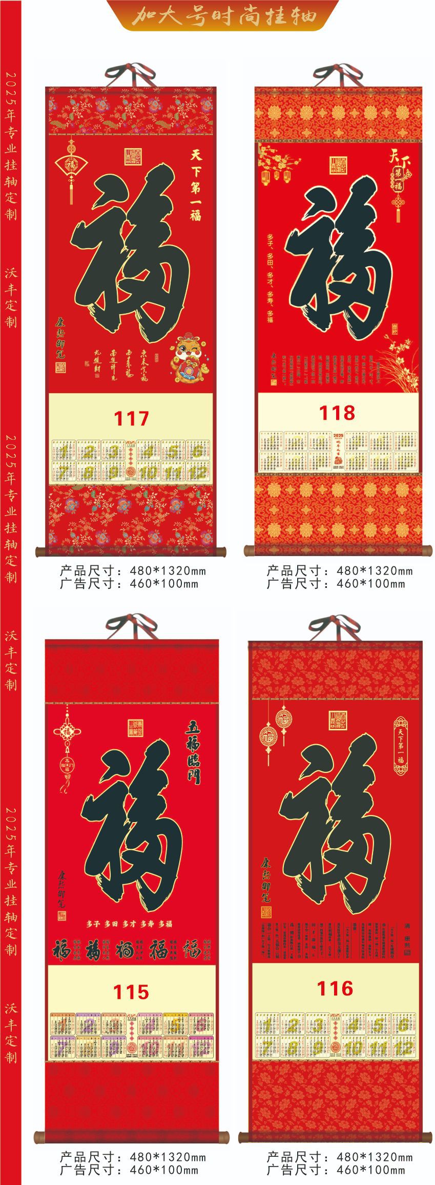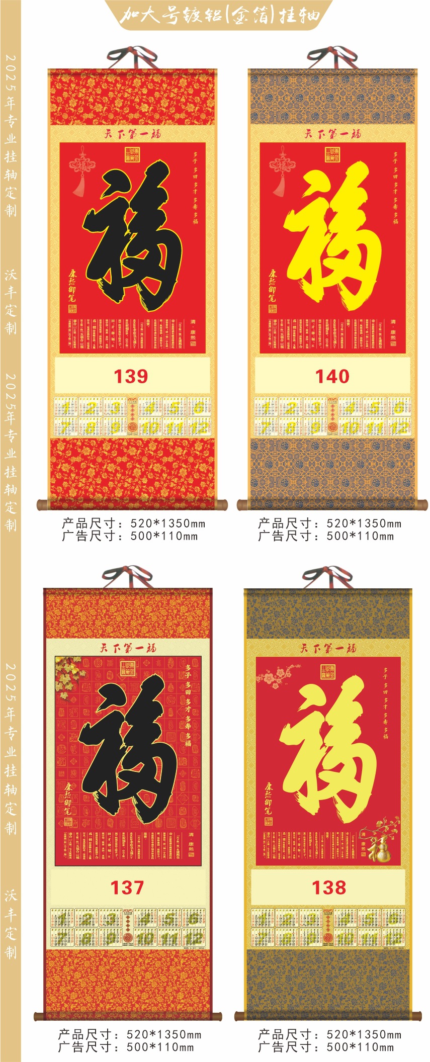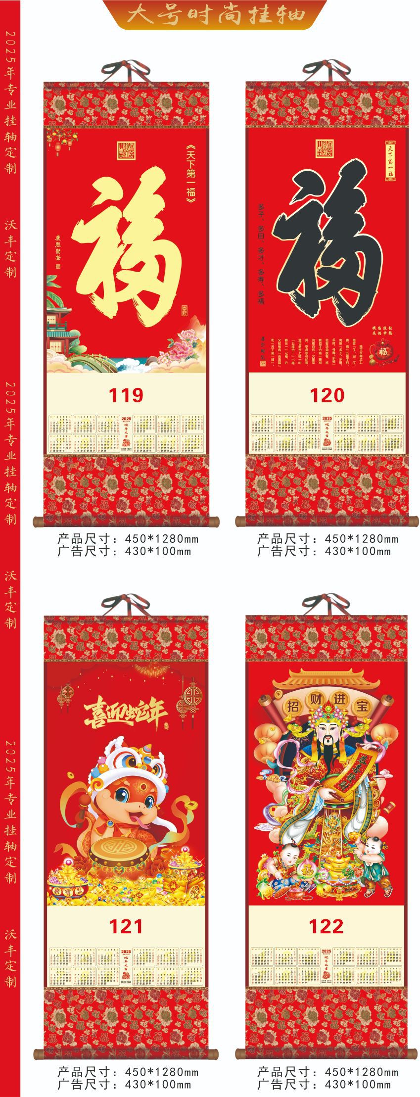 蛇年大号无纺布挂轴 2025年单张福字保险卷轴挂历企业专版广告