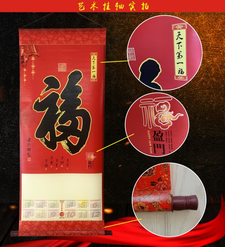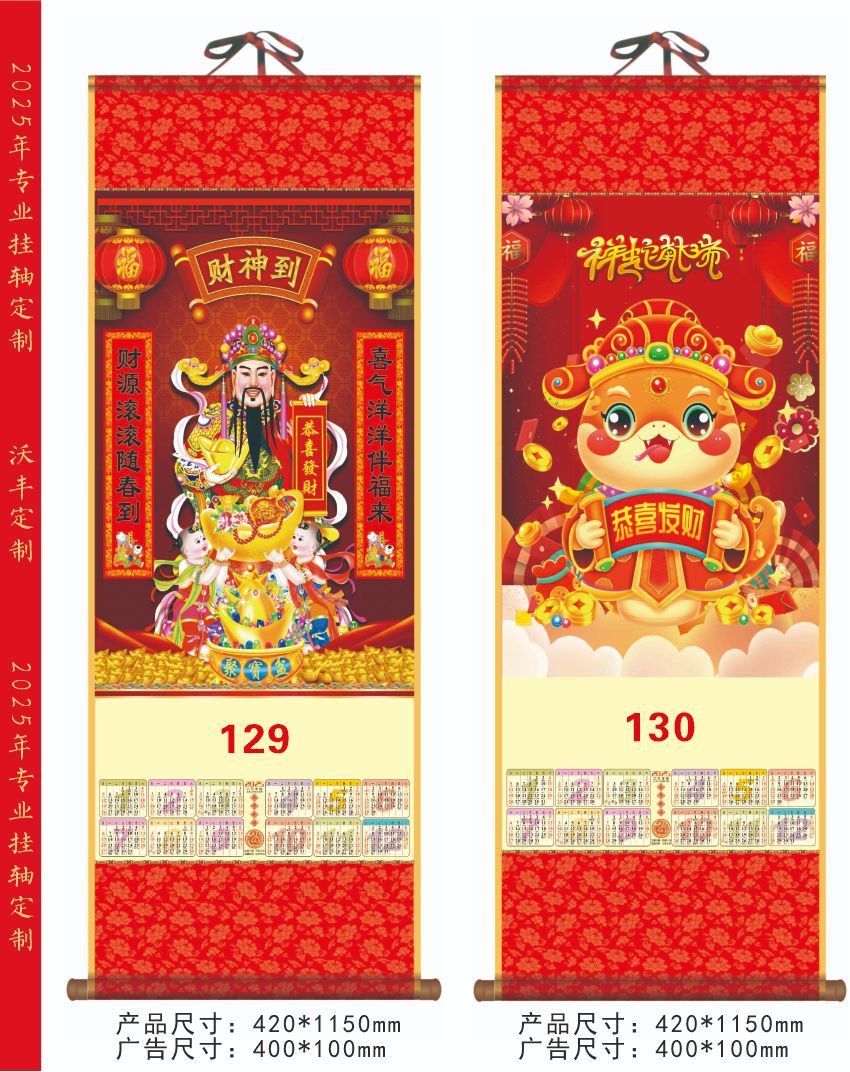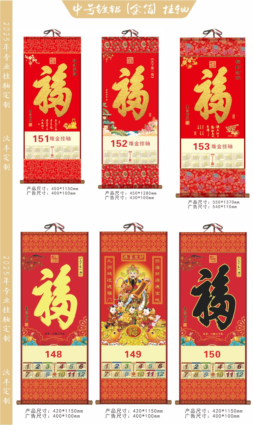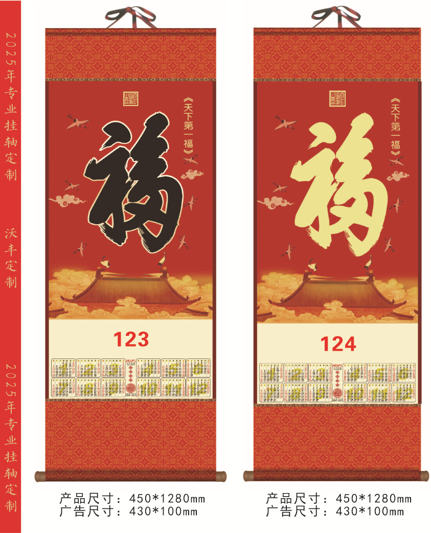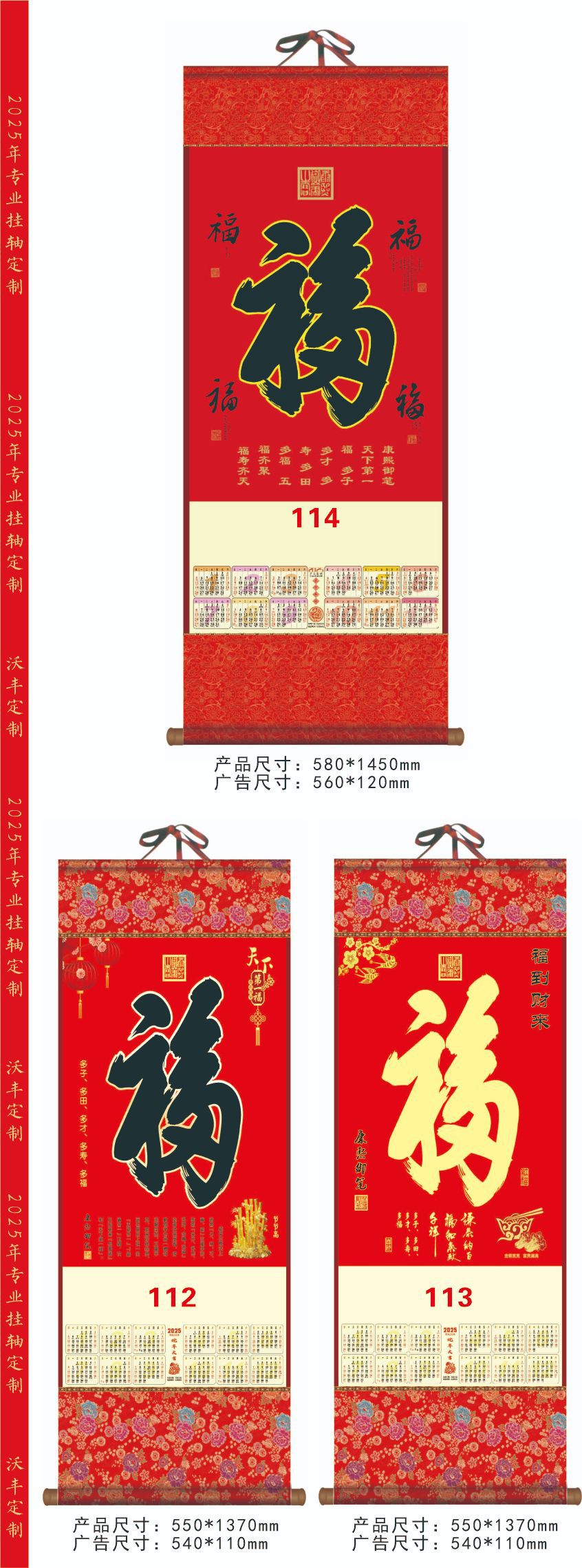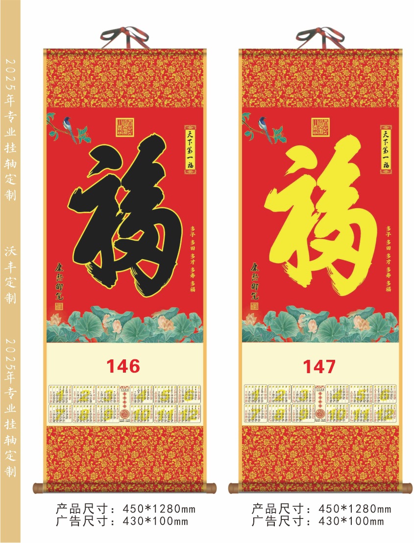 蛇年大号无纺布挂轴 2025年单张福字保险卷轴挂历企业专版广告