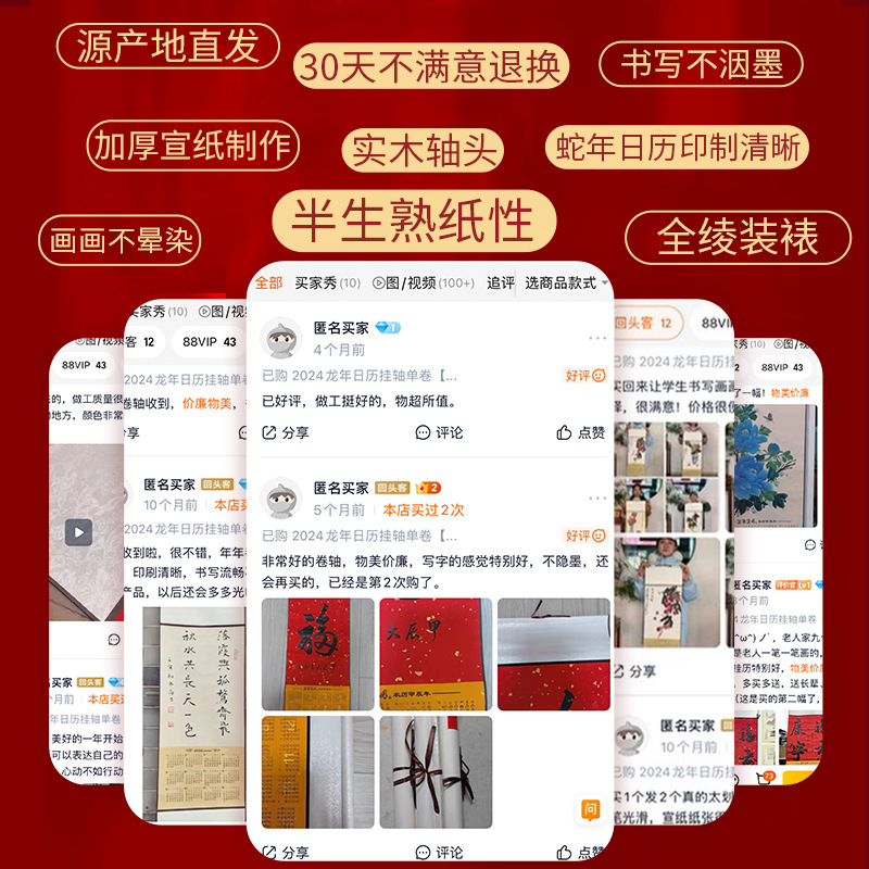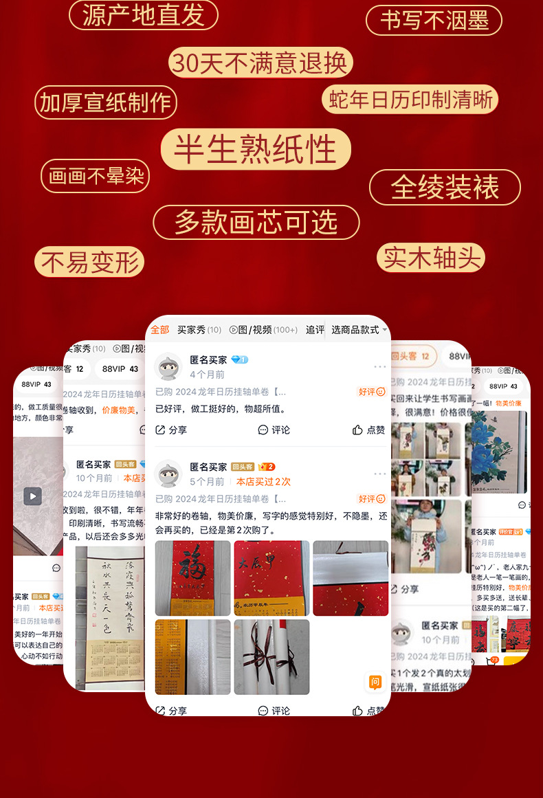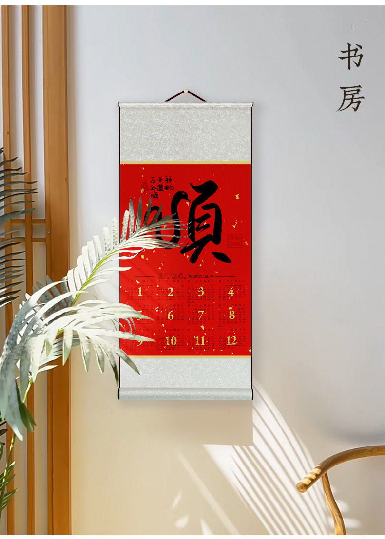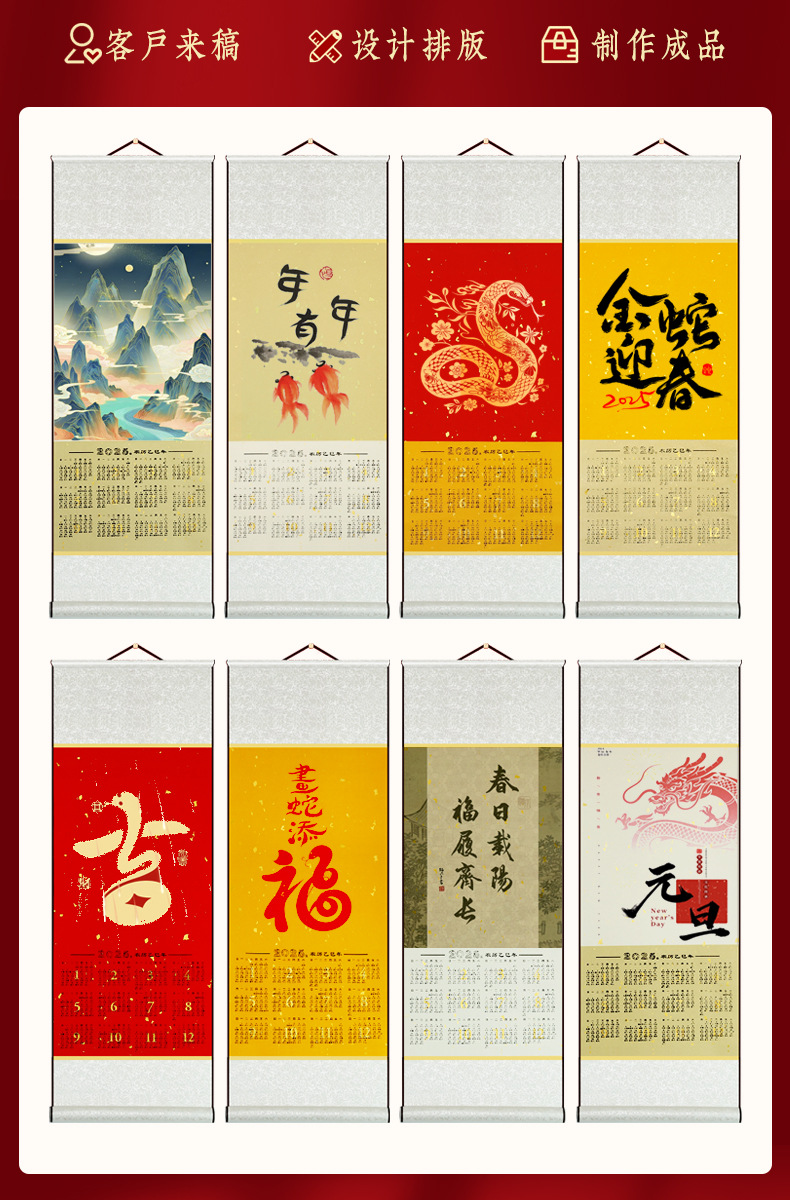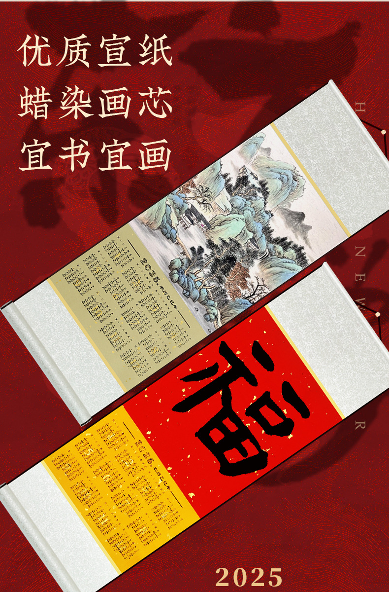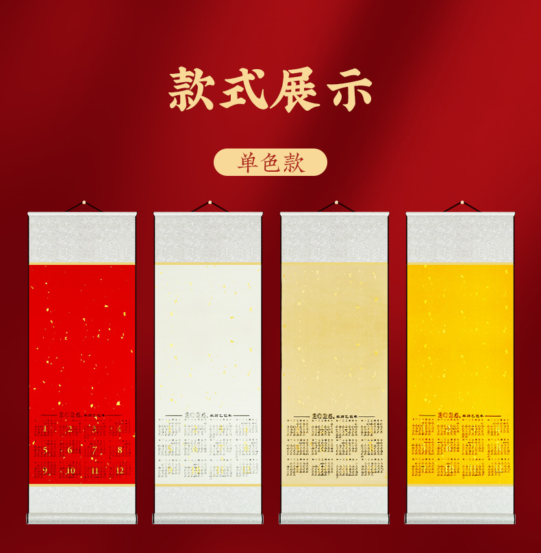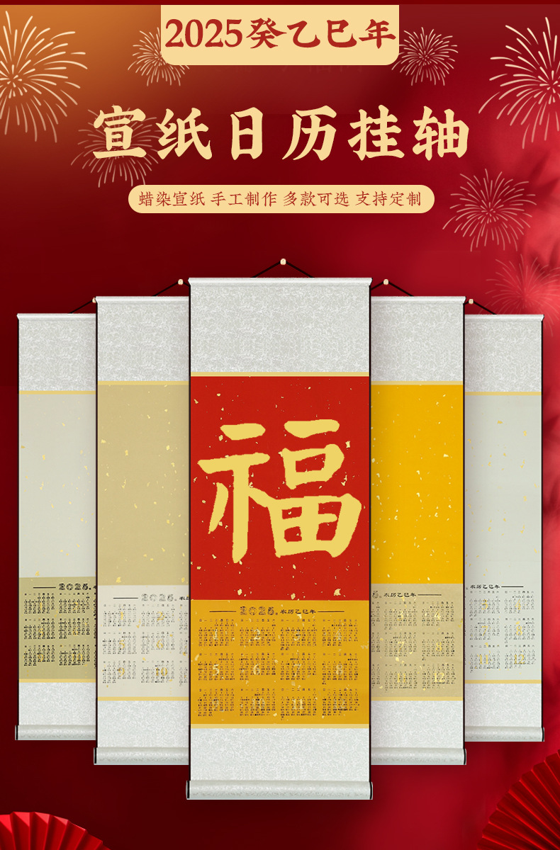 2025年日历宣纸挂轴空白卷轴挂历万年红广告挂历印制批发春节礼品