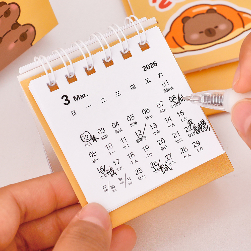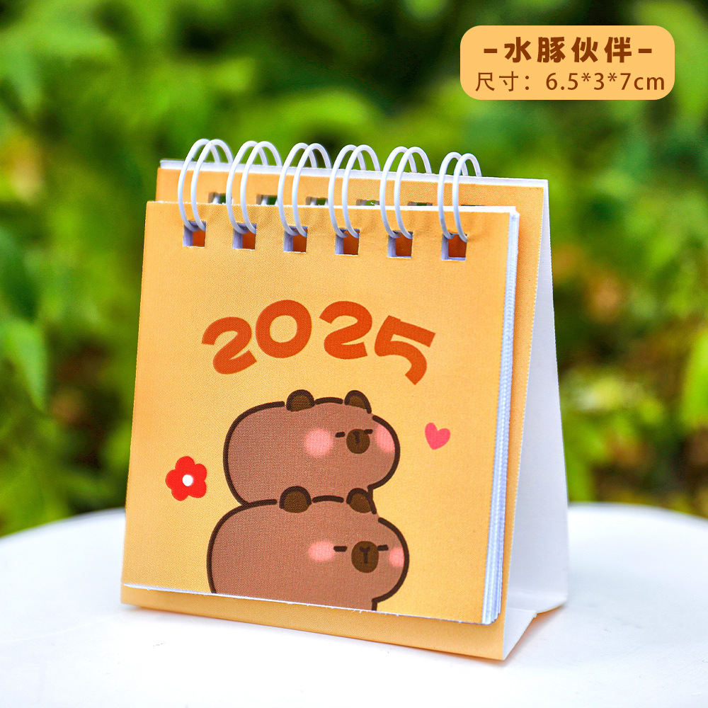 2024年卡皮巴拉日历学生迷你桌面小摆件打卡卡通台历2025小台历