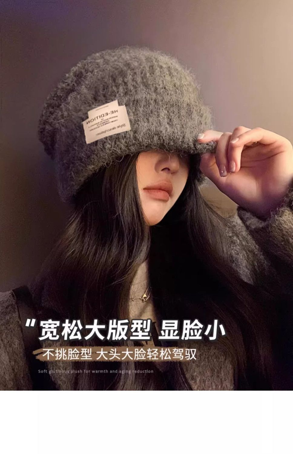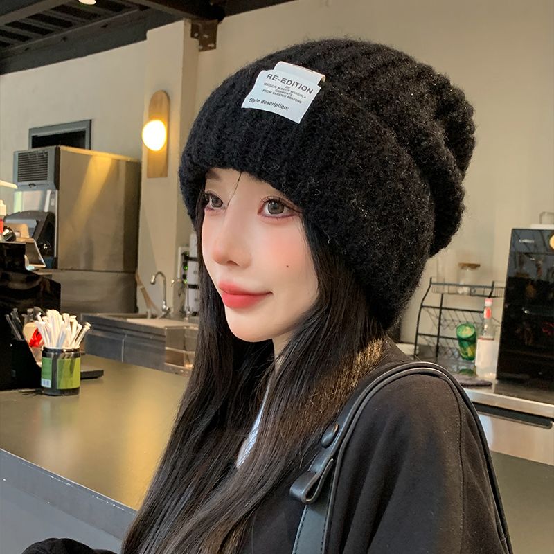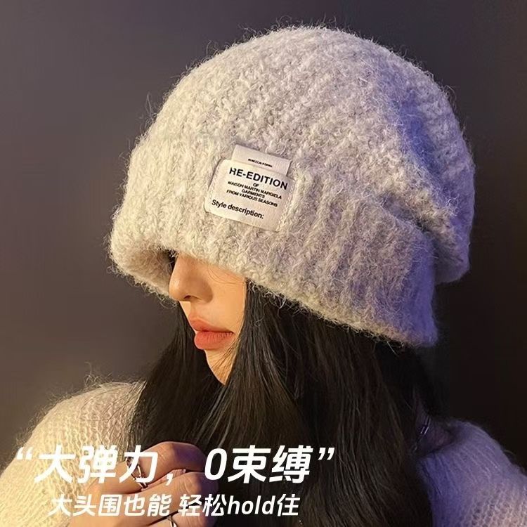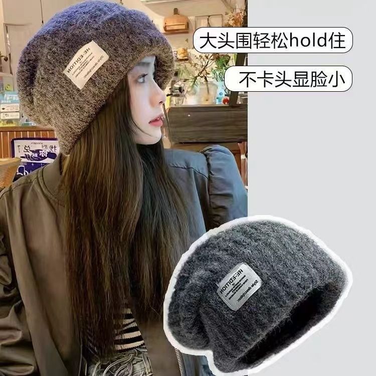 大头围针织帽子女冬季2024新款百搭显脸小保暖宽松护耳包头毛线帽