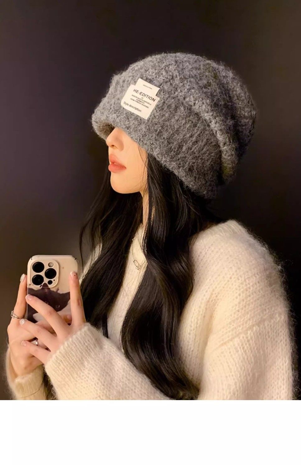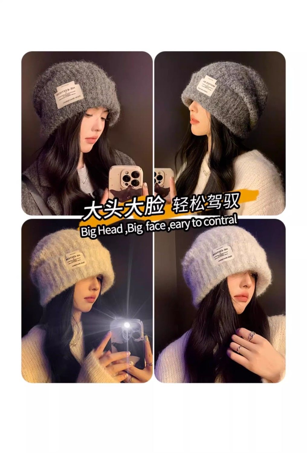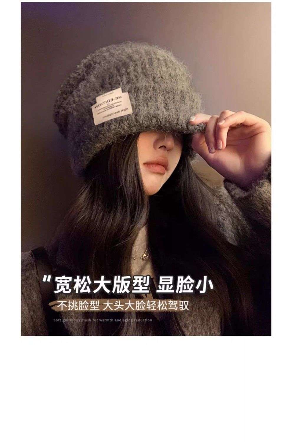 大头围针织帽子女冬季2024新款百搭显脸小保暖宽松护耳包头毛线帽